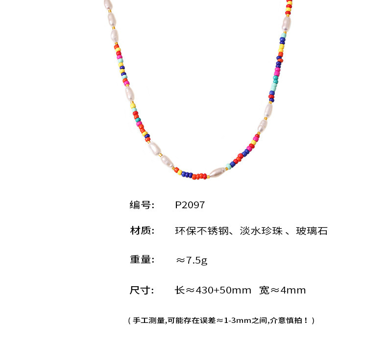 B廠【P2097】手工編織波希米亞風玻璃石淡水珍珠多彩串珠民族風氣質項鍊 24.11-2