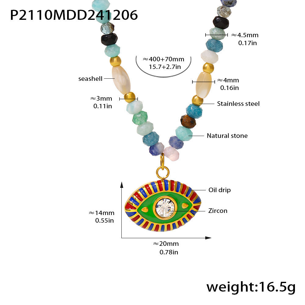 B廠【P2110】尼泊爾創意惡魔之眼天然石串珠項鍊民族風個性不鏽鋼首飾女 24.12-2