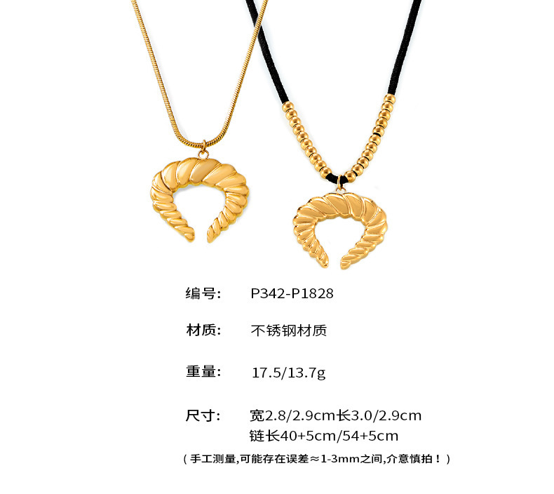 B廠【P342】歐美復古牛角螺紋吊墜鎖骨鍊時尚個性設計鍍18k金不褪色項鍊 24.07-4