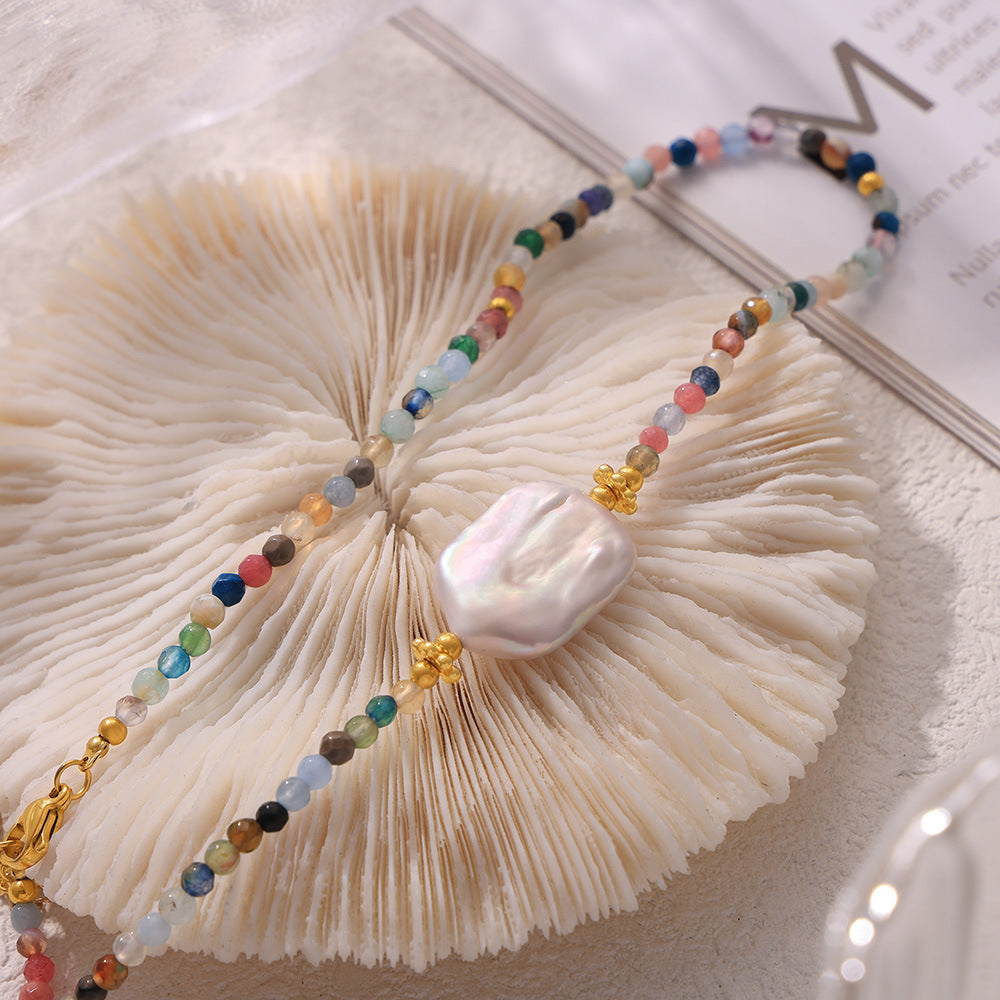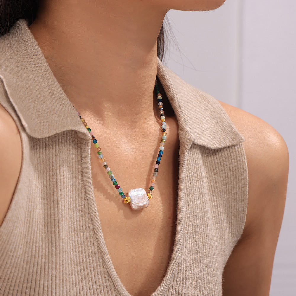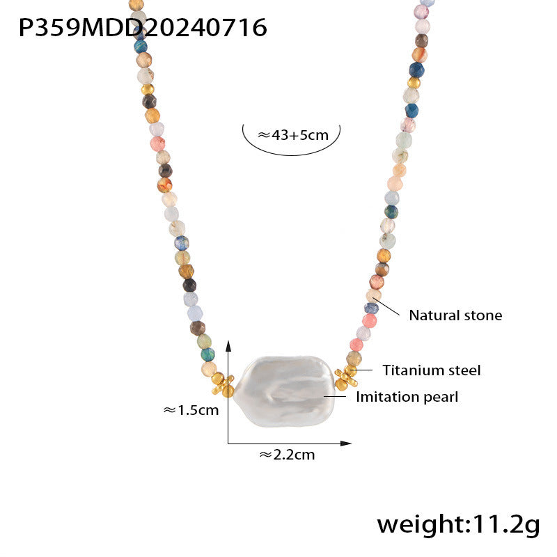 B廠【P359】巴洛克新款切面天然石仿珍珠項鍊女多彩個性串珠鈦鋼鍍18k金項鍊 24.07-4