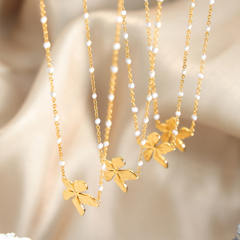 B廠【P402】歐美花形個性滴油花朵花卉不掉色項鍊女生閨蜜飾品鈦鋼 23-07.10