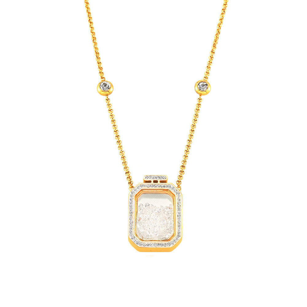 B廠【P444】跨境新款方框鑲水鑽吊墜不銹鋼鎖骨鏈甜美百搭設計輕奢感項鍊 24.08-2