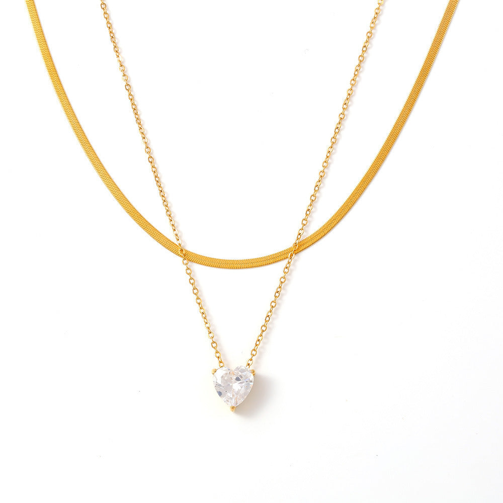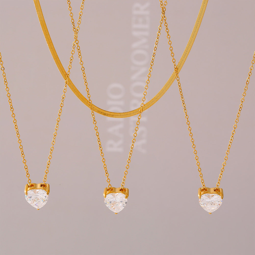 B廠【P527】跨境新款小眾愛心鋯石吊墜疊戴鎖骨鍊女簡約氣質ins風鈦鋼18k鍍金 24.08-3