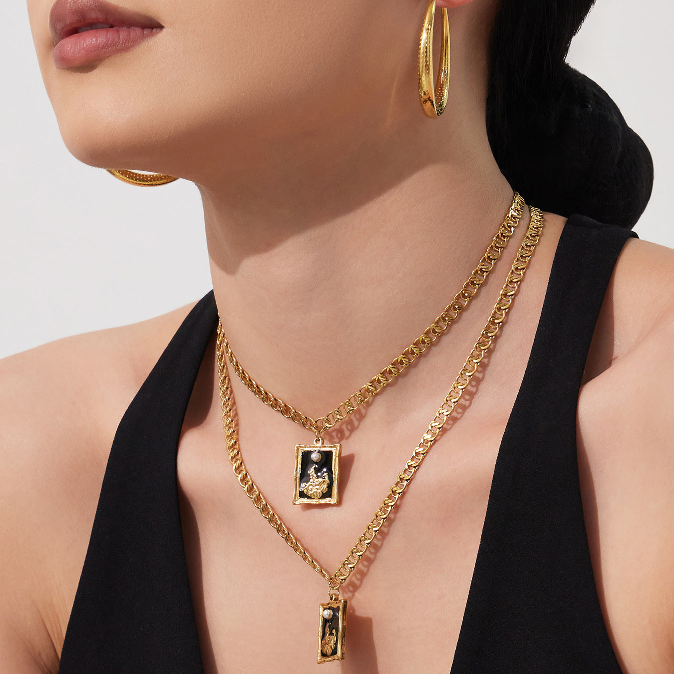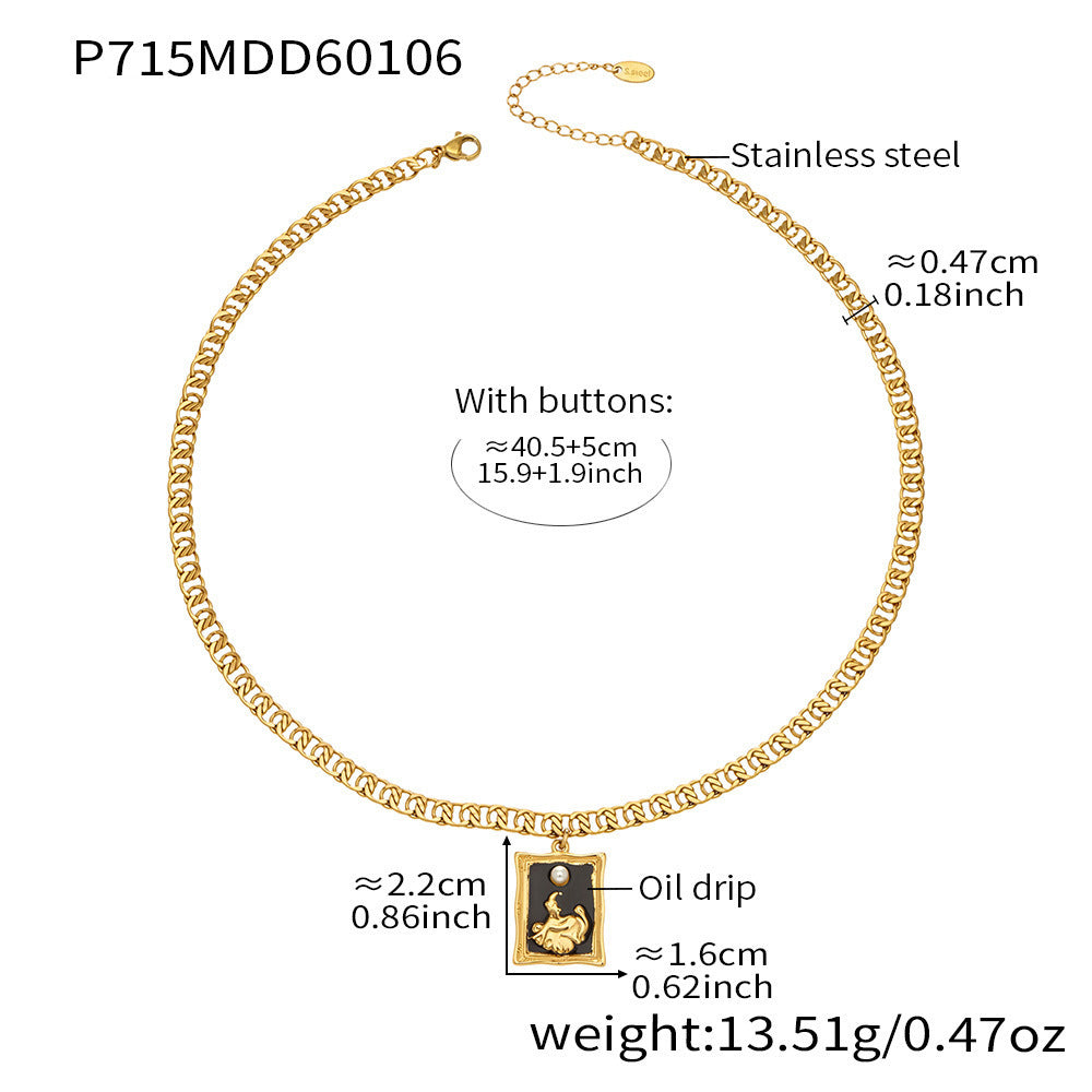 B廠【P715】欧美跨境小众ins方牌滴油吊坠双层叠戴项链不锈钢镀18k真金不掉色 26.01-2