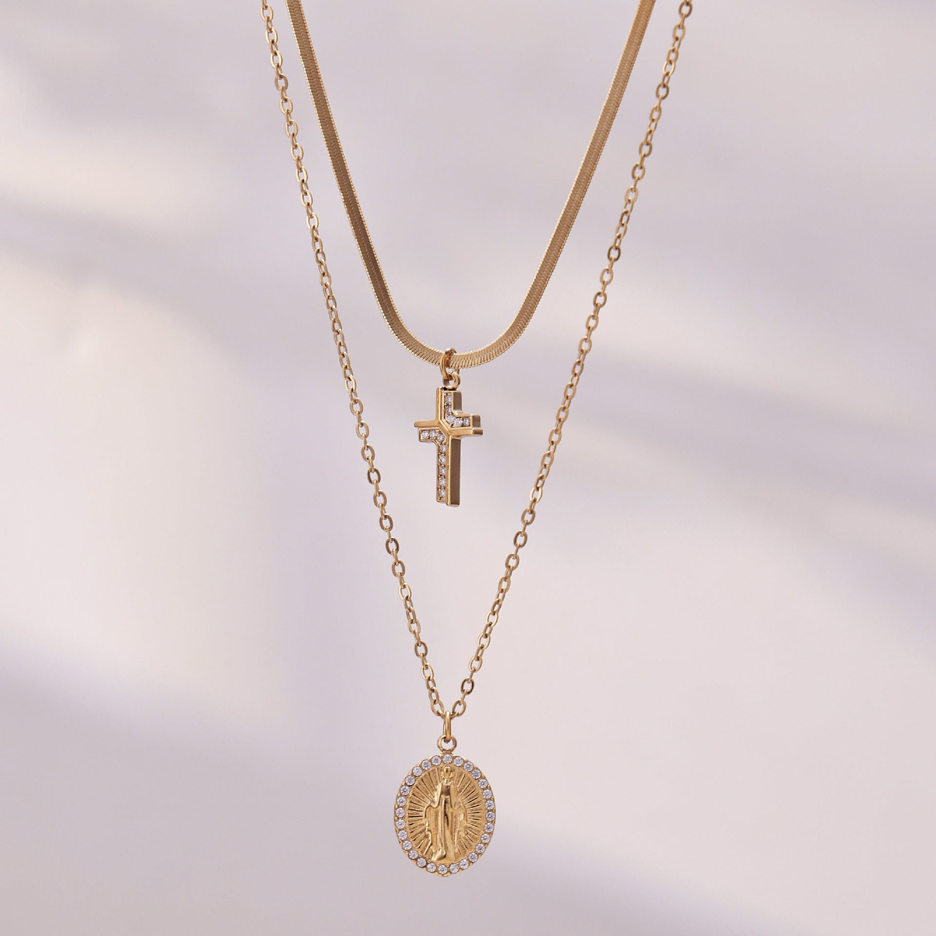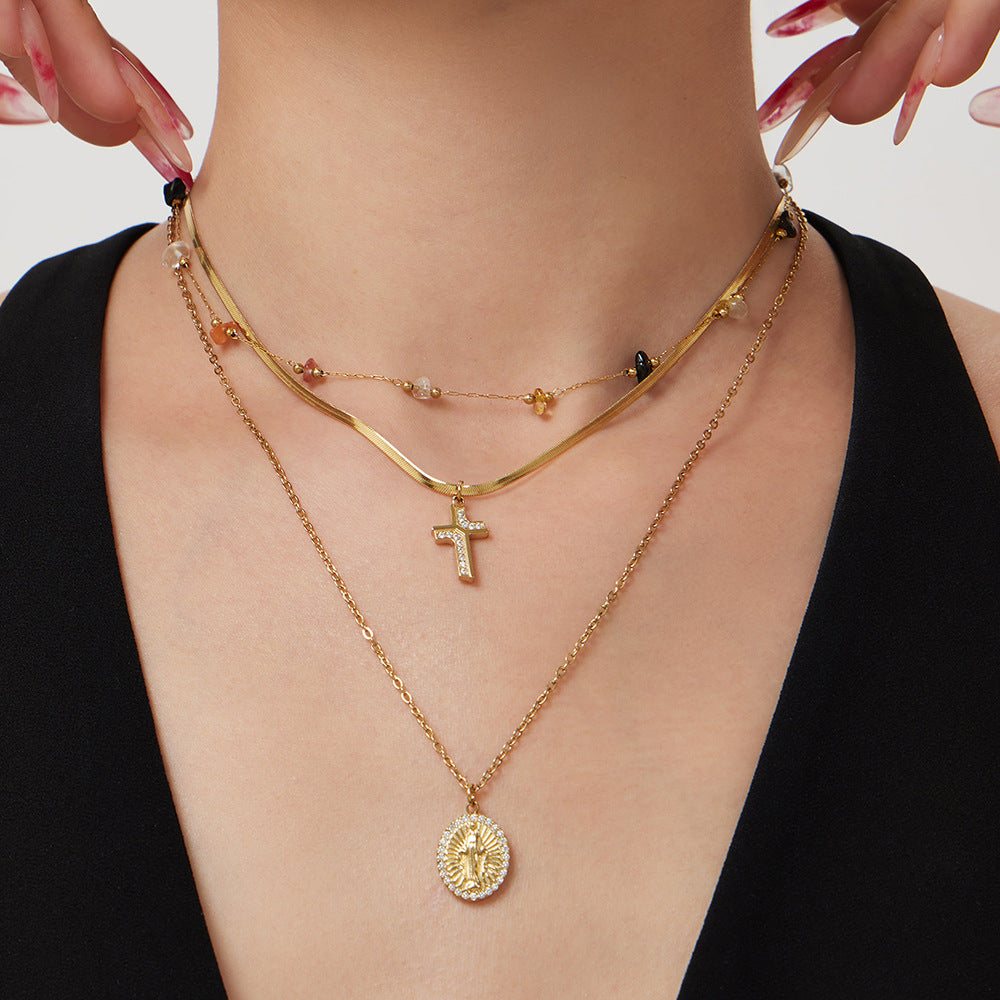 B廠【P716】波希米亞十字架鑲嵌鋯石雙層疊戴項鍊跨境時尚輕奢刀片鏈百搭項鍊 26.01-2