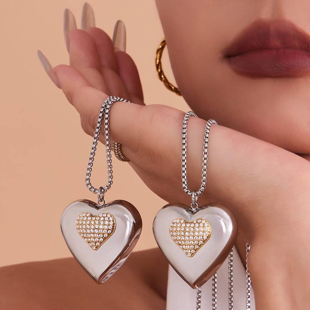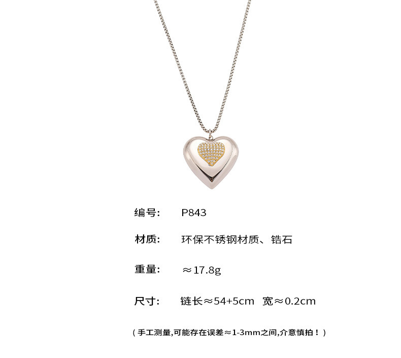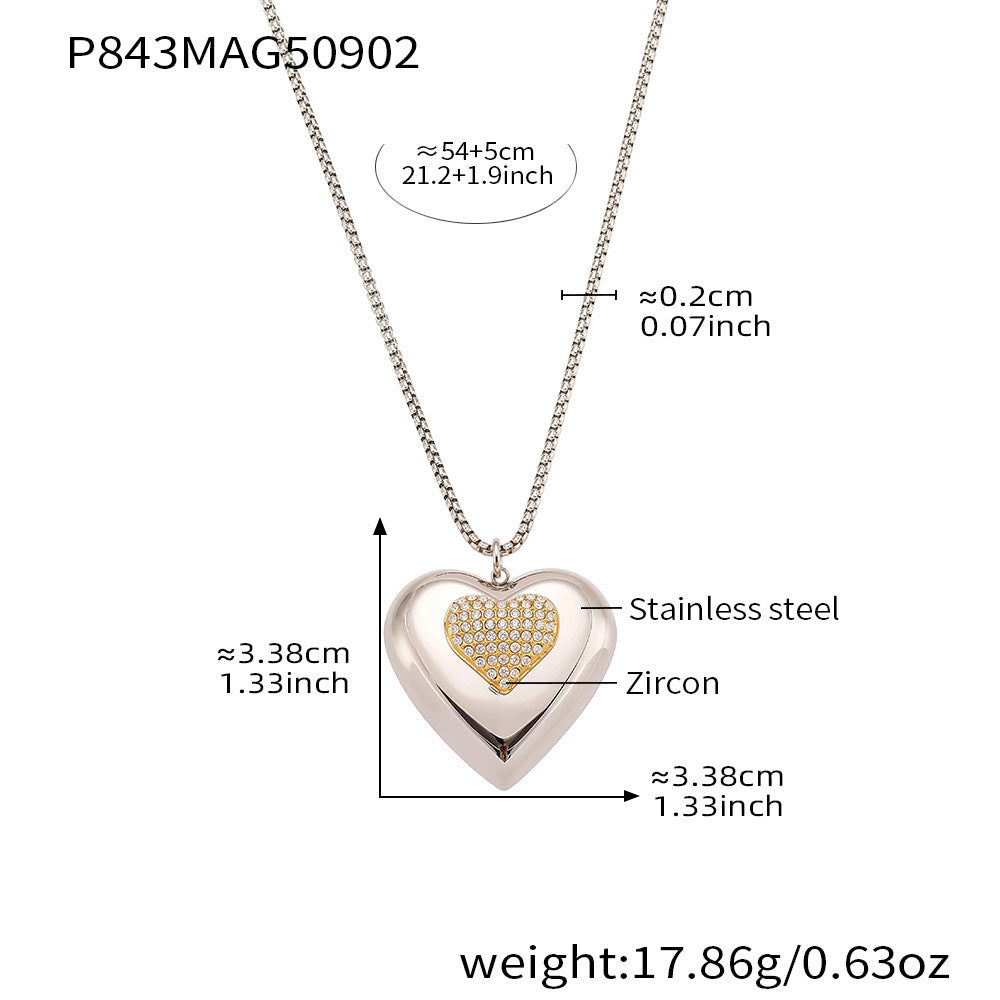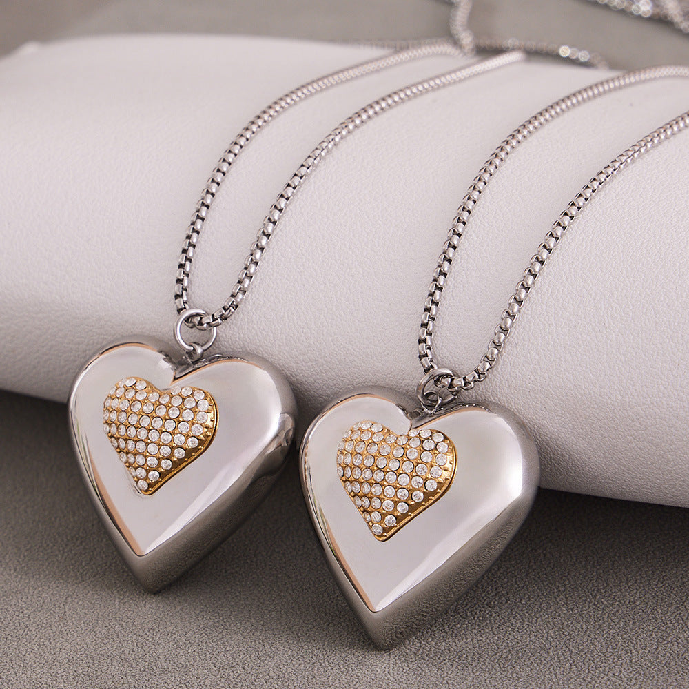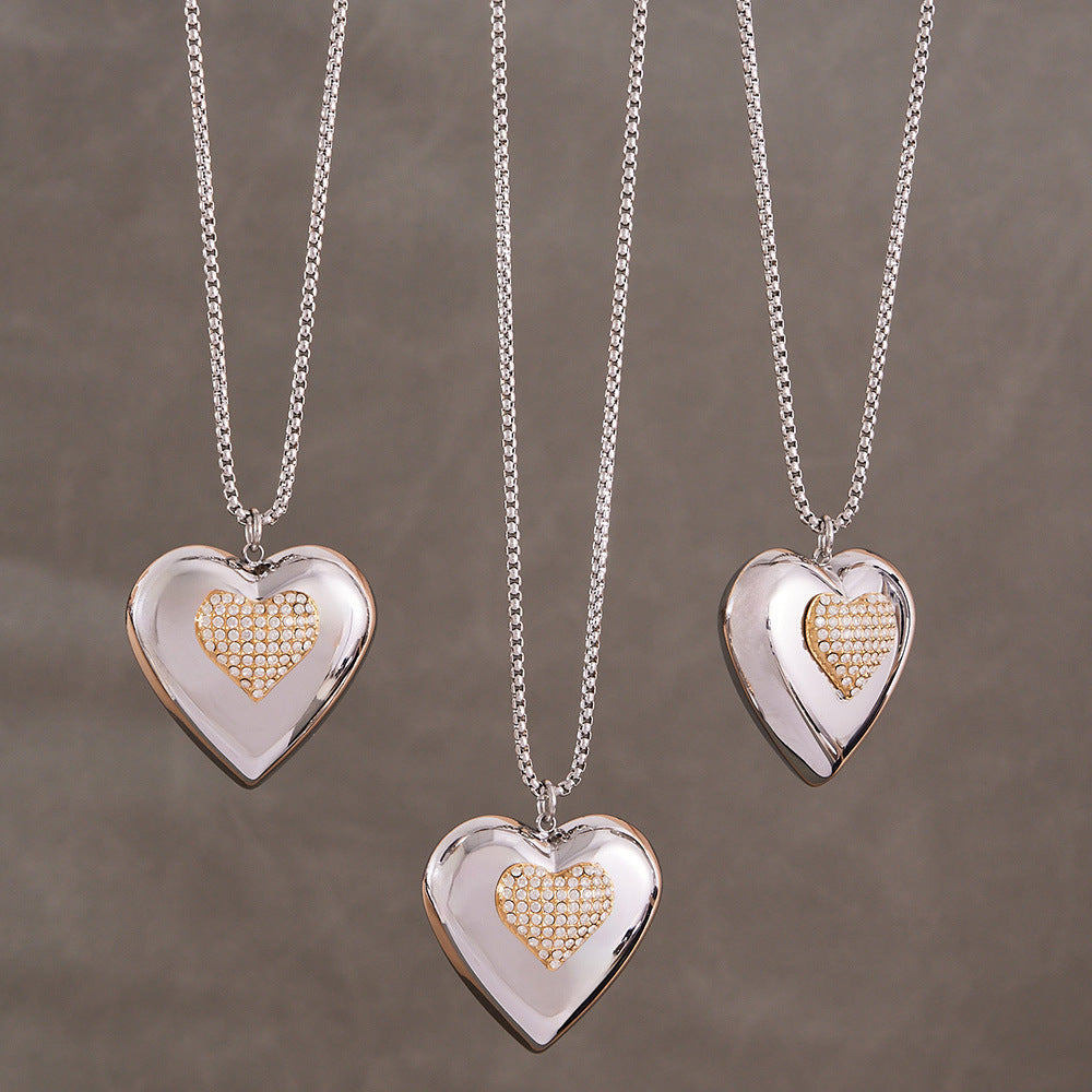 B廠【P843】歐美超閃鋯石滿鑽雙色愛心吊墜鎖骨項鍊不鏽鋼跨境女網紅百搭潮款 26.04-3