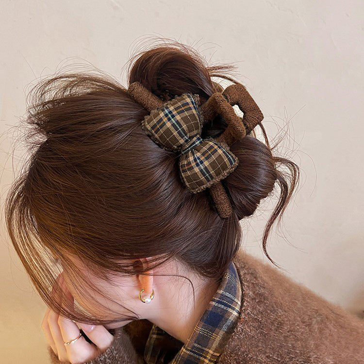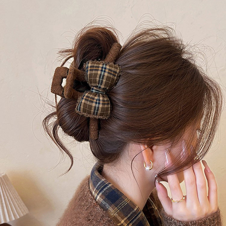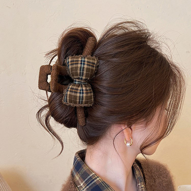 C廠【P91】摩卡暖調~頭髮抓夾女格紋蝴蝶結髮夾2025新款大號盤髮鯊魚夾髮飾 26.01-1