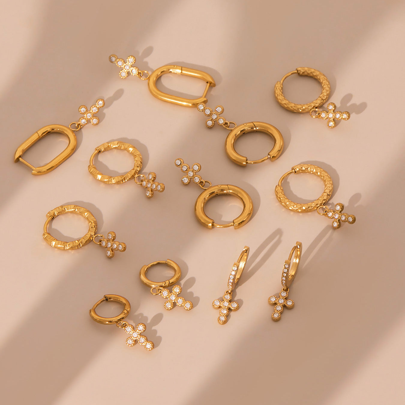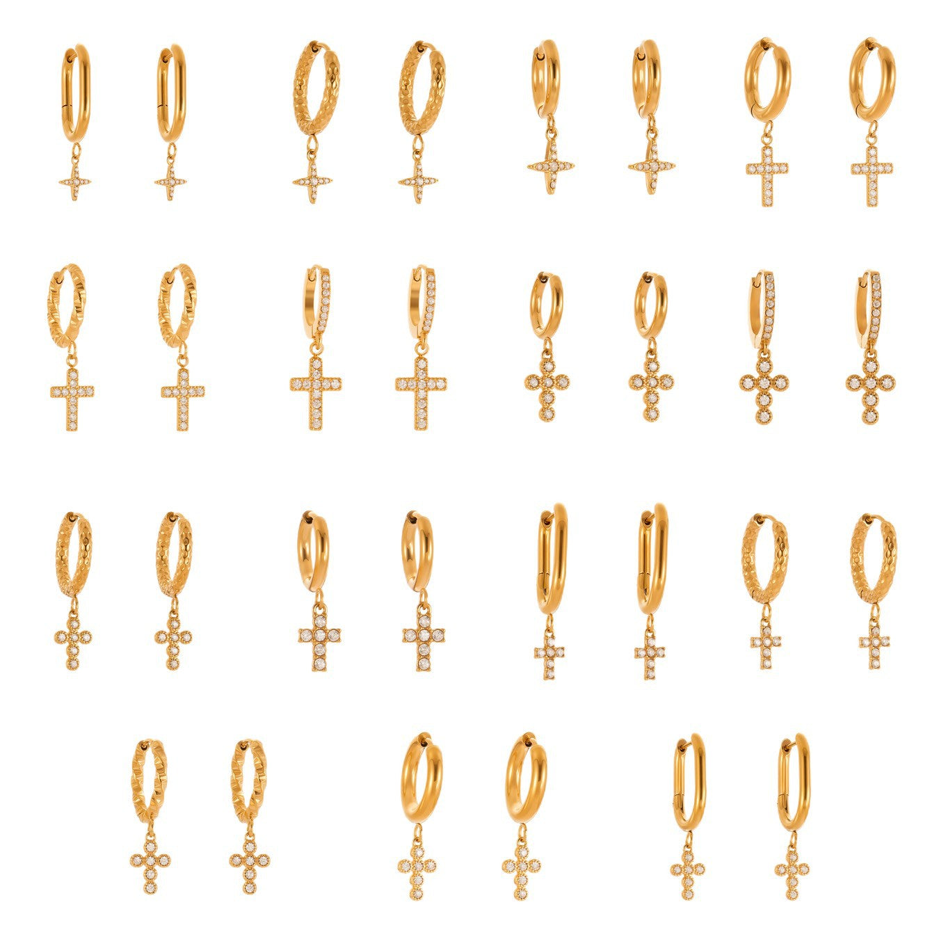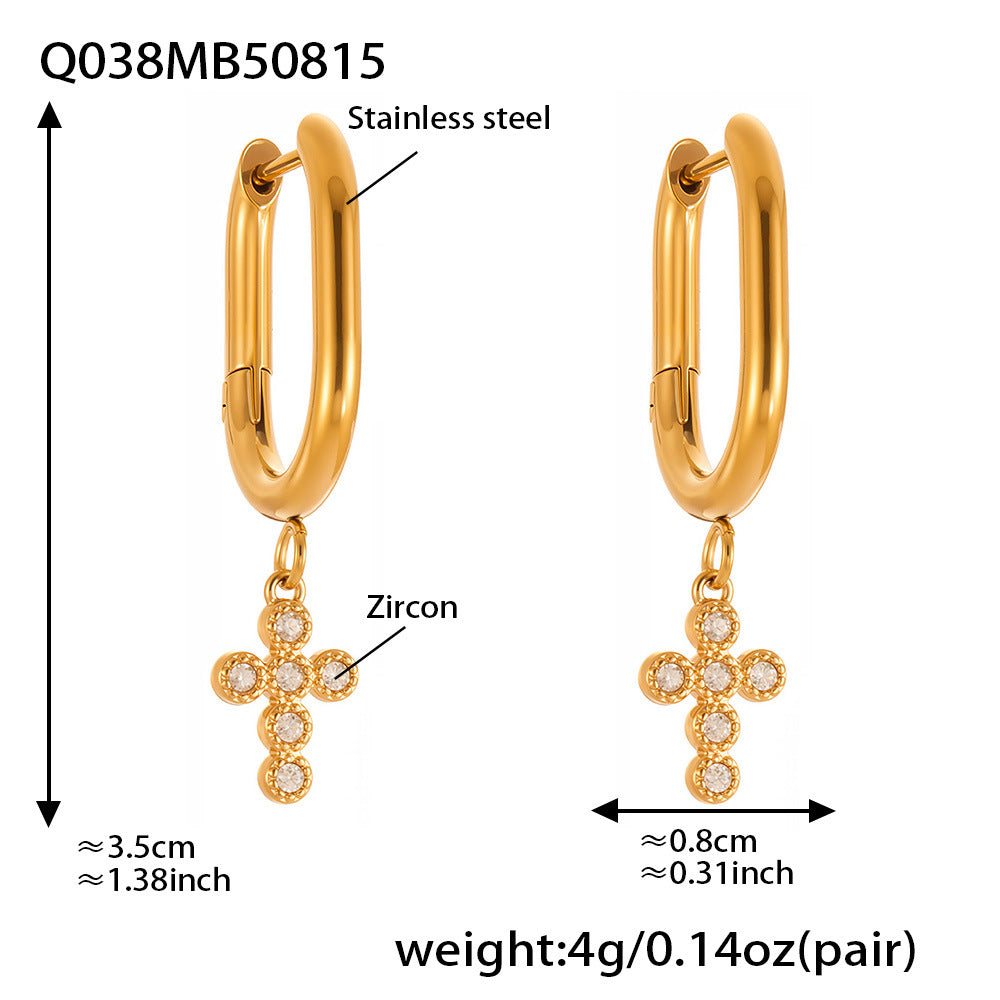 B廠【Q015】不鏽鋼超閃5A鋯石十字架耳環跨國簡約輕奢風耳環鍍18k真金 25.08-5