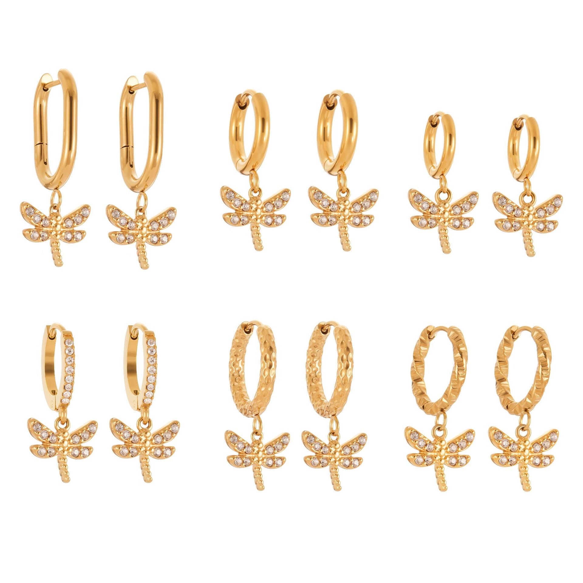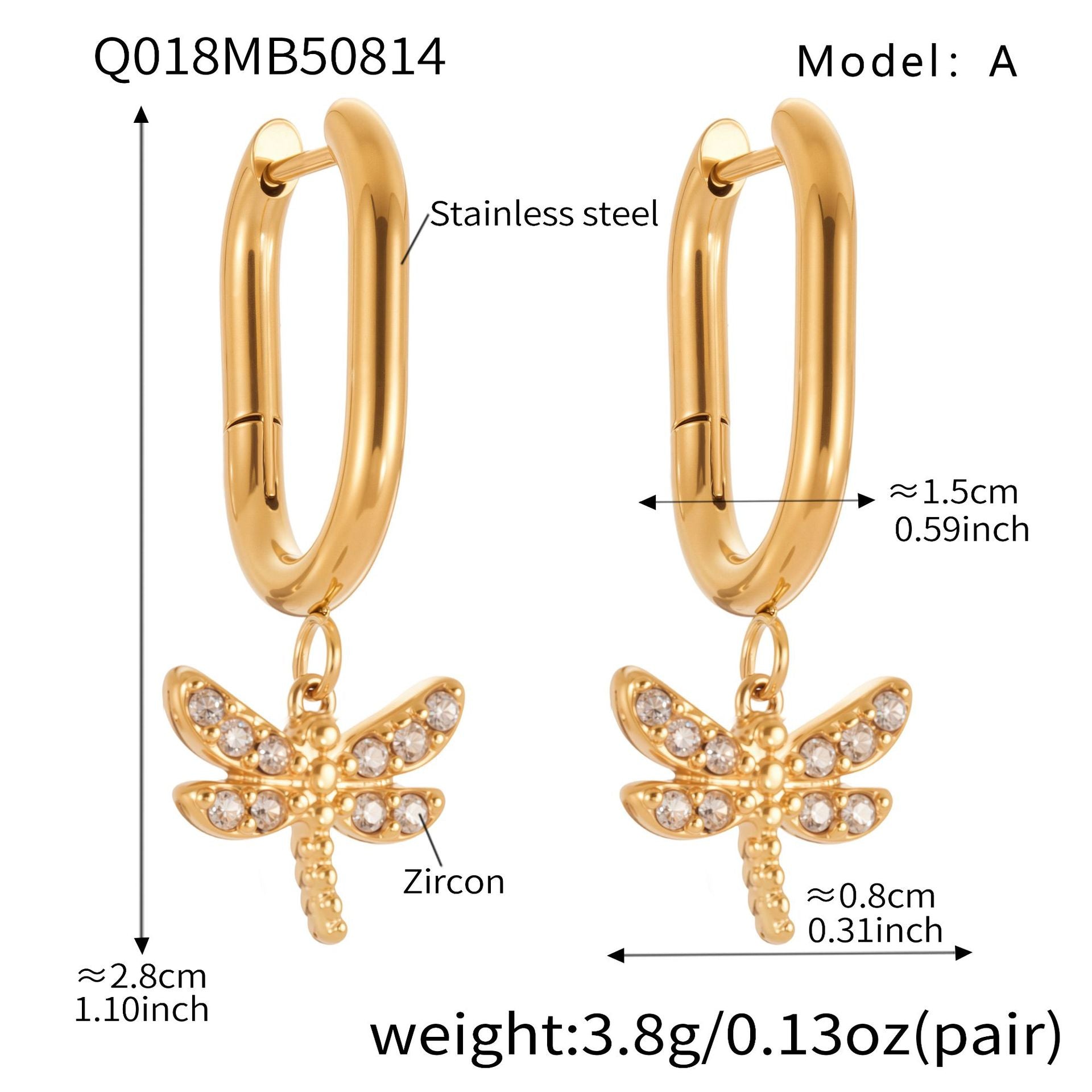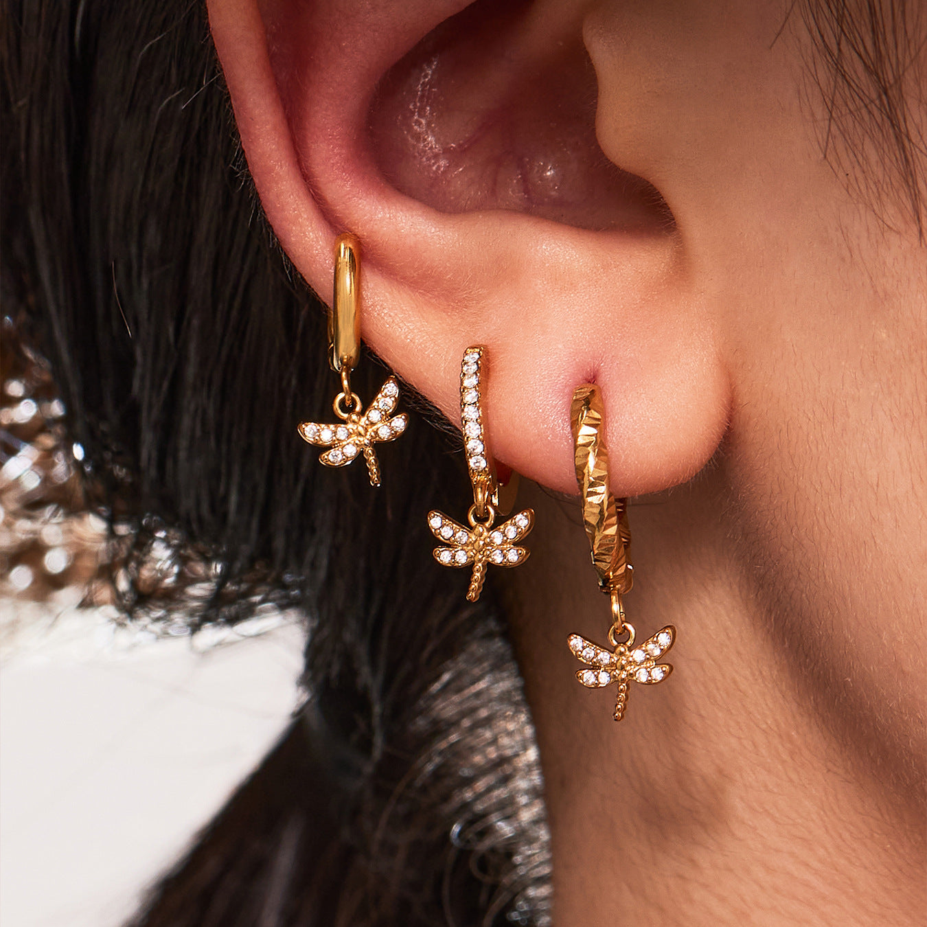 B廠【Q018】歐美輕奢風微鑲鋯石蜻蜓帶鑽耳環小眾幾何耳骨夾耳環耳飾女 25.08-5