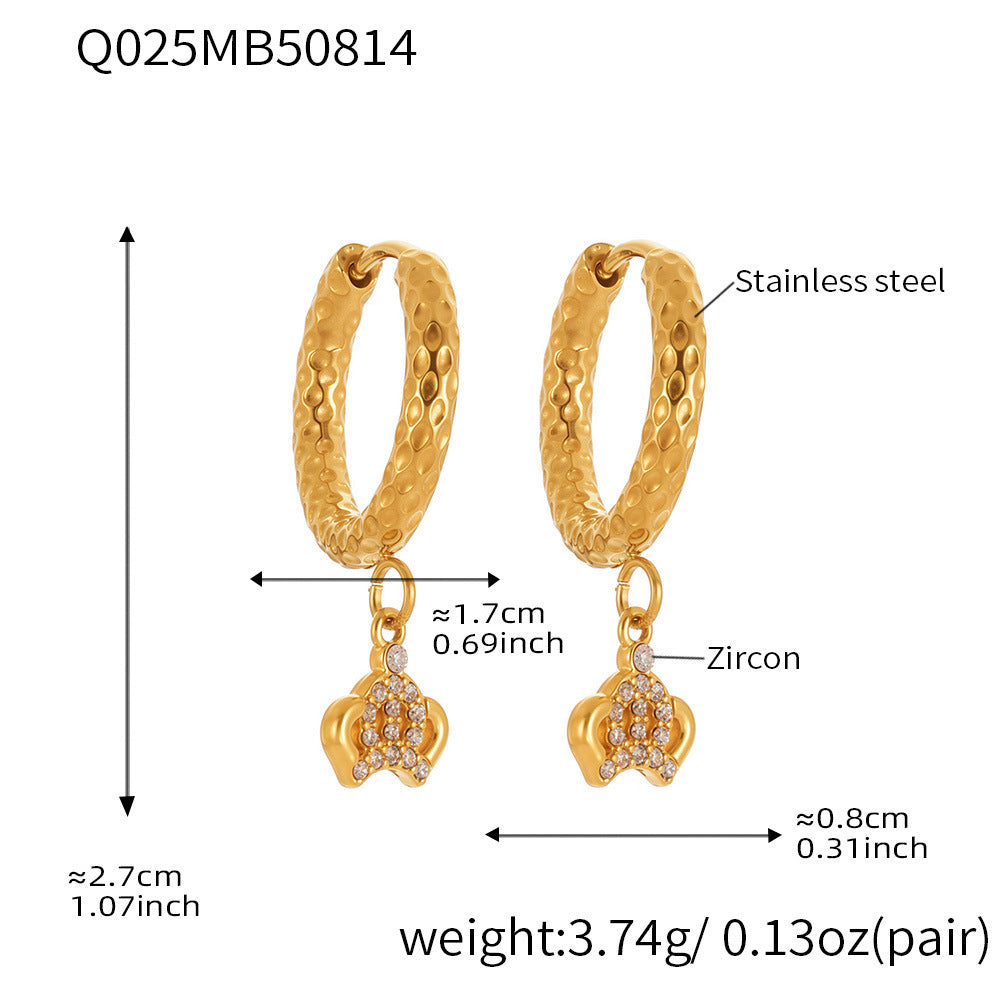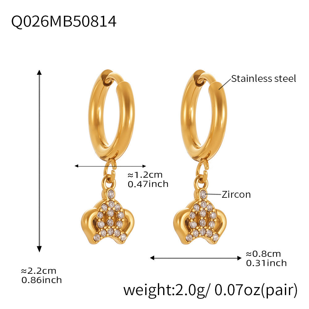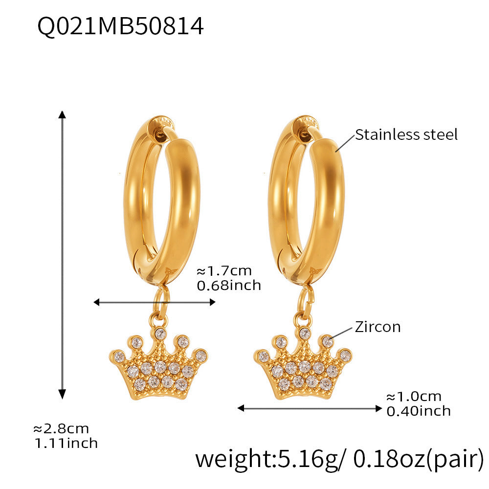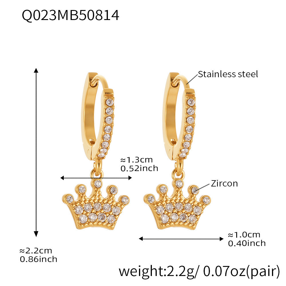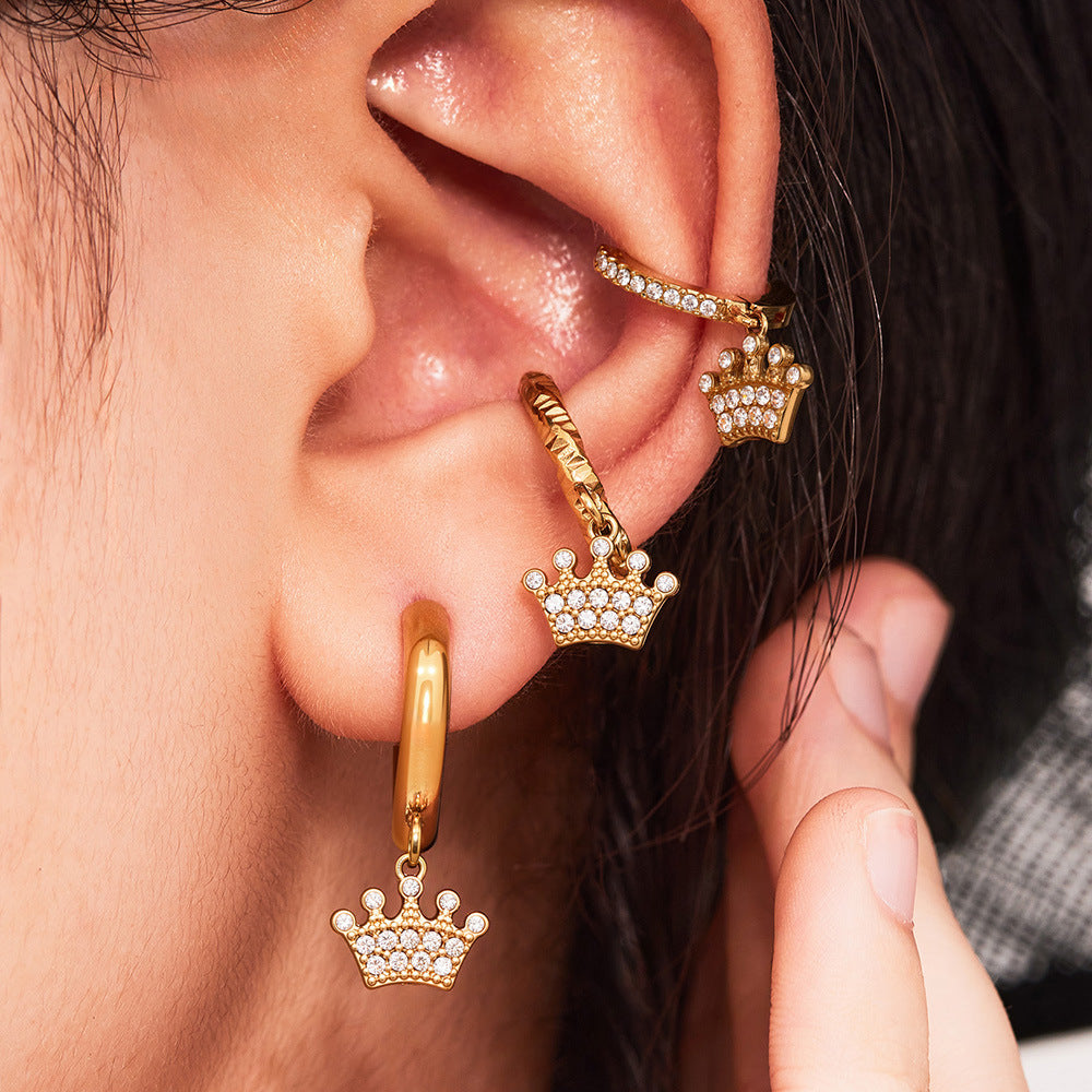 B廠【Q021】歐美飾品不鏽鋼U形皇冠鑲鋯石耳環鍍18k真金時尚耳環不掉色 25.08-5