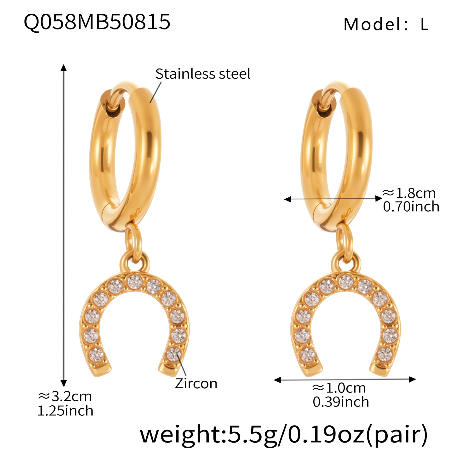 B廠【Q057】新品鑲鑽小馬蹄扣圓圈耳扣耳圈新潮氣質小巧通勤不銹鋼耳飾 25.08-5