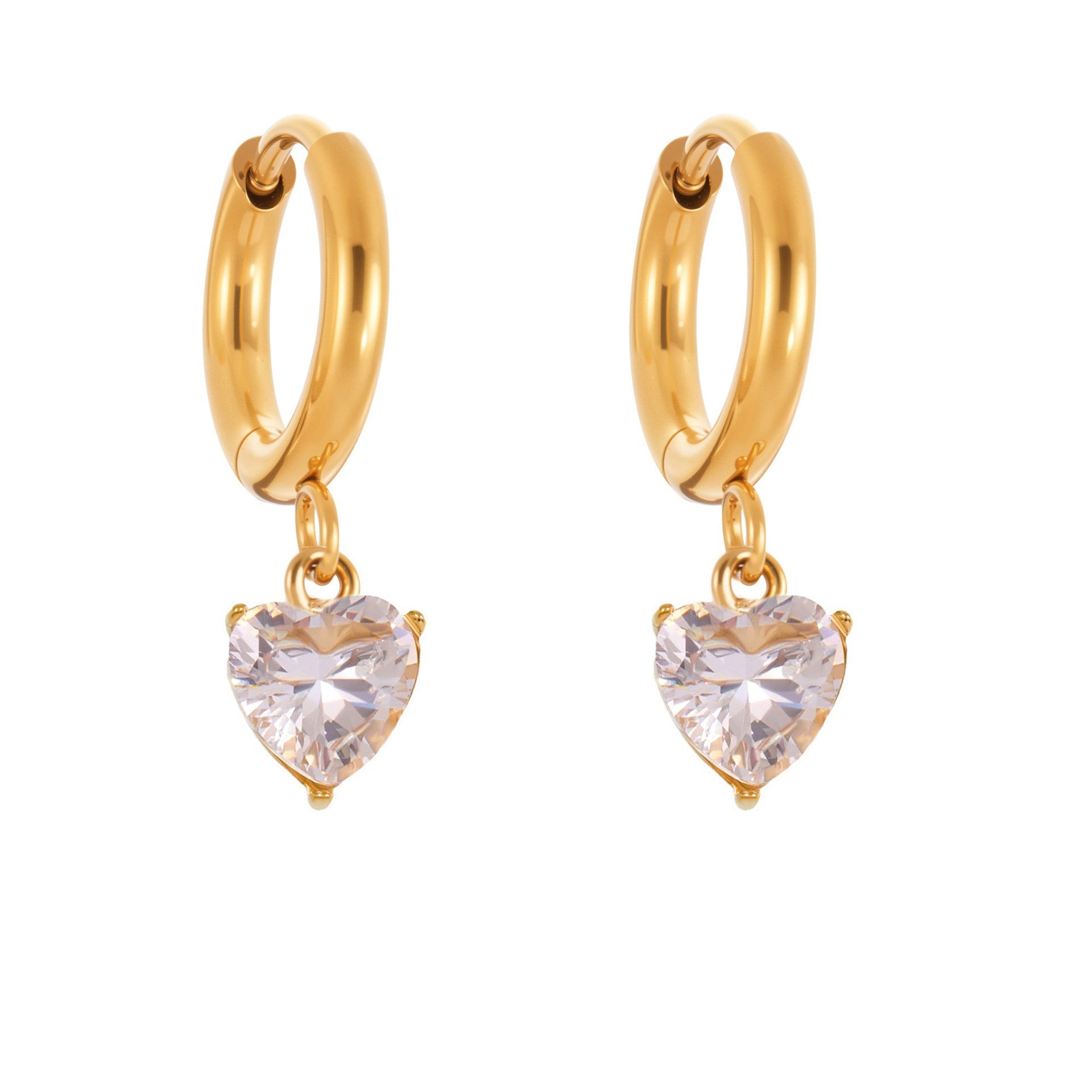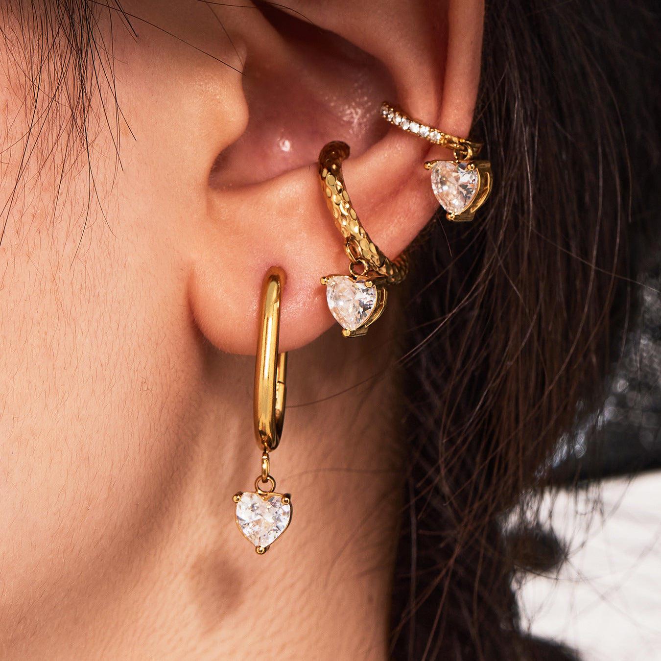 B廠【Q150】ins小眾設計感愛心鋯石吊墜耳環不鏽鋼鍍18k真金耳環不掉色 25.08-5