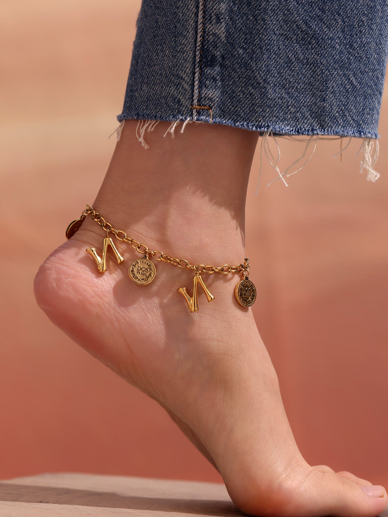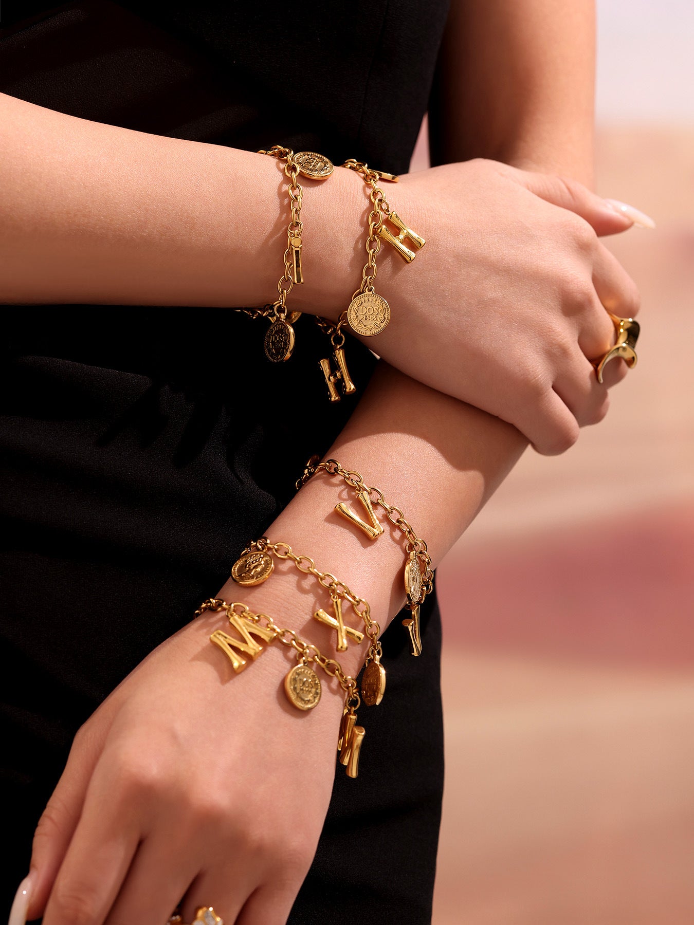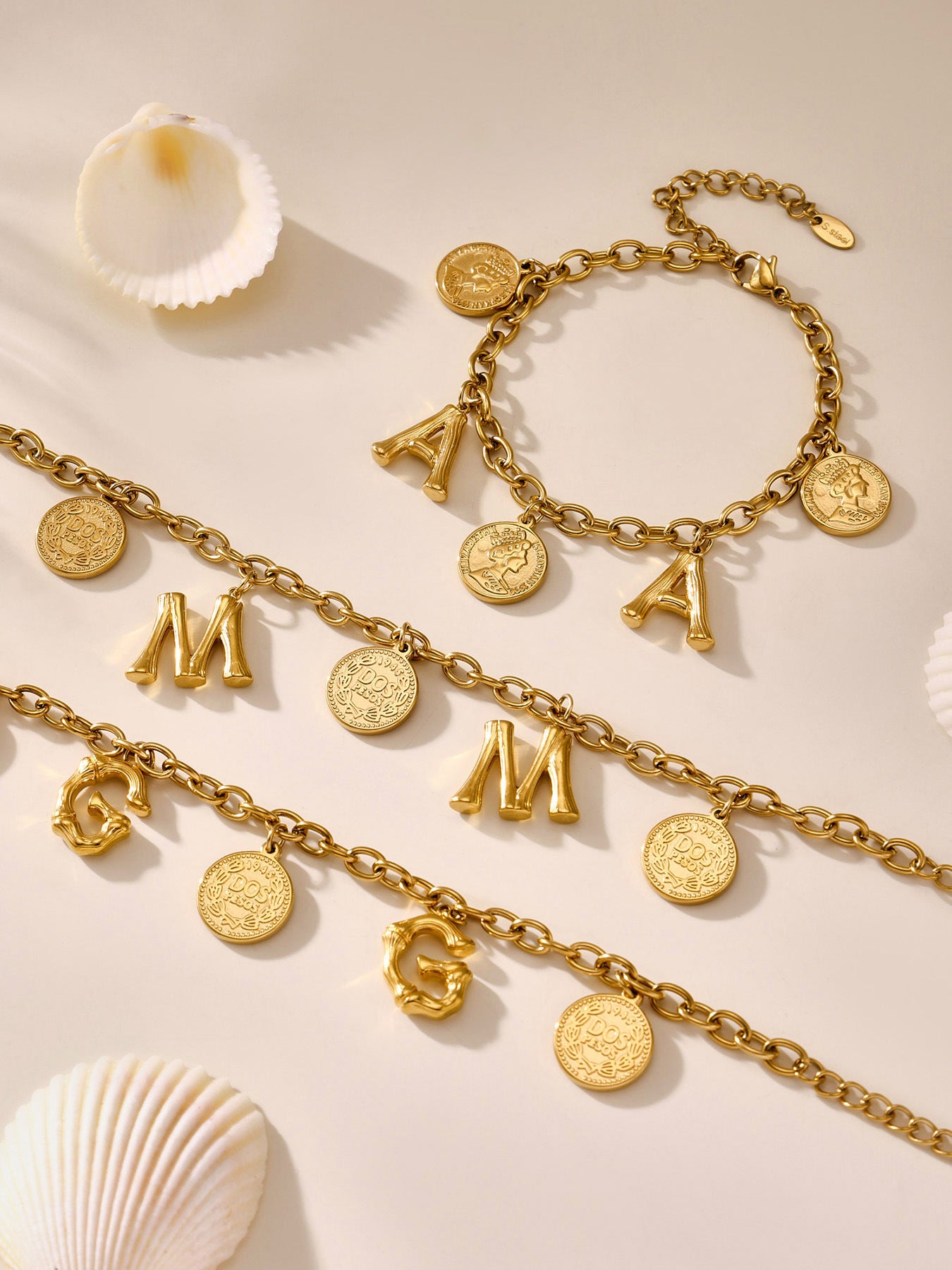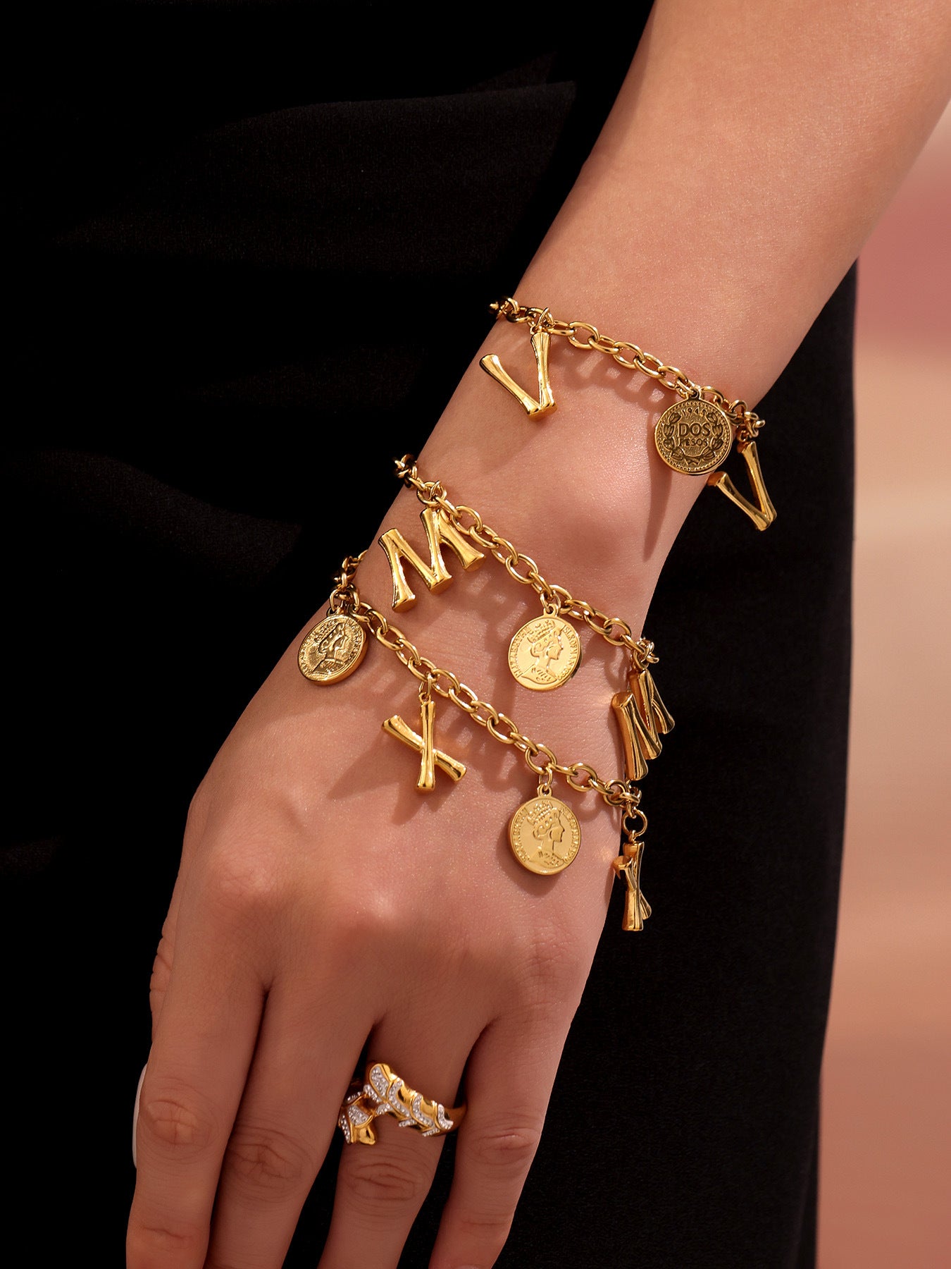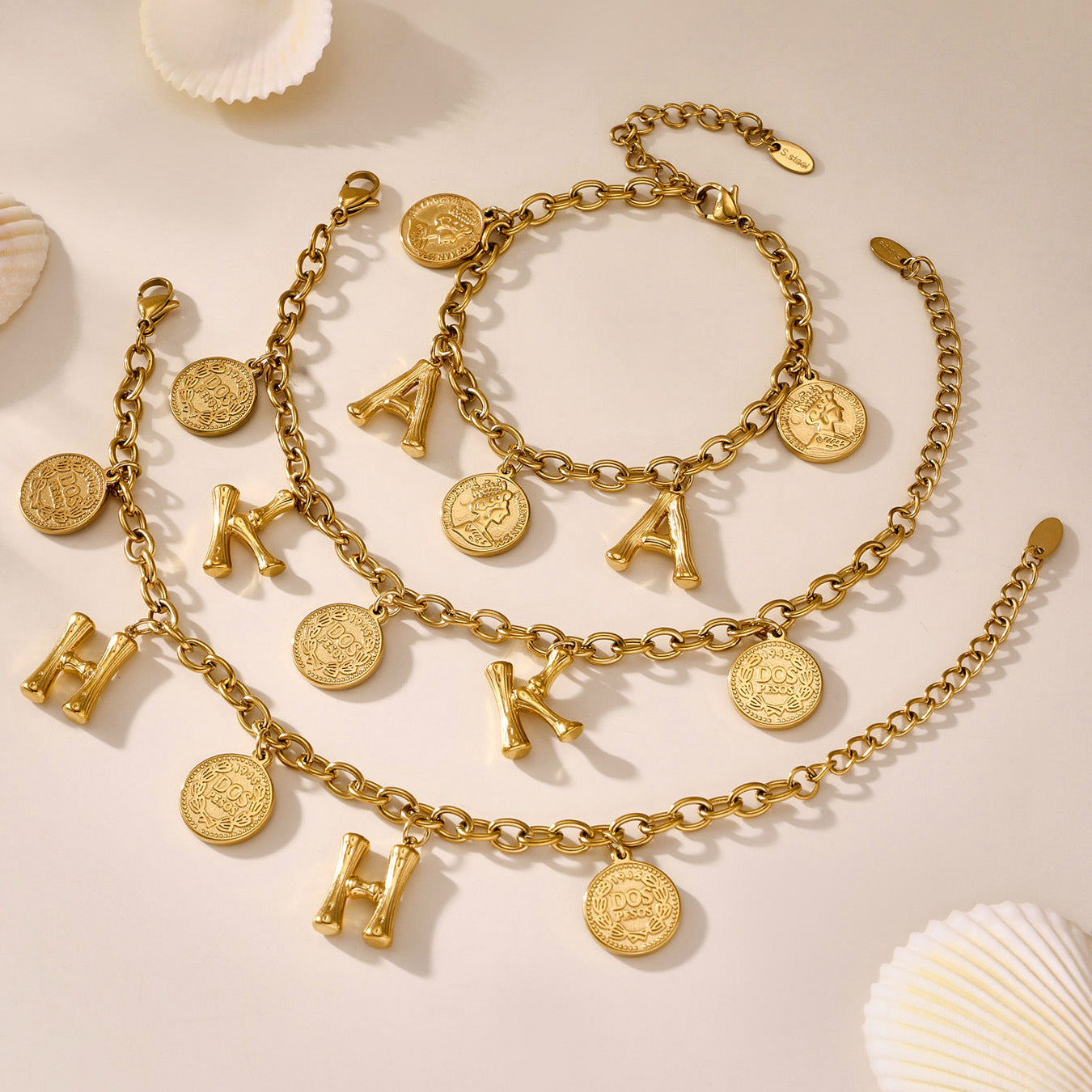 B廠【RE002】歐美飾品不鏽鋼26個字母伊莉莎白女王圖像手鍊鍍18k金色保色 25.07-3