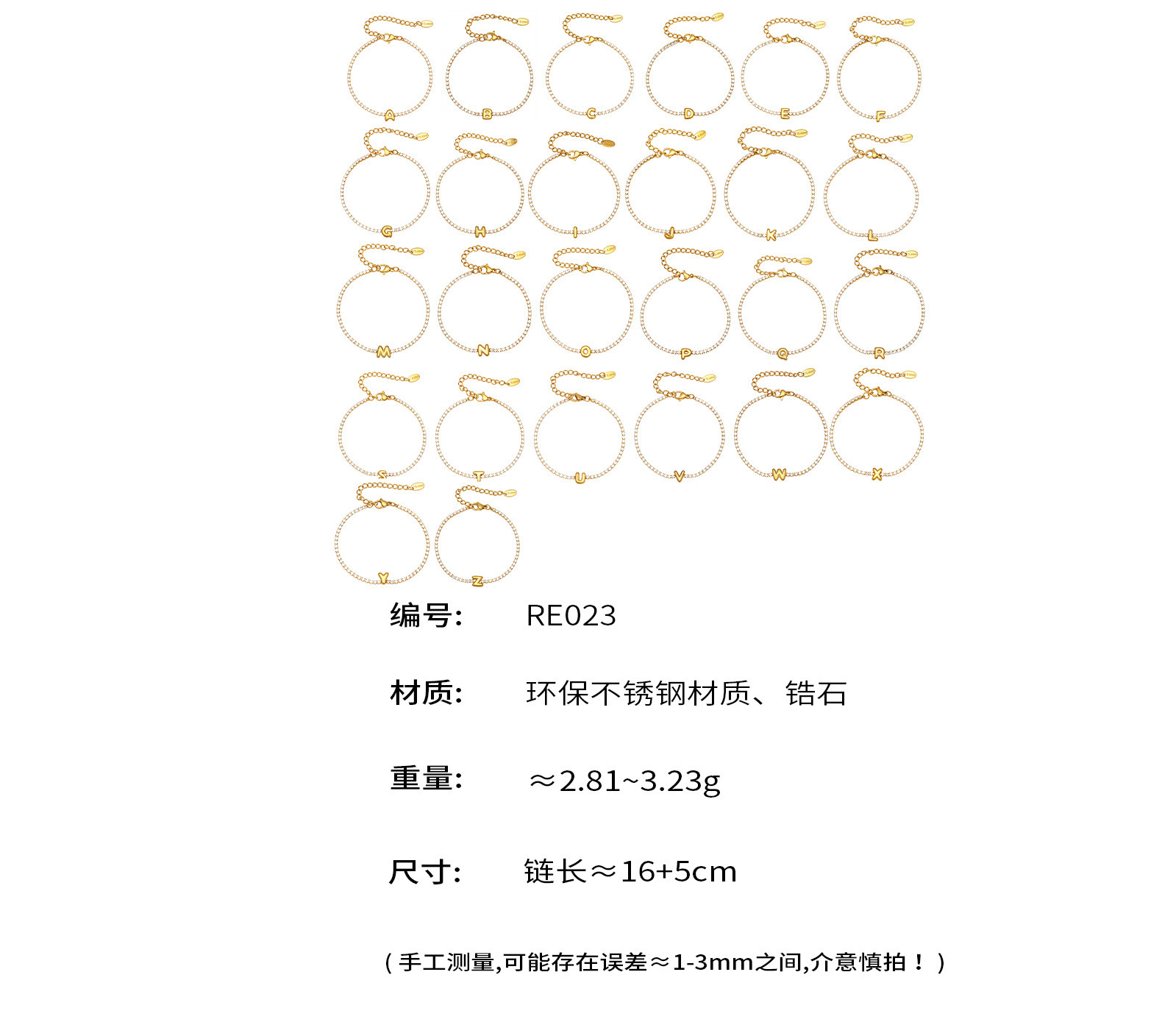B廠【RE023】爆閃爪鑲鋯石26字母手鍊 不鏽鋼鍍18k真金時尚精緻氣質珠寶首飾女 25.12-4