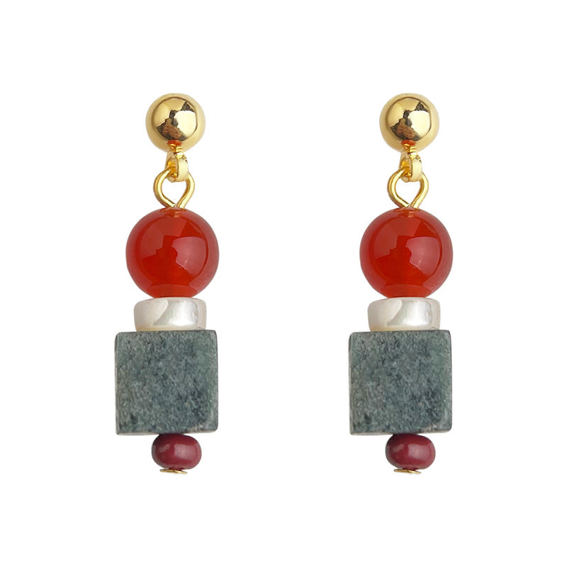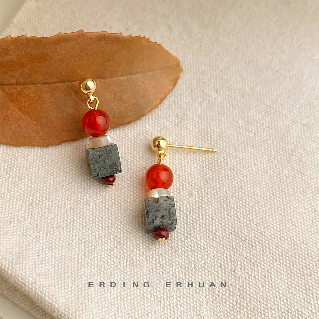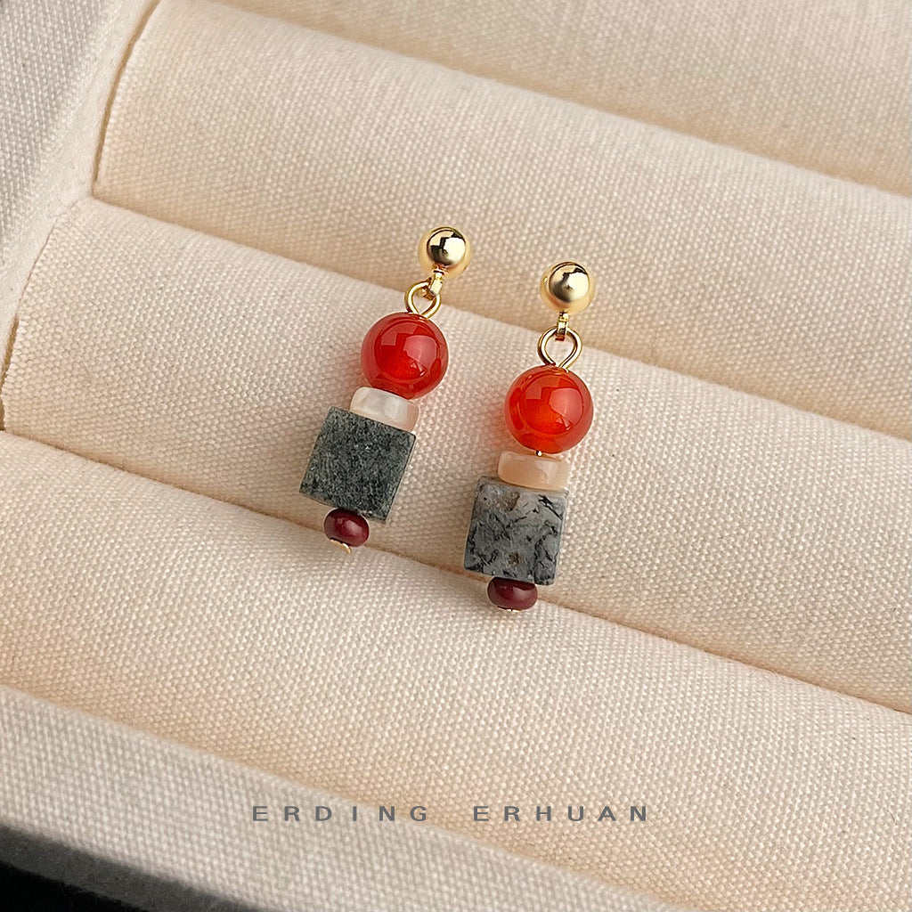 C廠【S175】個性國潮新中式天然石紅瑪瑙氣質簡約手工耳環耳環飾品女 24.12-4