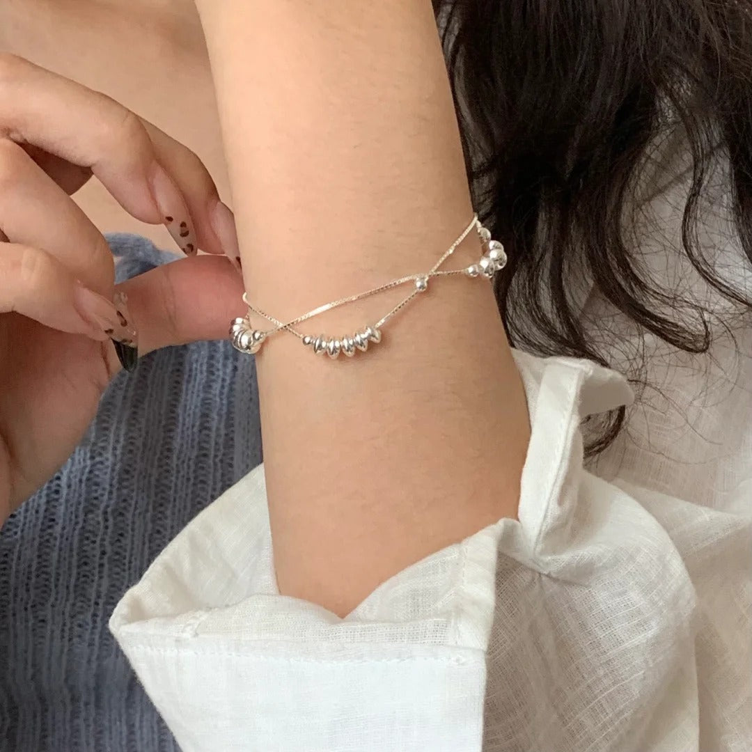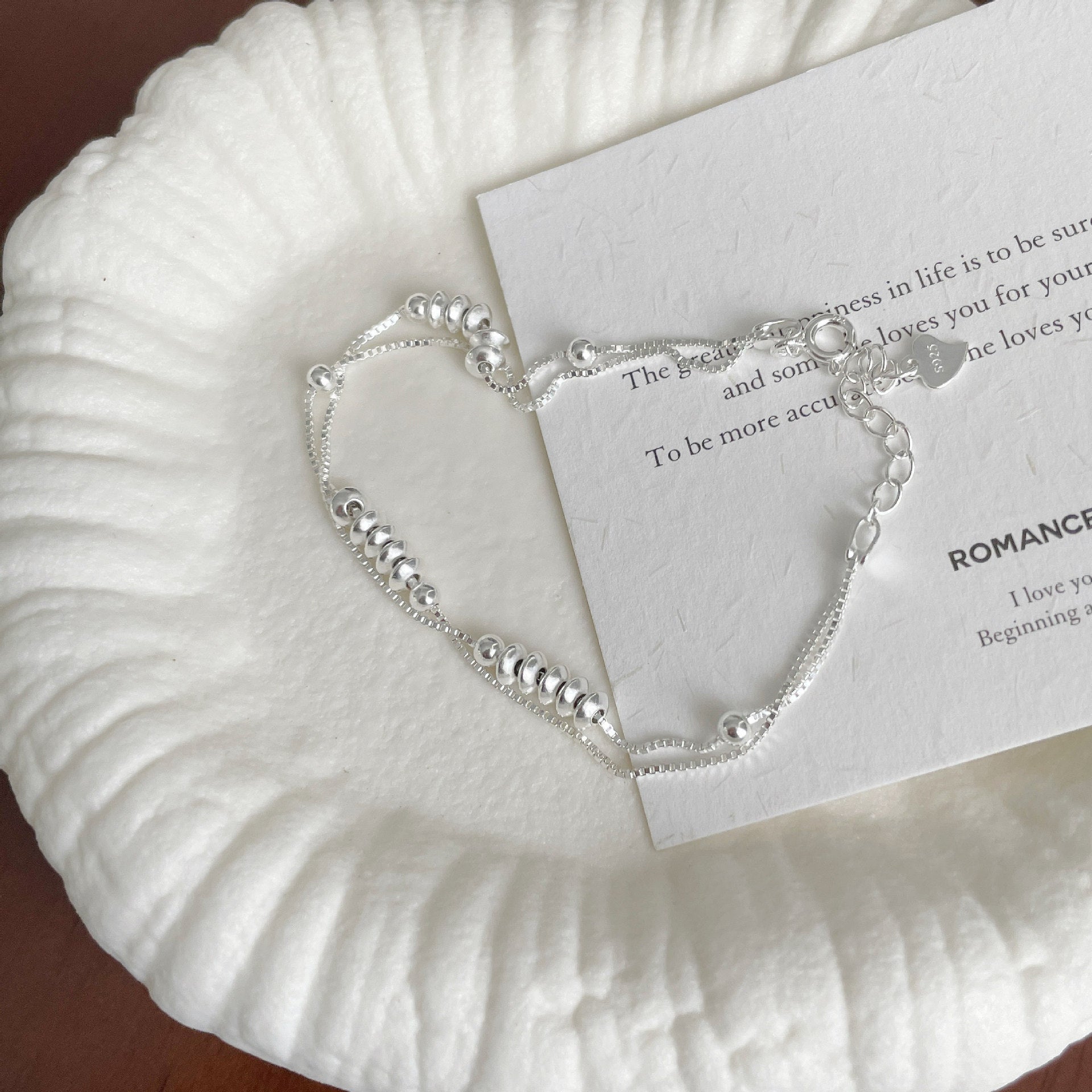 F廠【SB4143】S925純銀韓版小眾雙層飛盤珠手鍊女ins時尚簡約精緻百搭手飾 25.04-2