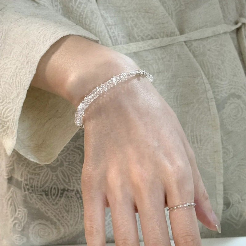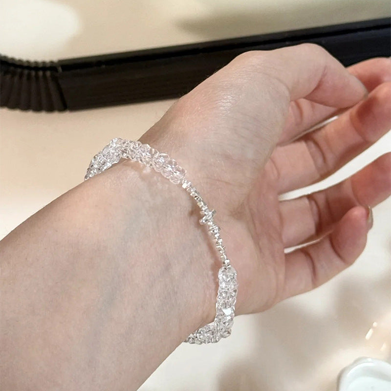 F廠【SB4211】S925純銀韓版小眾白水晶時尚手鍊碎銀子韓國設計感手飾女百搭 25.06-3