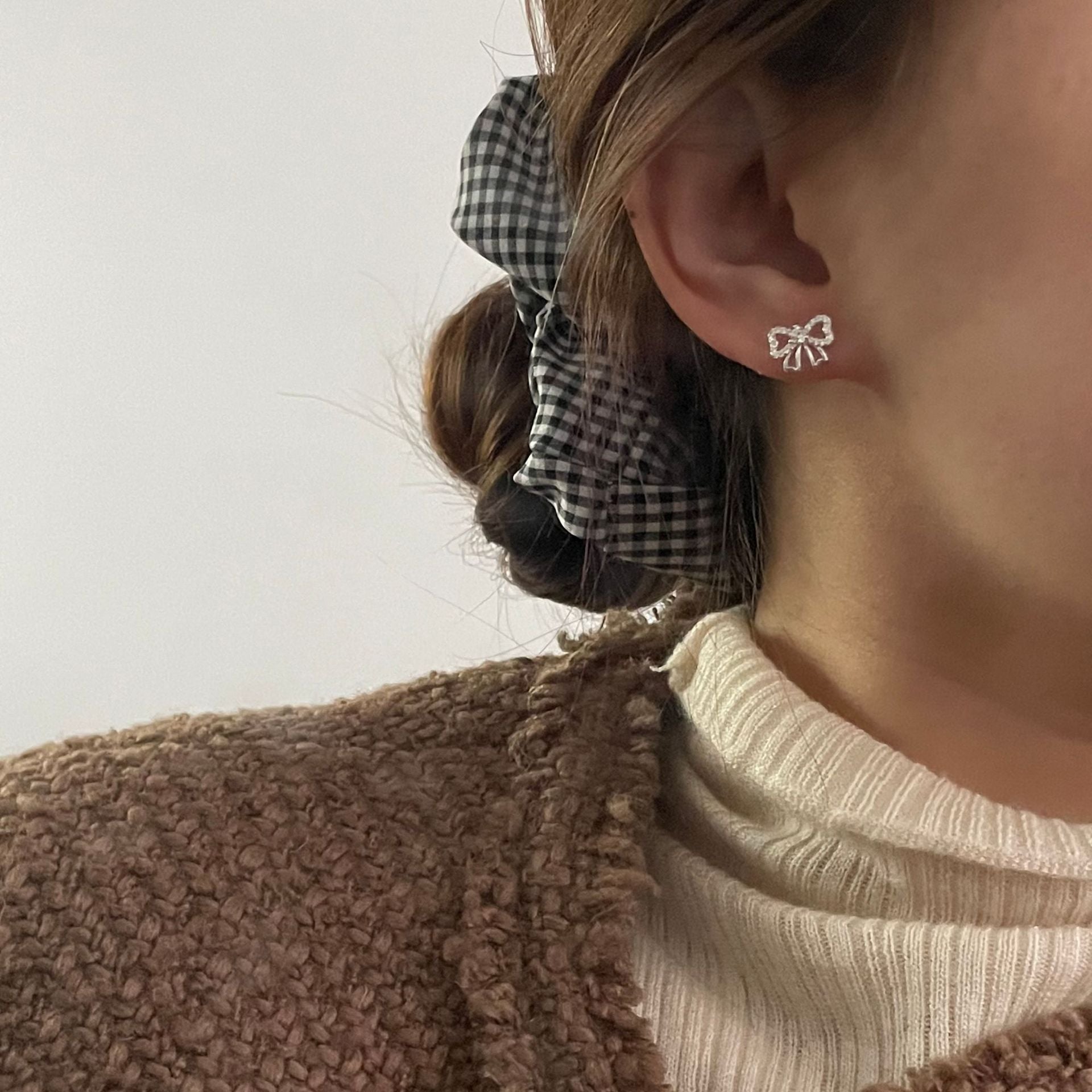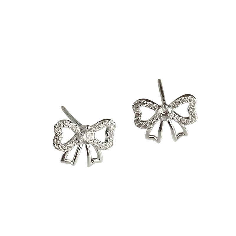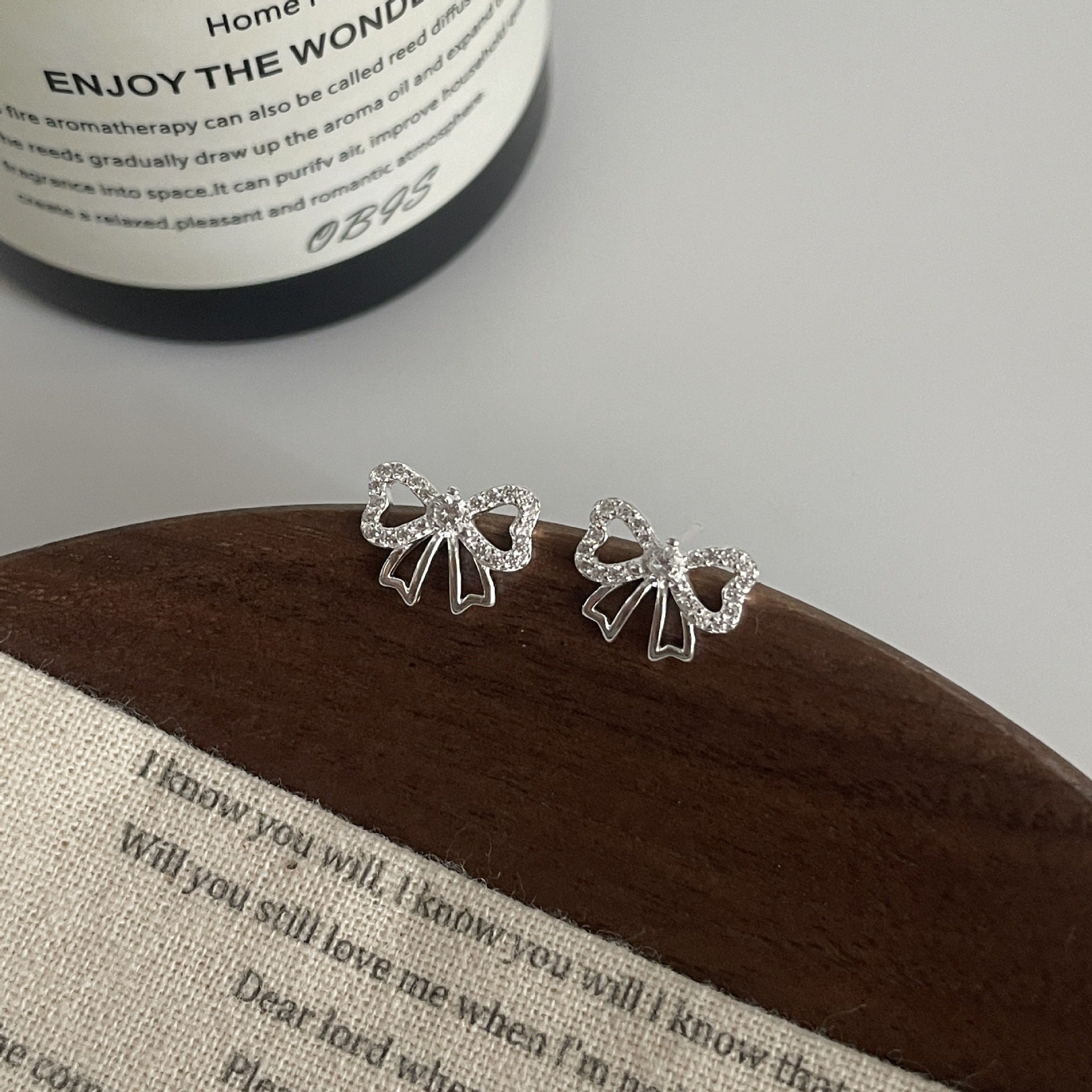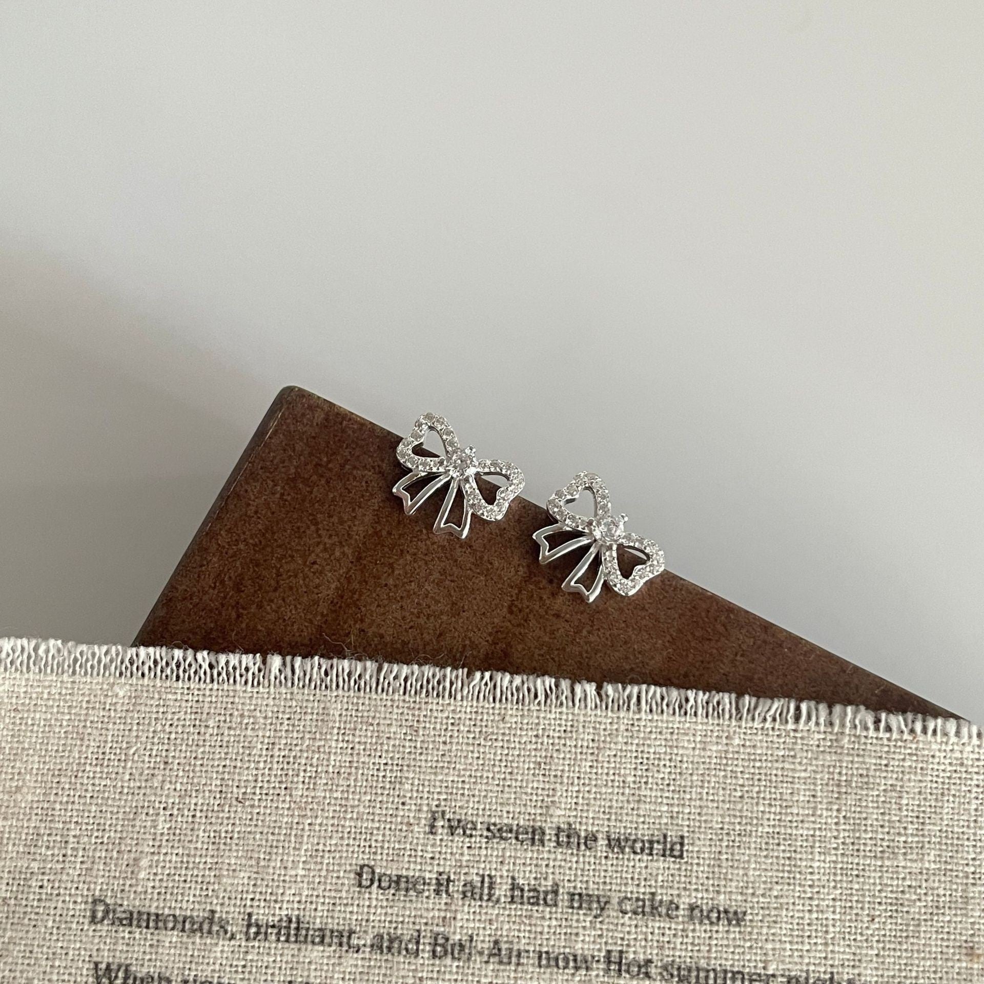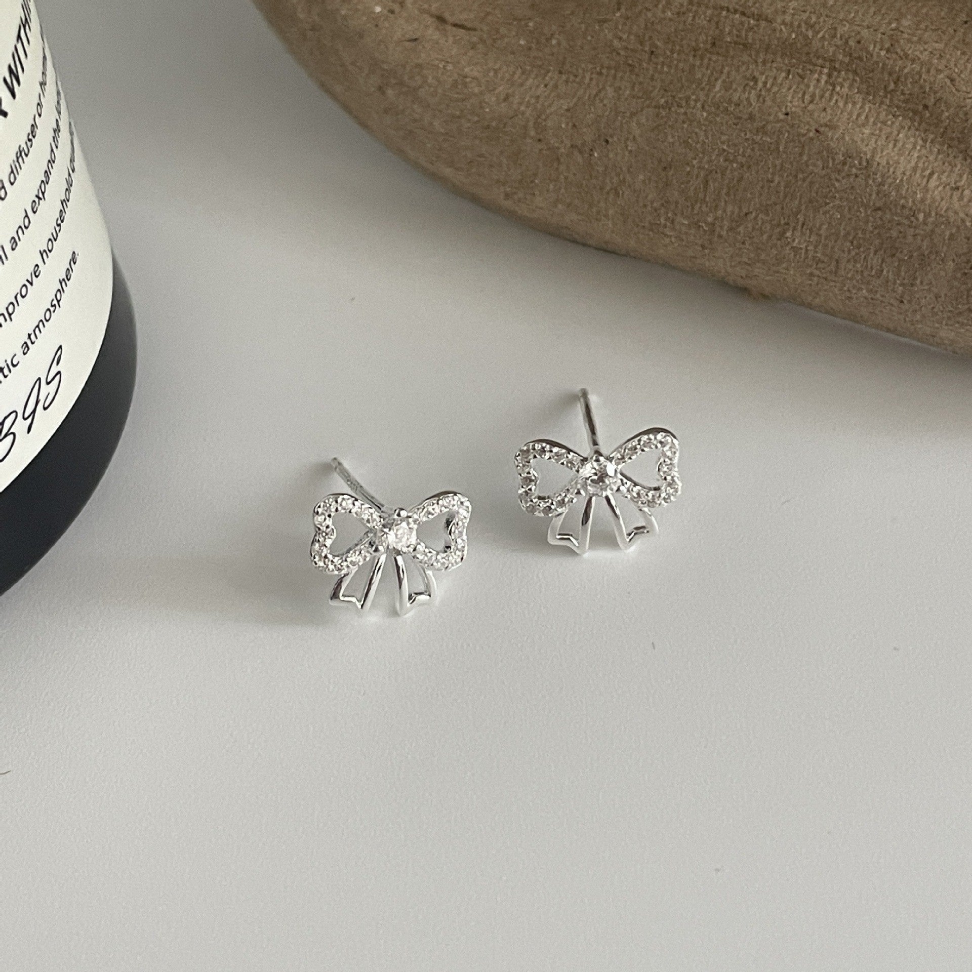 F廠【SE2394】S925銀韓版小眾設計感閃鋯蝴蝶結簡約耳環女韓式時尚個性耳飾 25.05-5