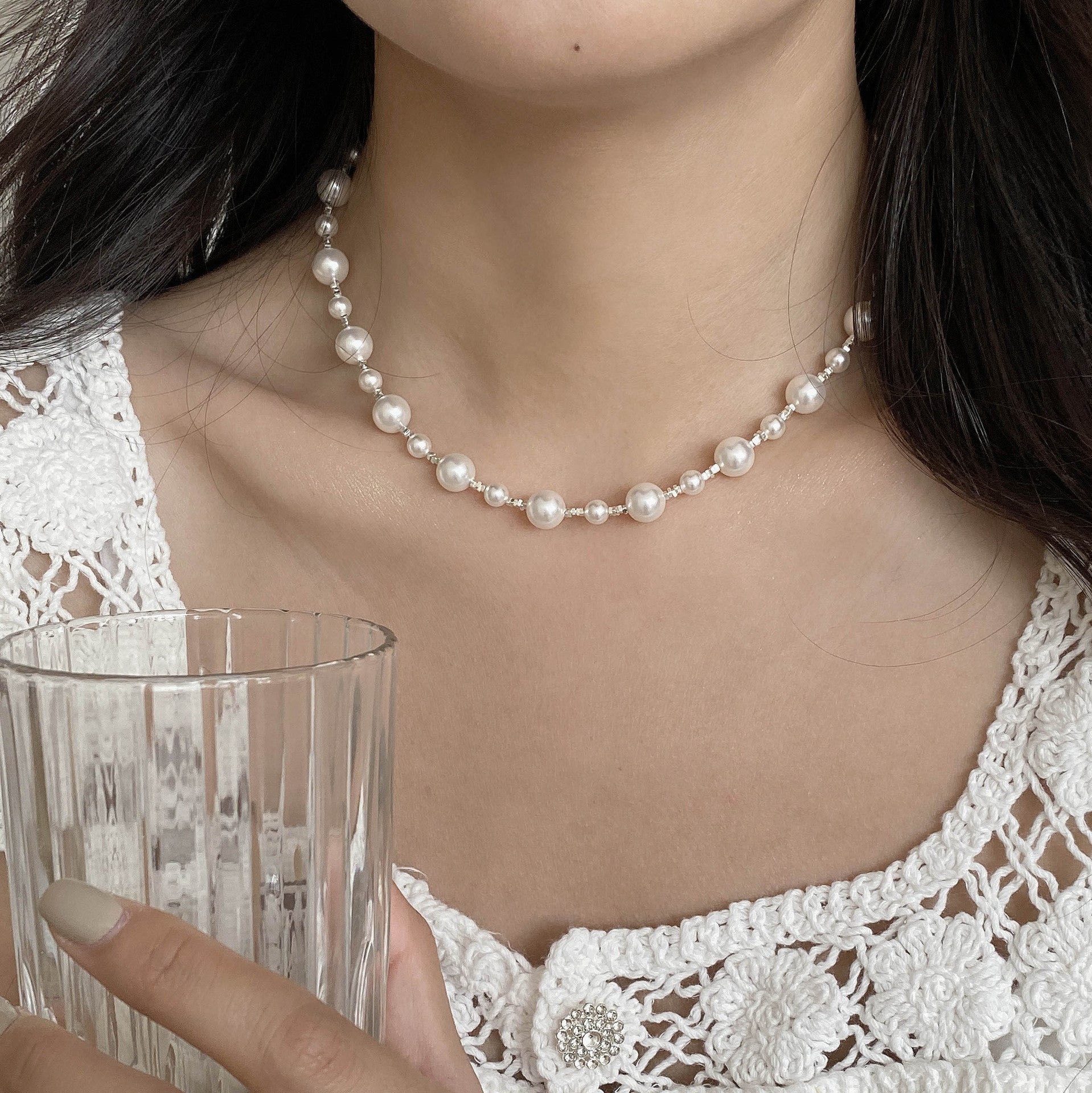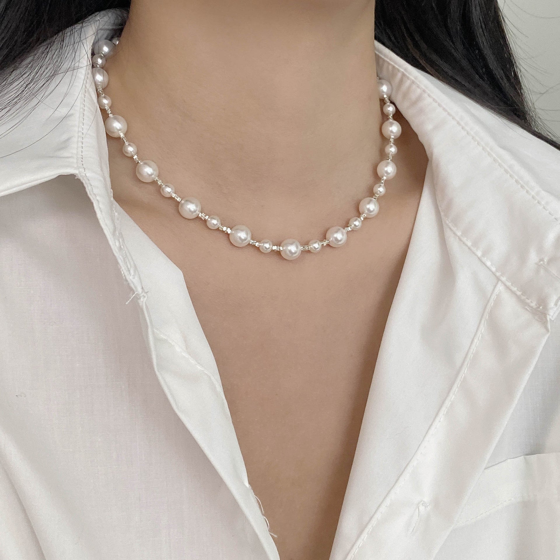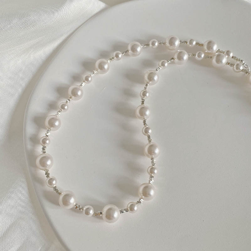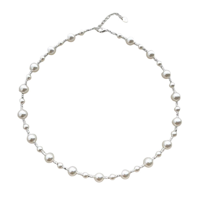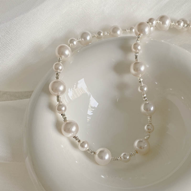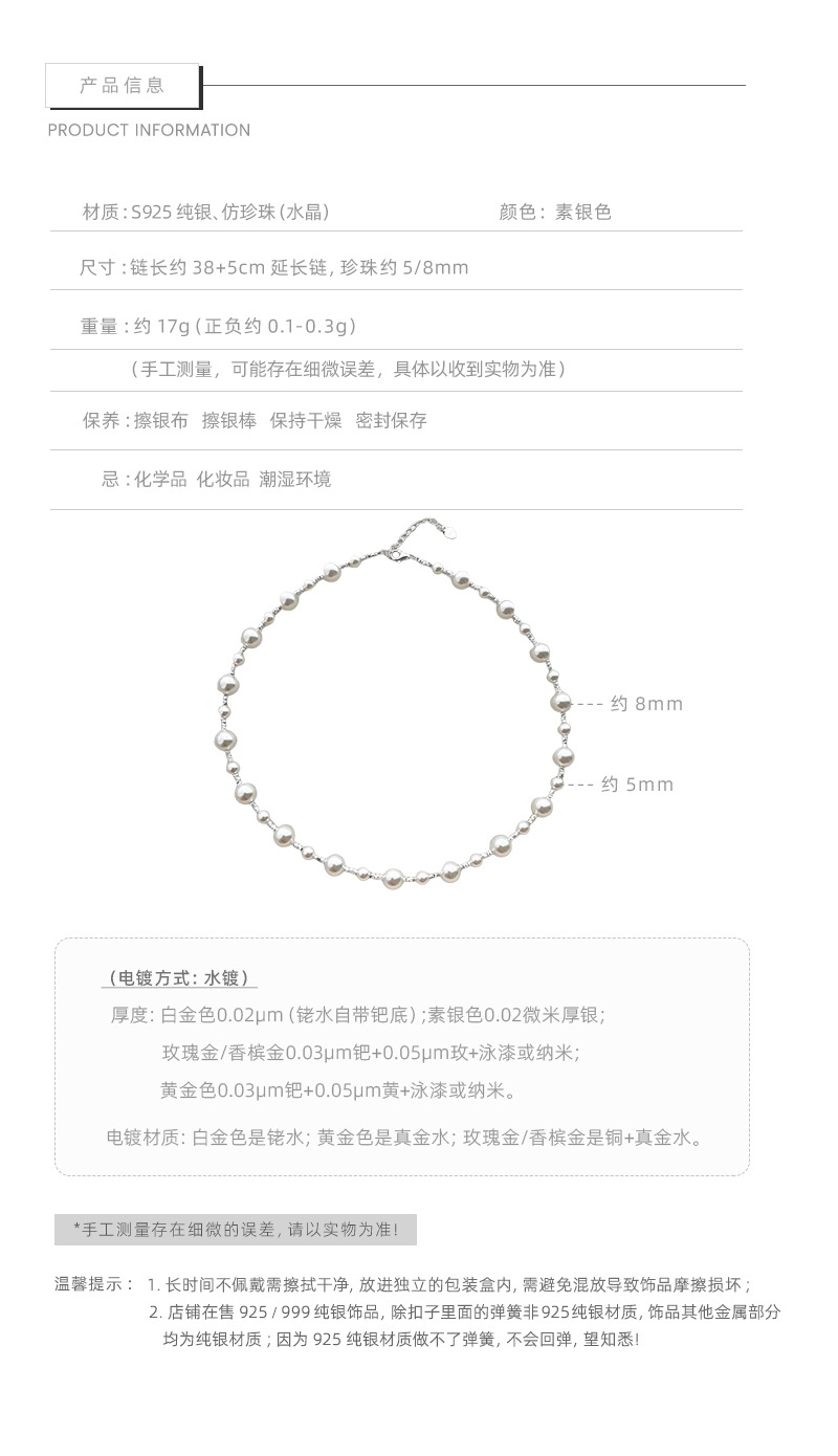 F廠【SN3048】法式復古小眾設計感仿珍珠項鍊925純銀碎銀子鎖骨鏈首飾 25.09-4