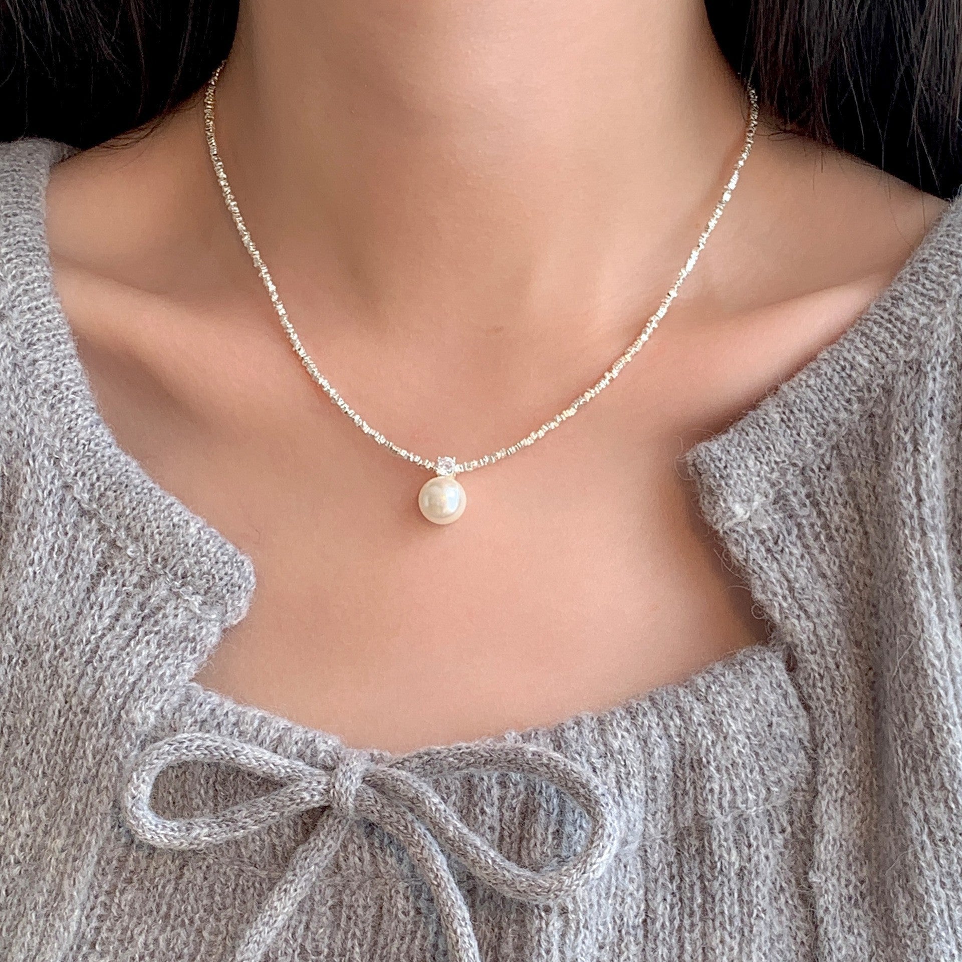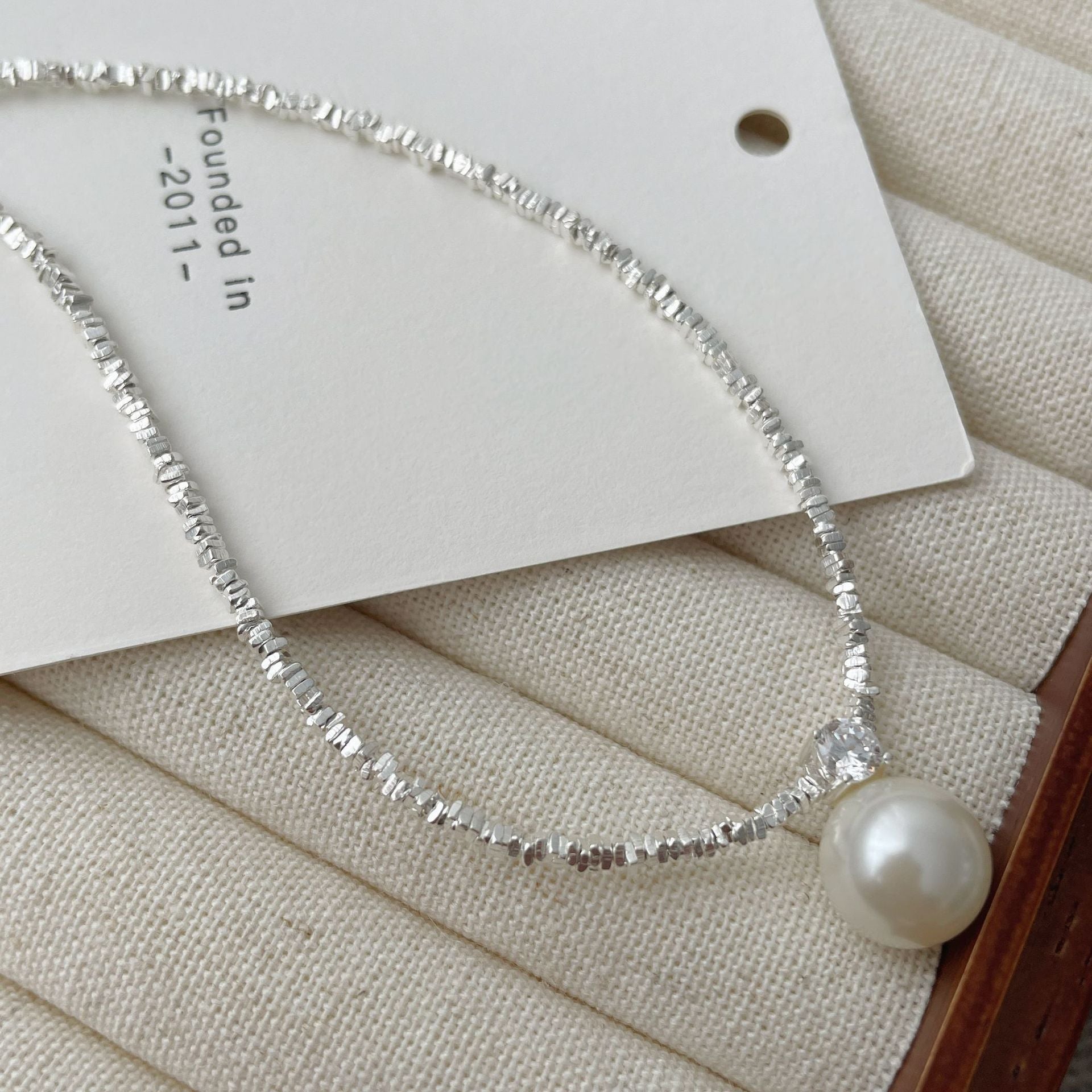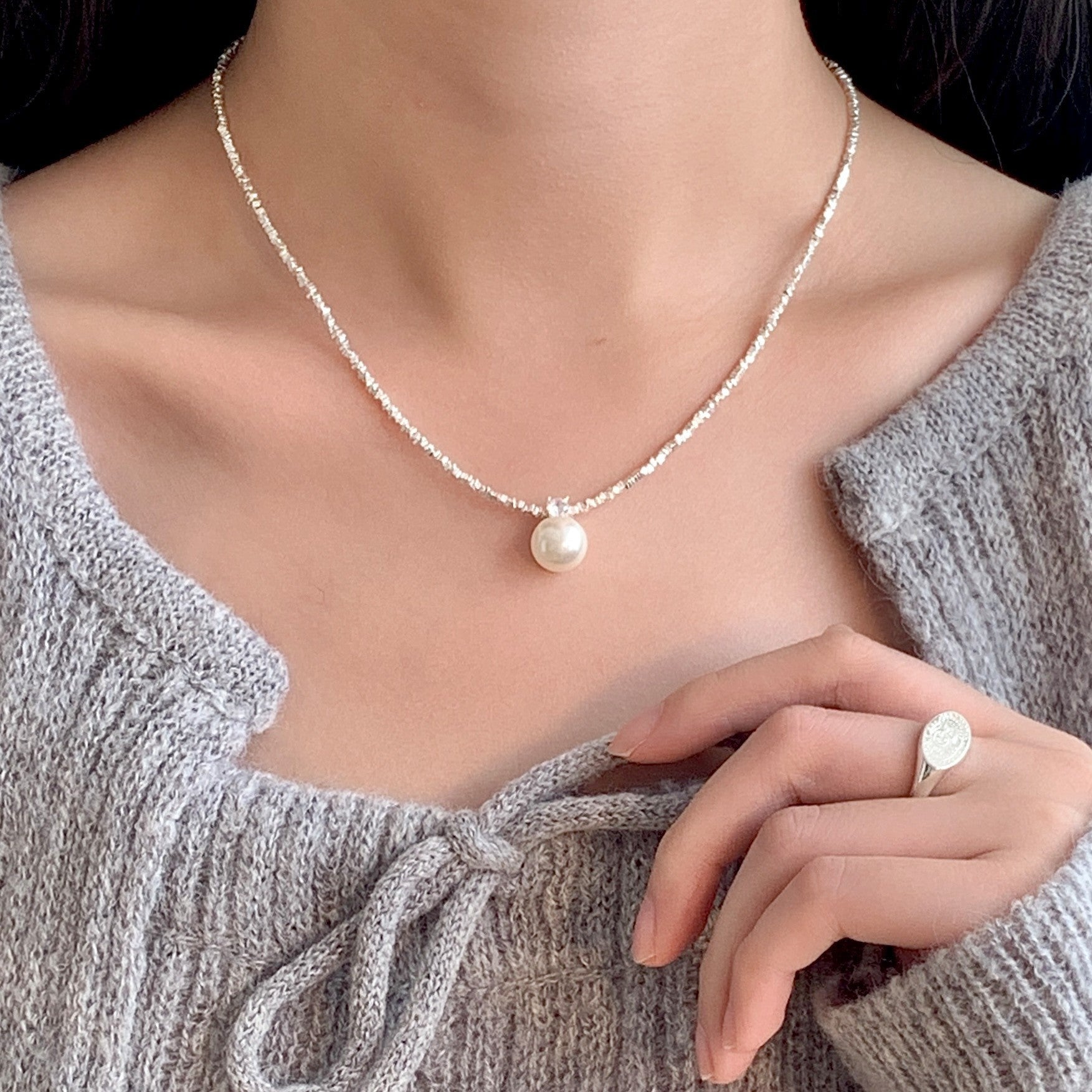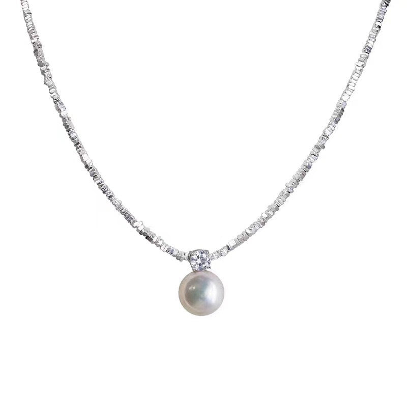 F廠【SN3179】仿珍珠碎銀子項鍊女小眾設計感輕奢高級感925純銀鎖骨鏈 25.09-4