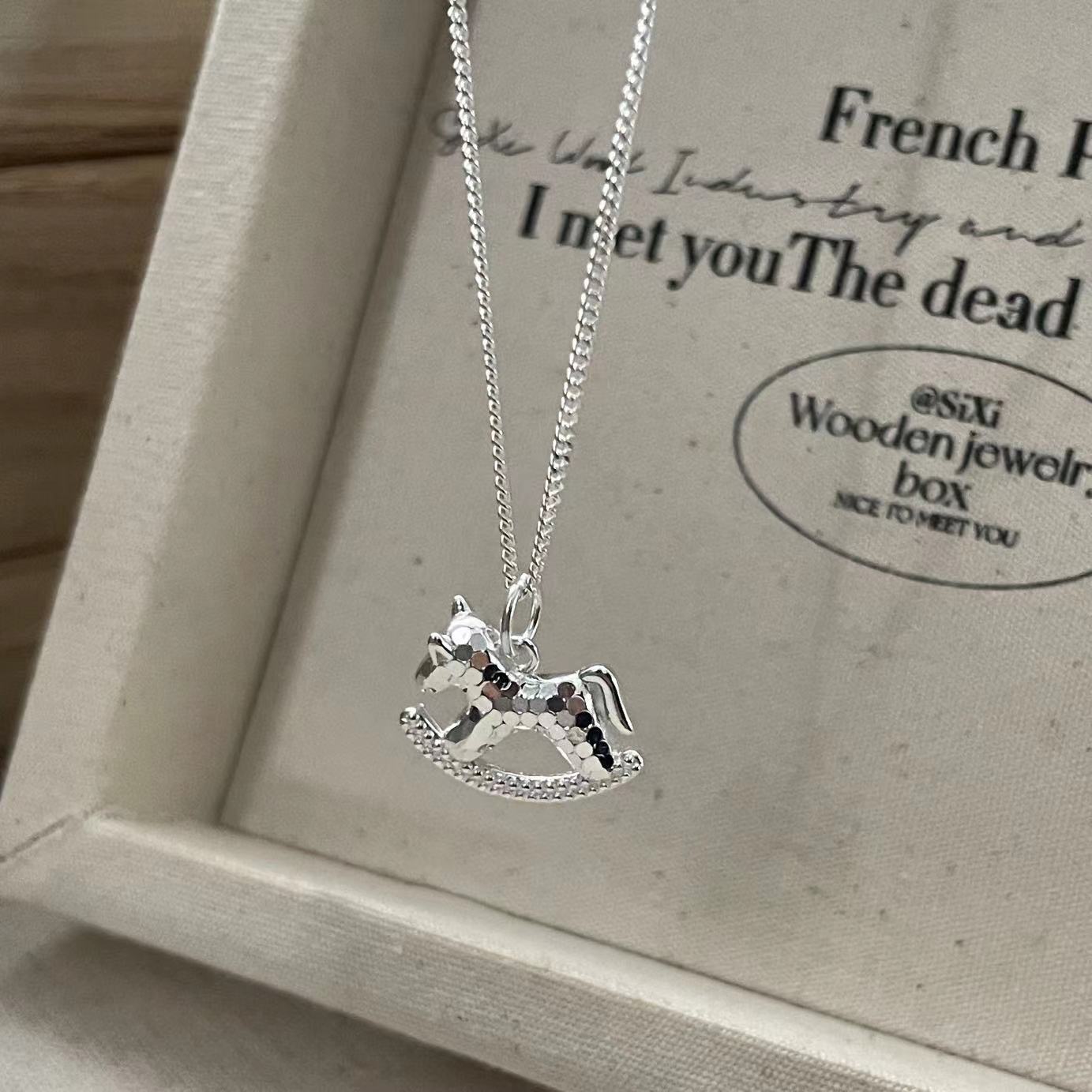 F廠【SN3517】925純銀碎冰冰小馬項鍊女高級感鎖骨鍊馬年生肖本命年首飾品 25.10-1