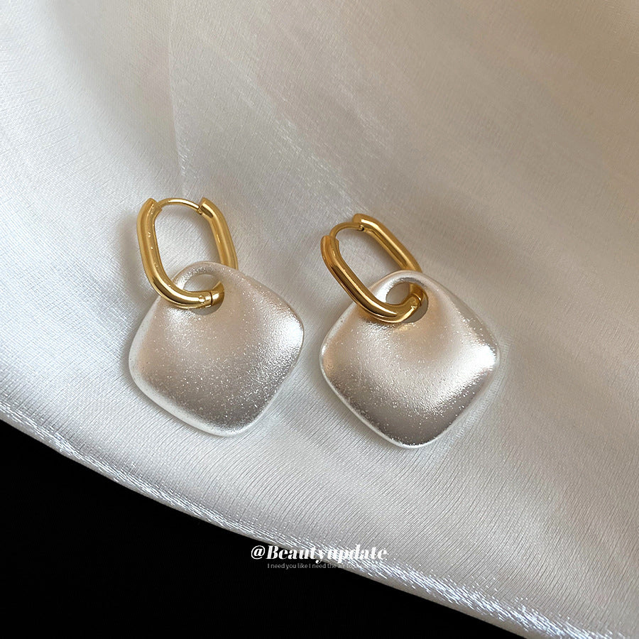 A廠【TE73】歐美不銹鋼霧面菱形吊墜耳環時尚冷淡風氣質耳環小眾高級感耳飾女 25.09-1