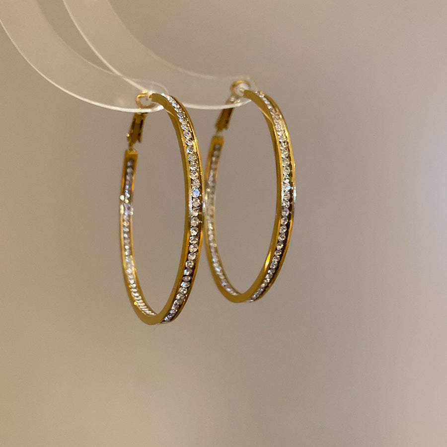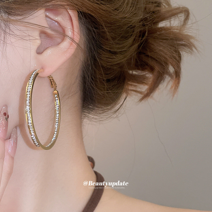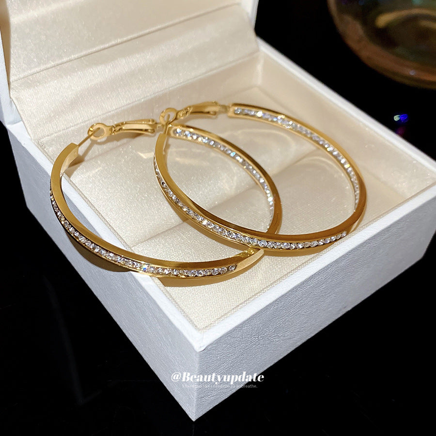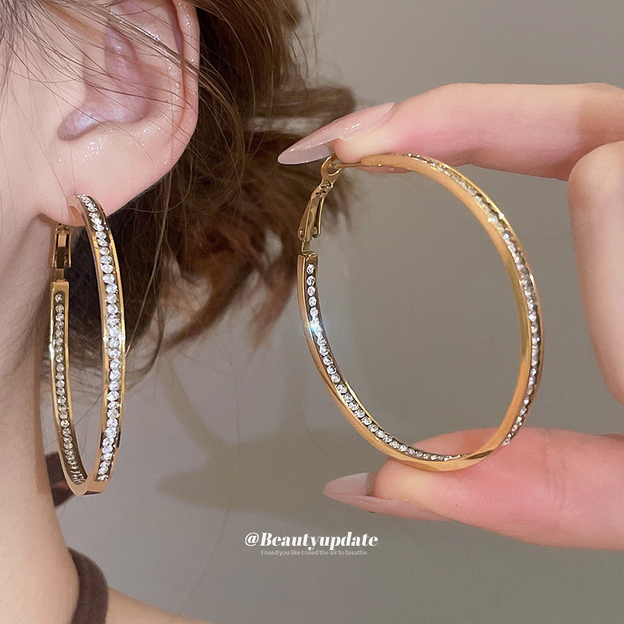 A廠【TE74】不銹鋼鑲鑽幾何圓形吊墜耳圈歐美金屬感耳環輕奢高級感耳飾女 25.09-1
