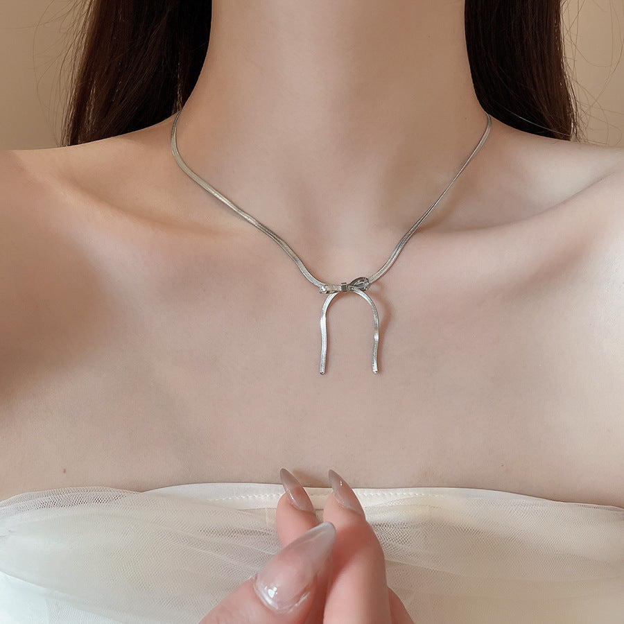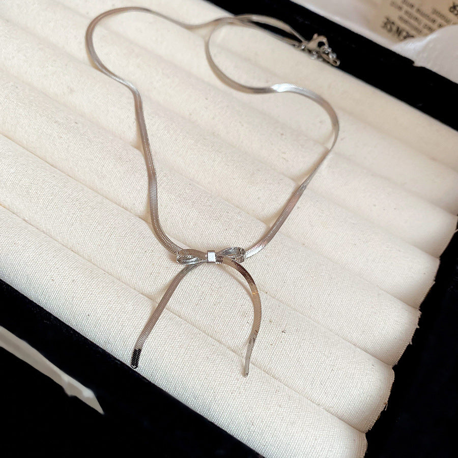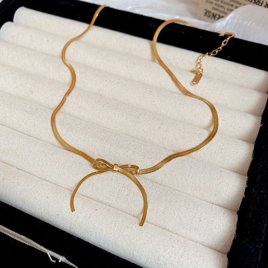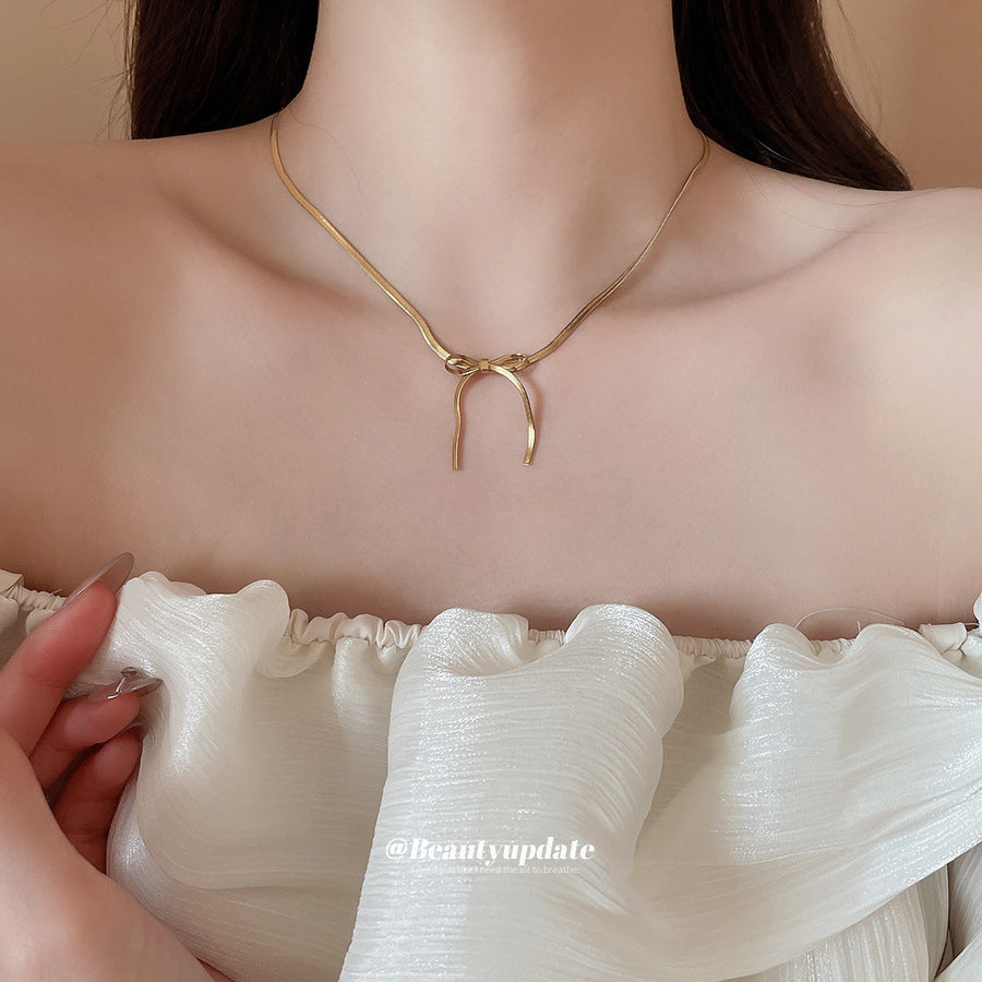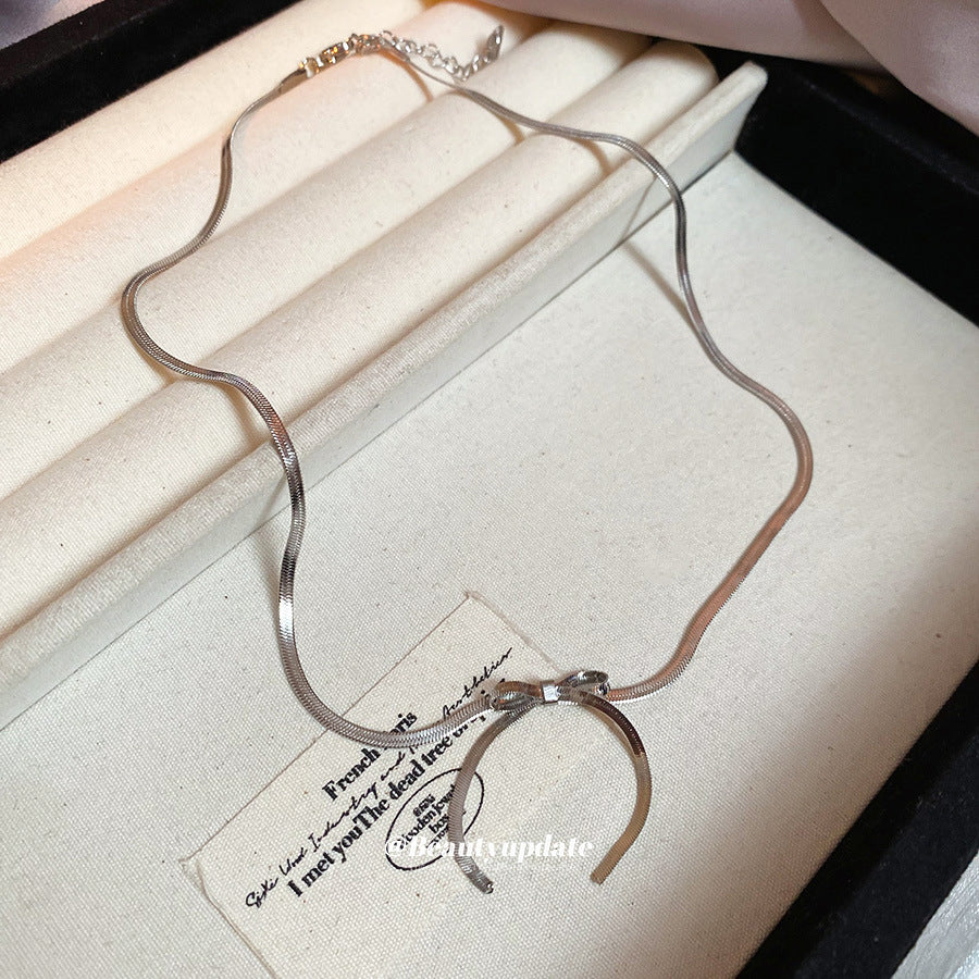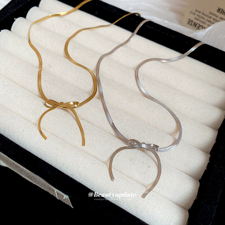 A廠【TN17】歐美鈦鋼蝴蝶結蛇骨鏈項鍊簡約時尚百搭鎖骨鏈輕奢高級感項鍊 25.04-4
