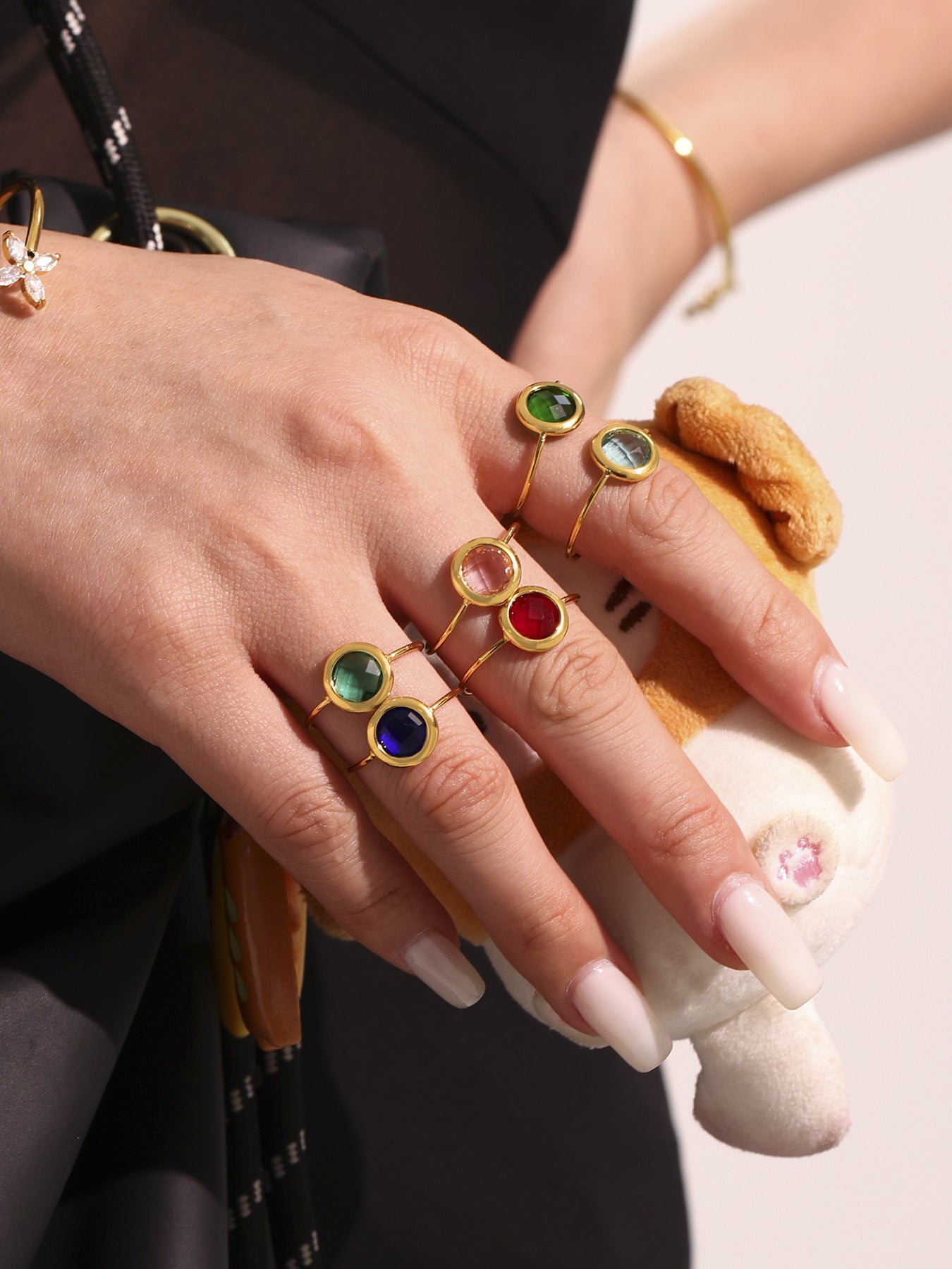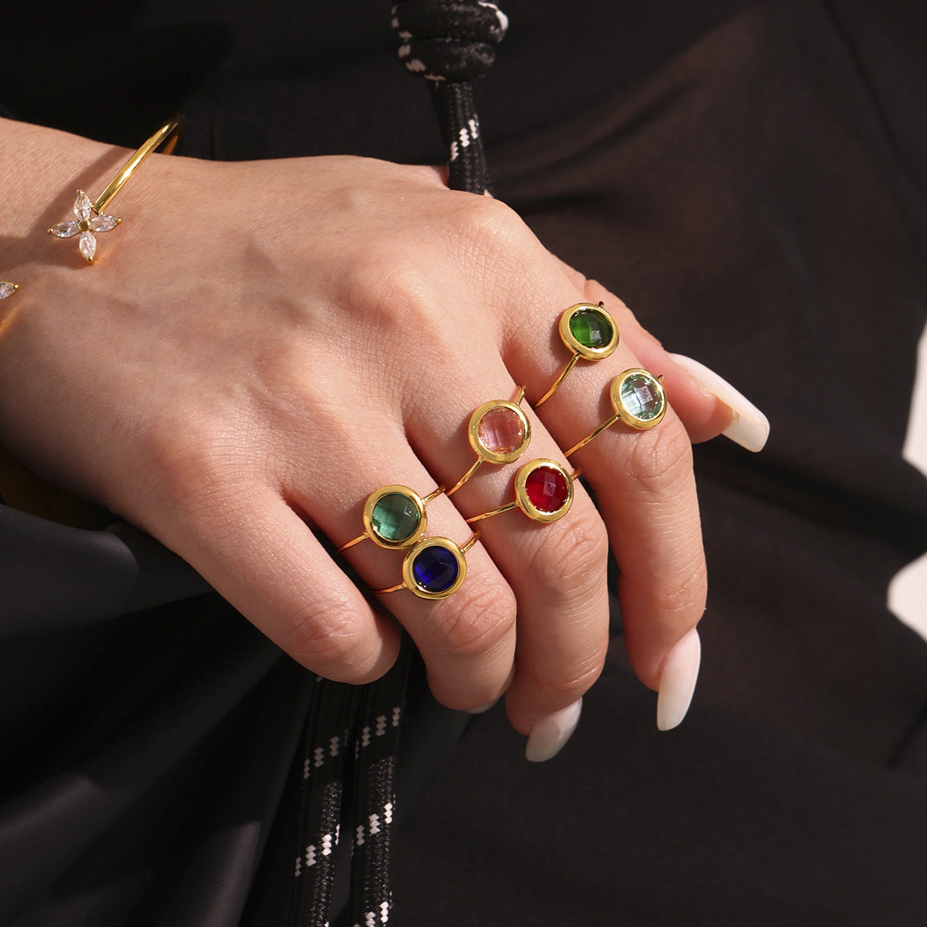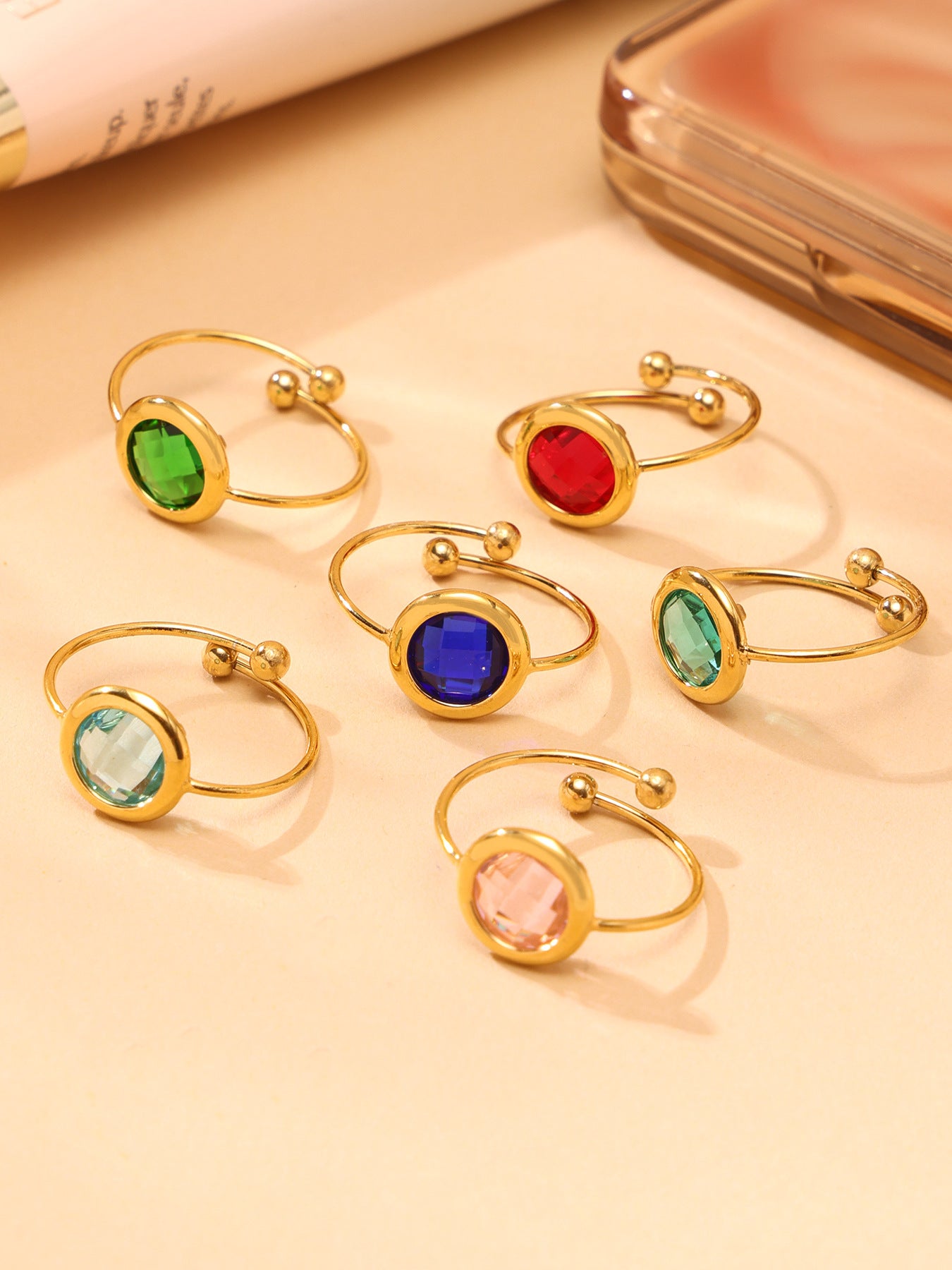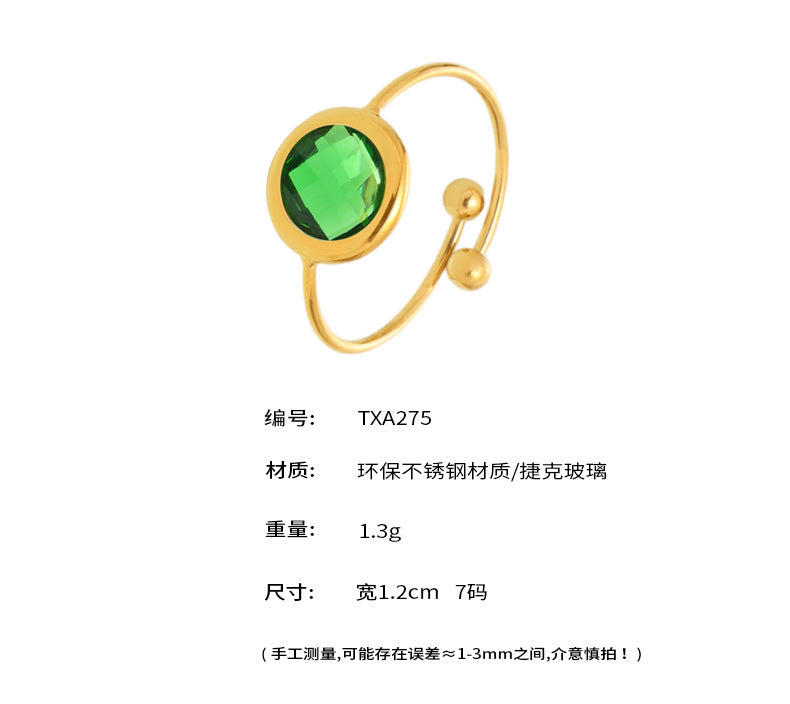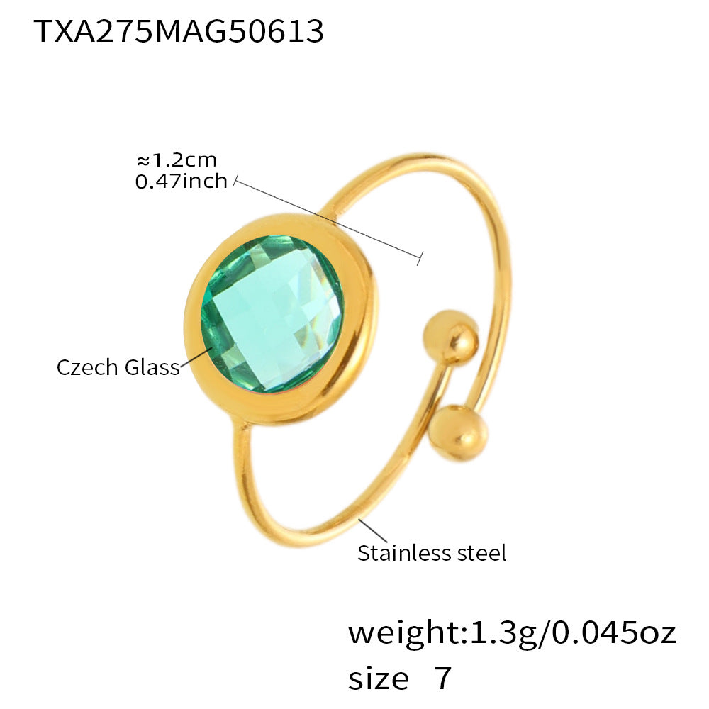 B廠【TXA275】ins小眾輕奢不銹鋼捷克琉璃開口戒指18k鍍金簡約時尚手飾品 25.06-4