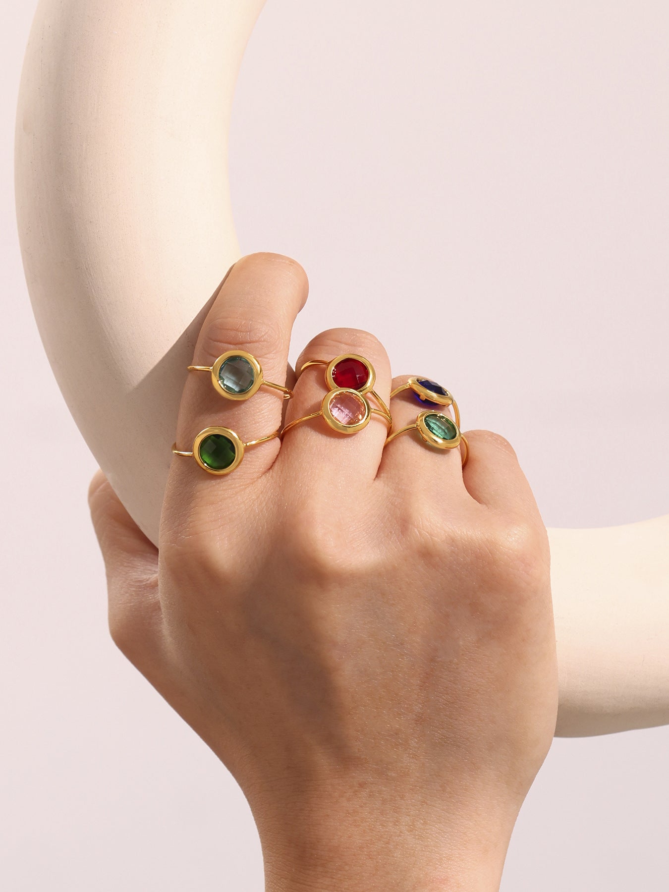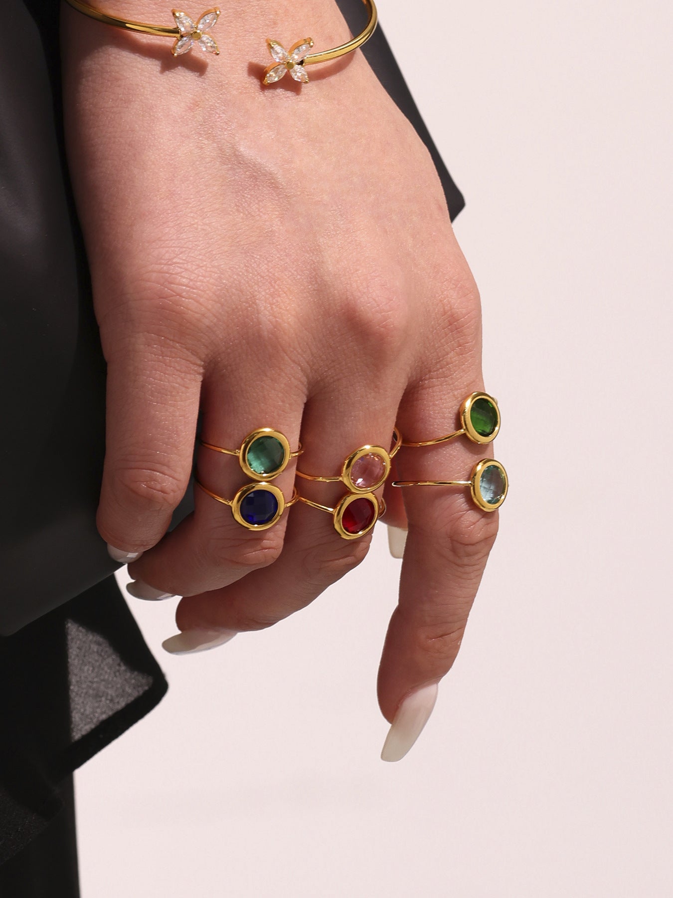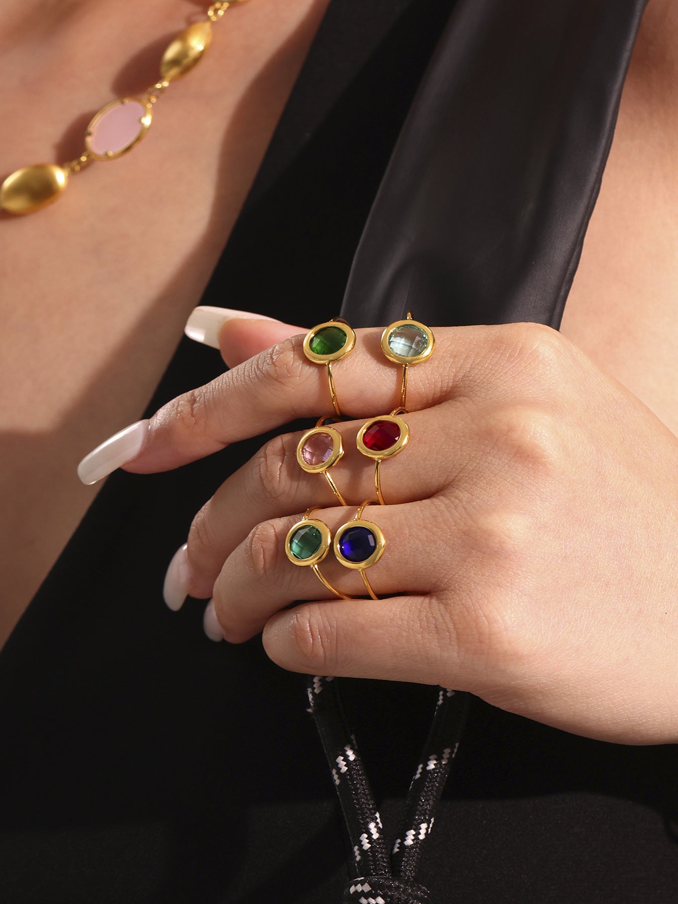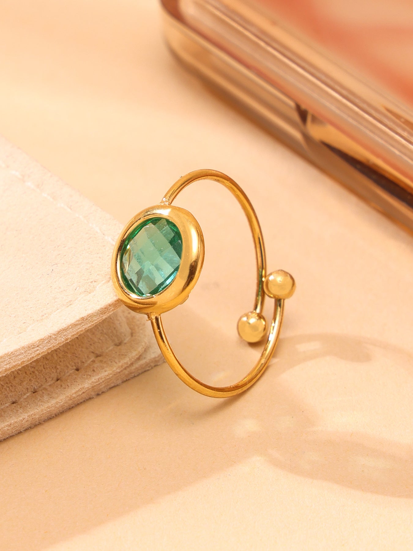B廠【TXA275】ins小眾輕奢不銹鋼捷克琉璃開口戒指18k鍍金簡約時尚手飾品 25.06-4