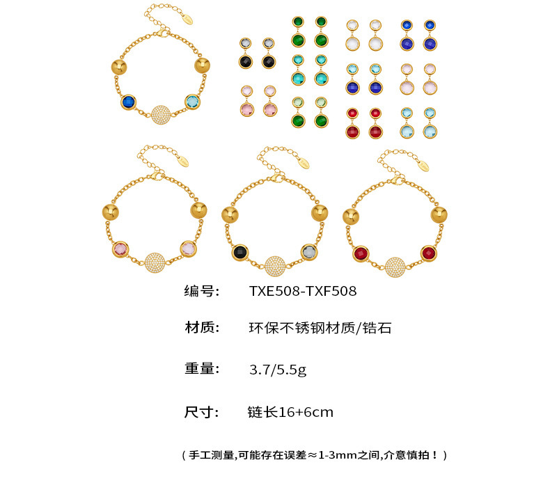 B廠【TXE508】不鏽鋼滿鑽鋯石切面包邊玻璃石手鍊耳環鍍18k真金首飾組不掉色 25.12-1