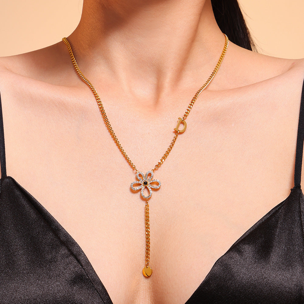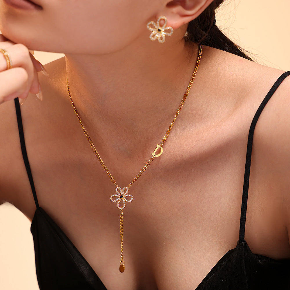 B廠【TXF152】飾品手工花朵黏鋯石耳環項鍊首飾組鈦鋼鍍18k真金保色 24.10-4