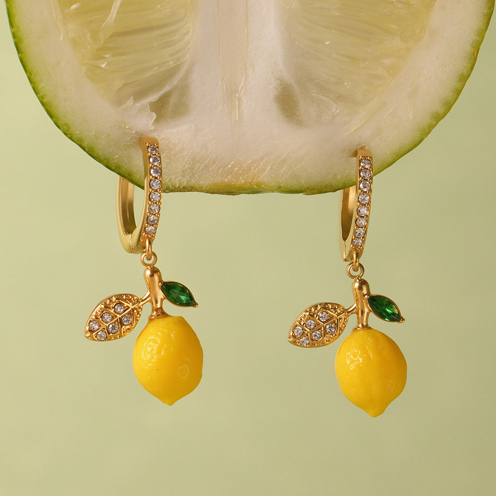 B廠【TXF288】ins小香風不鏽鋼5A鋯石檸檬花朵耳環女歐美新款耳環18k鍍金 25.06-3