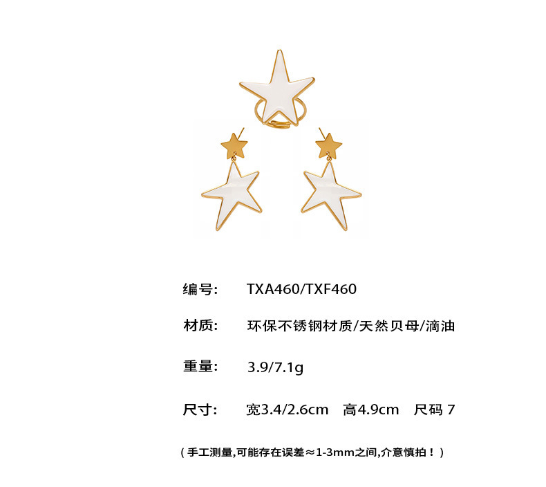 B廠【TXF460】新款天然貝母滴油大五角星戒指耳環組不銹鋼鍍18k金耳飾 25.11-1