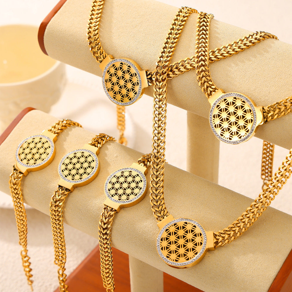 B廠【TXP012】歐美時尚流行項鍊手鍊女鈦鋼金色幾何鏤空吊墜小眾古巴鏈套裝 24.04-4
