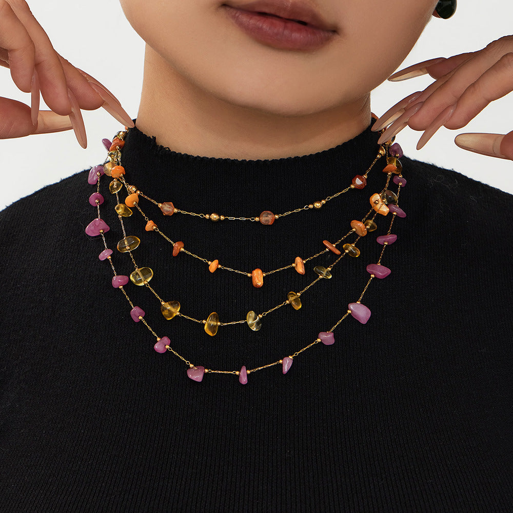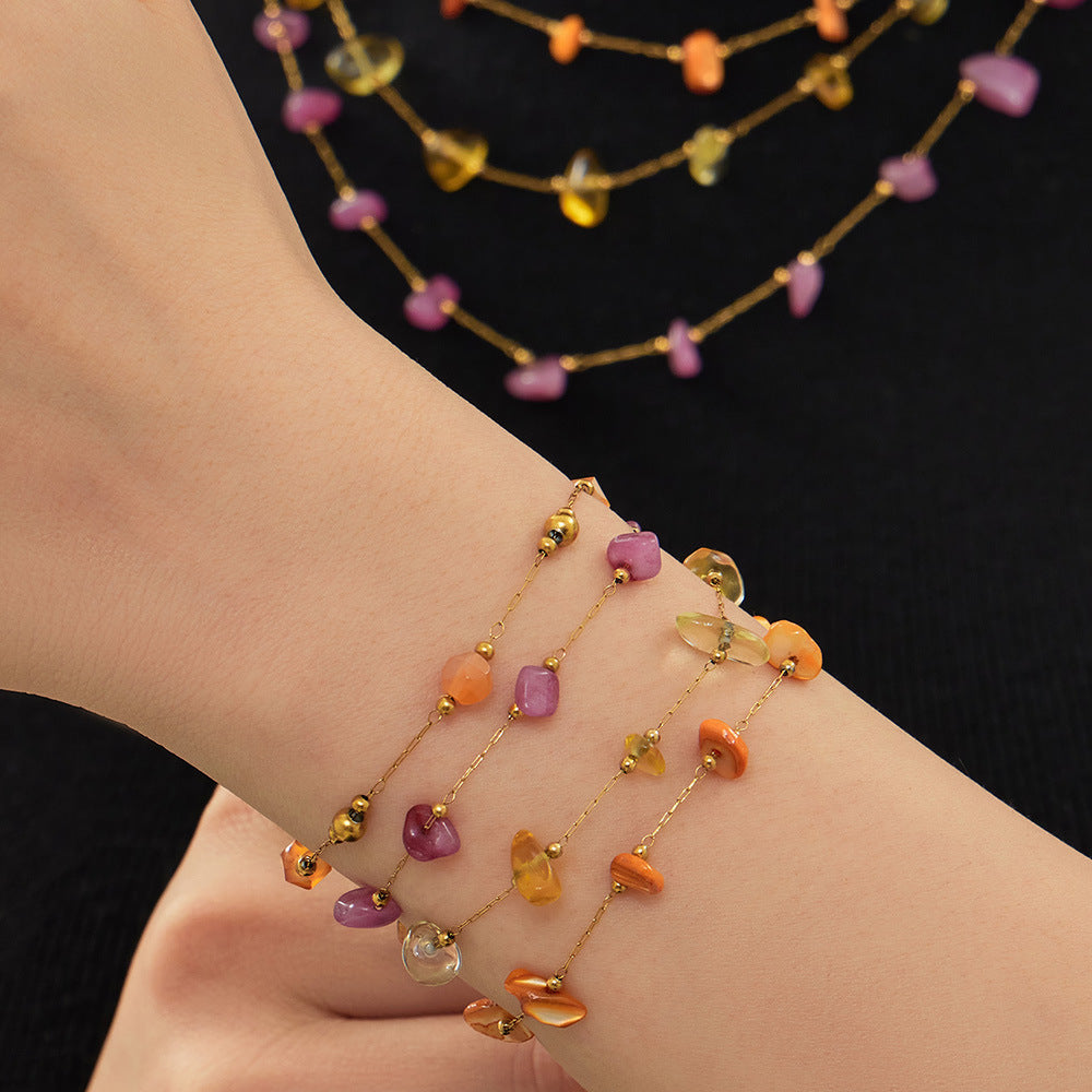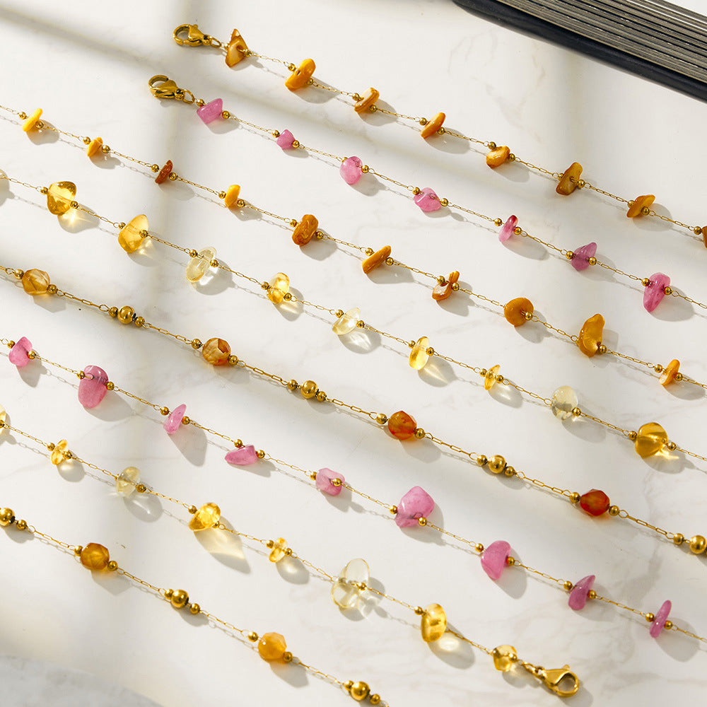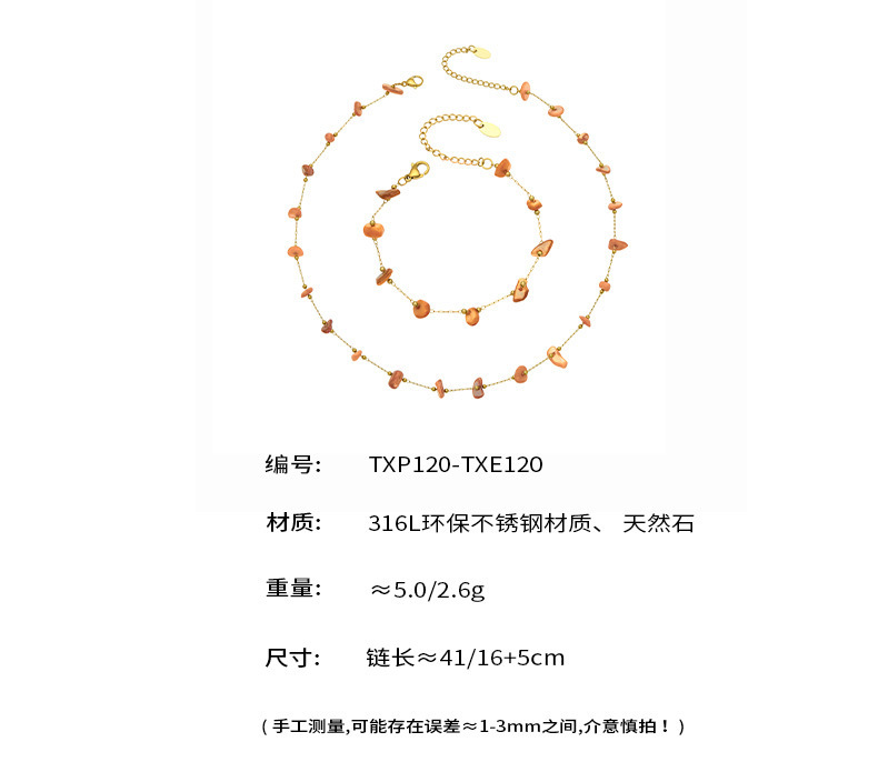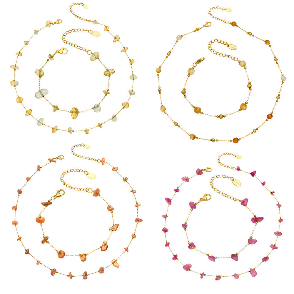 B廠【TXP120】歐美輕奢簡約個性天然碎石手工鍊項鍊手鍊套組不銹鋼鏈條鍍18k金 26.03-3