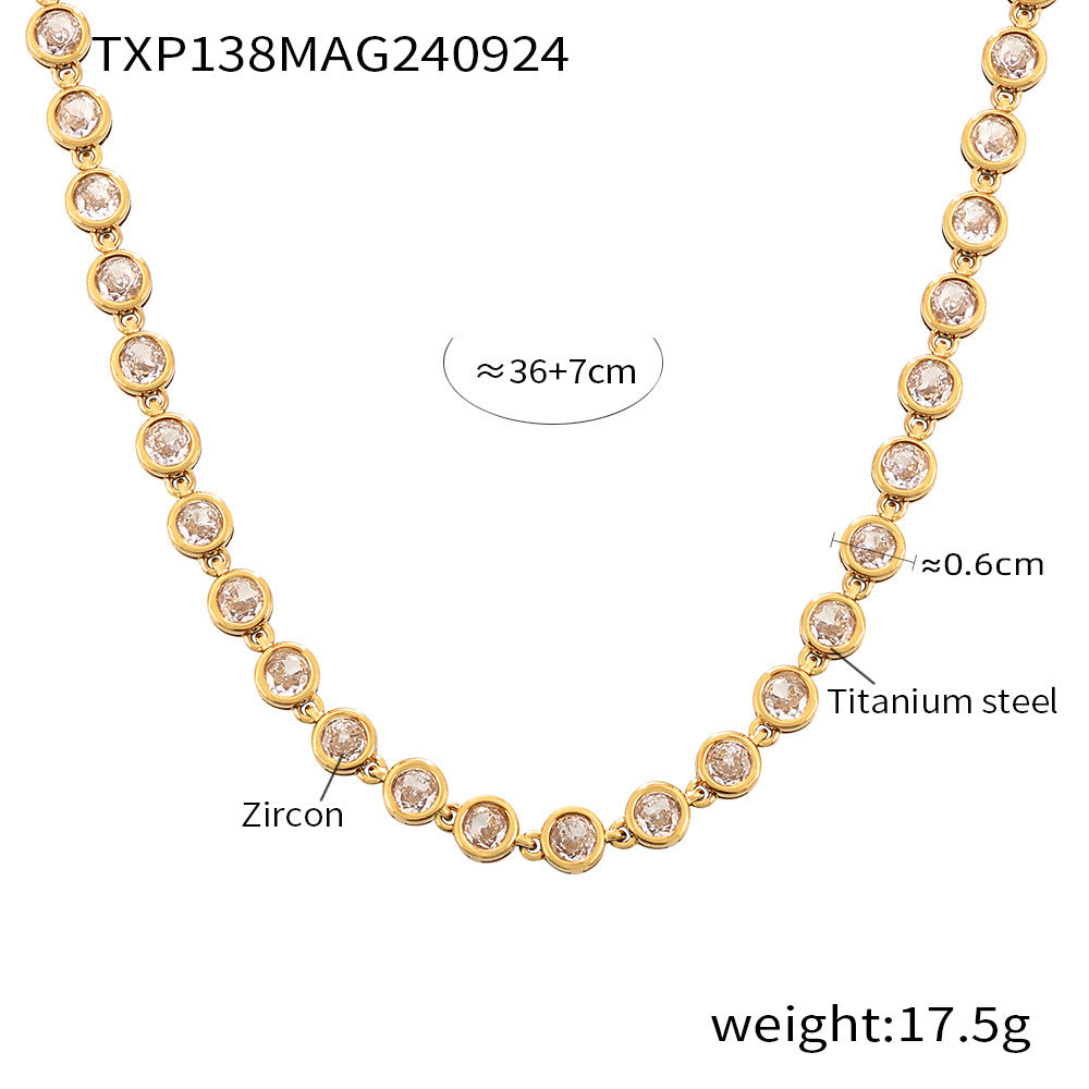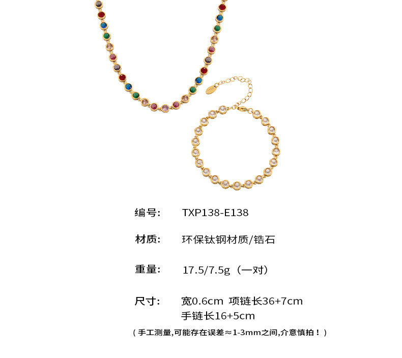 B廠【TXP138】多巴胺多彩圓珠鋯石項鍊手鍊鈦鋼PVD鍍18K金波西米亞超閃首飾套裝 24.10-1