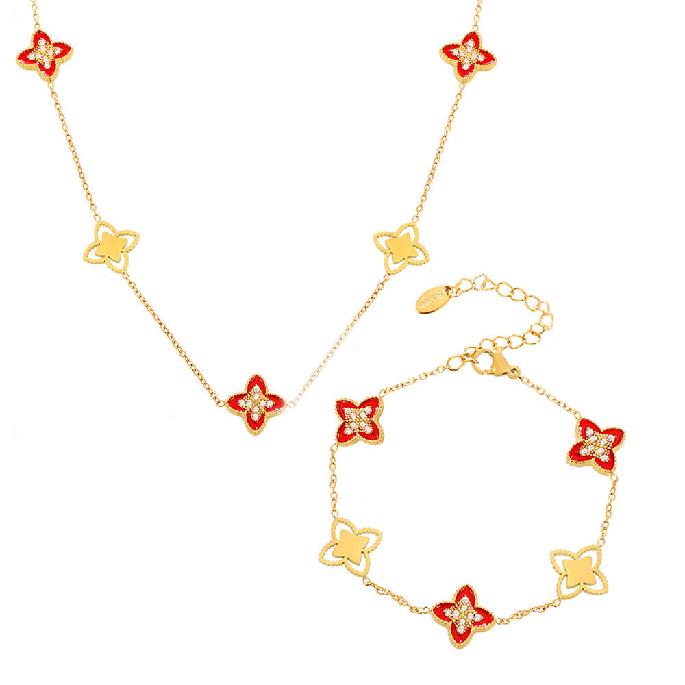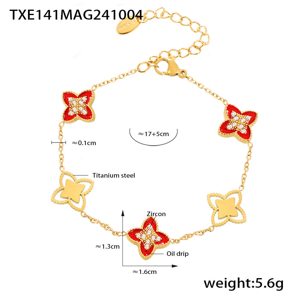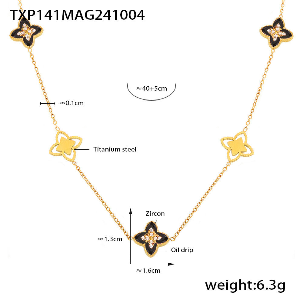 B廠【TXP141】歐美跨境滴油四葉花鋯石滿鑽手鍊項鍊小眾設計女生款閨蜜鈦鋼套裝 24.10-2
