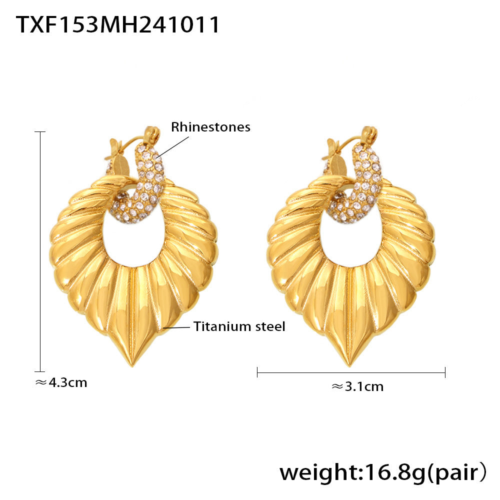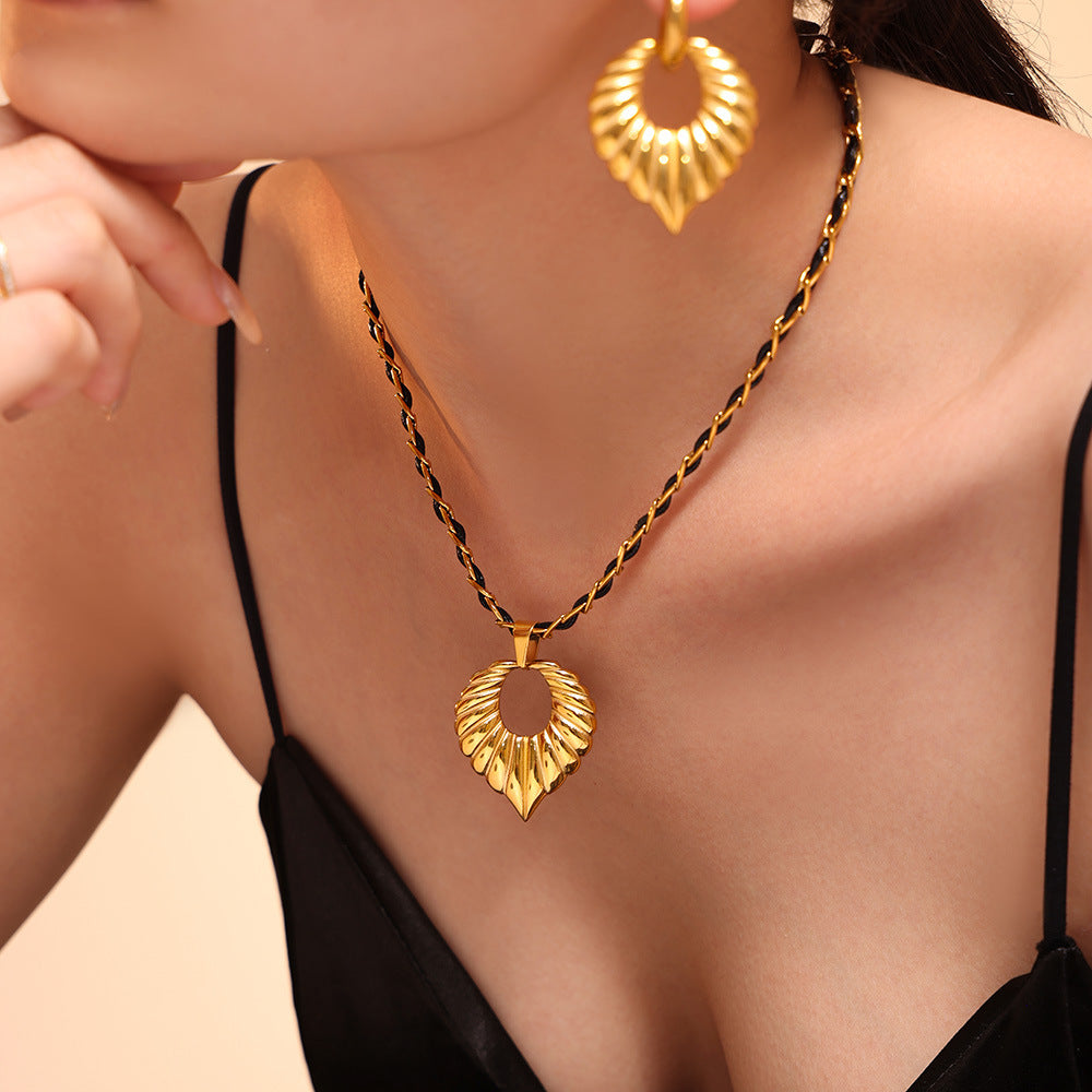B廠【TXP153】飾品羅馬紋大愛心黏水鑽項鍊耳環鈦鋼材質鍍18k金首飾套裝 24.10-4