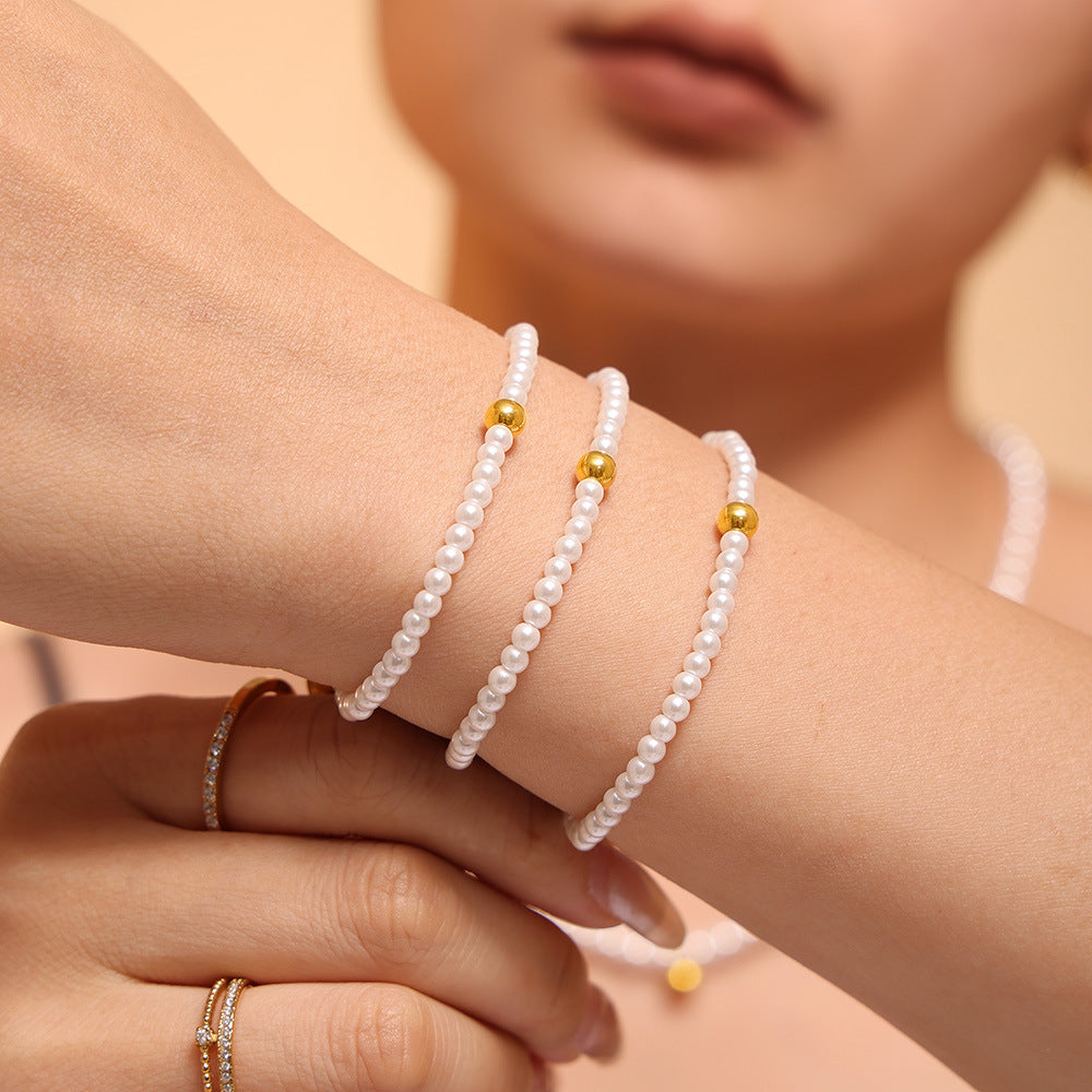 B廠【TXP157】飾品巴洛克貝珠項鍊手鍊女輕奢小圓球鈦鋼吊墜甜美首飾套裝 24.10-4