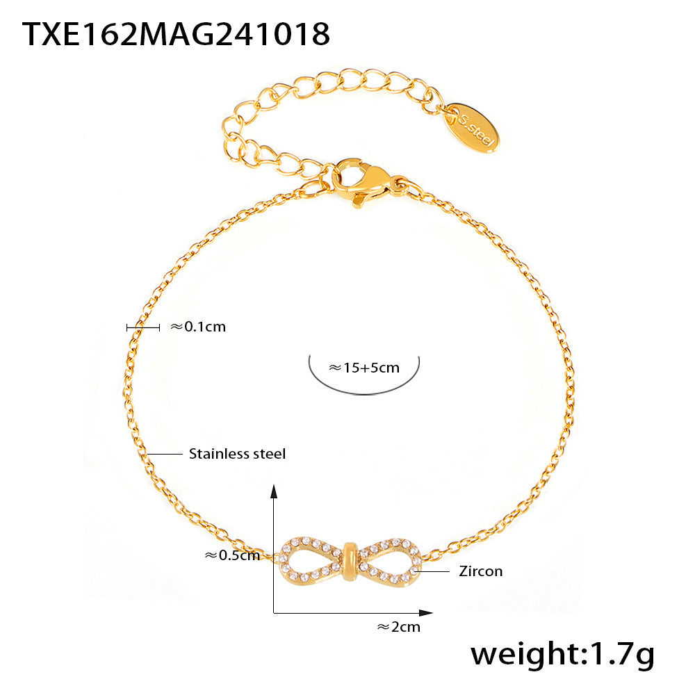 B廠【TXP162】飾品ins小眾8字鑲鋯石超閃鎖骨項鍊手鍊不銹鋼PVD電鍍保色 24.10-4
