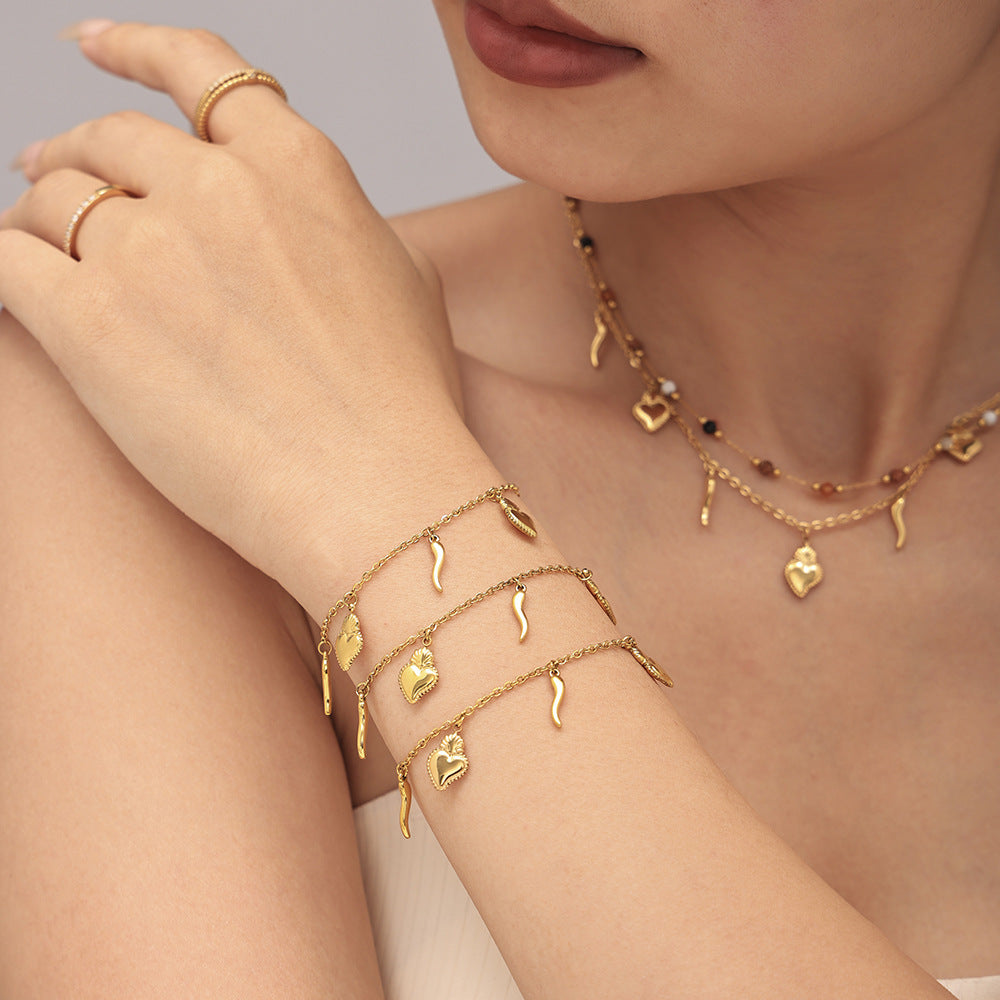 B廠【TXP168】 歐美DIY多配件疊戴項鍊小眾手鍊不鏽鋼鍍18K真金套裝現貨 24.10-4