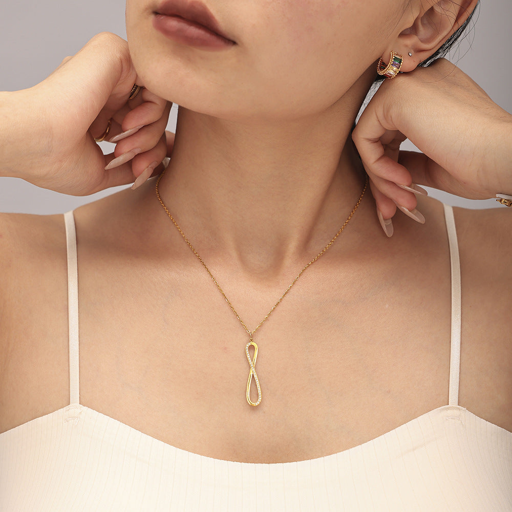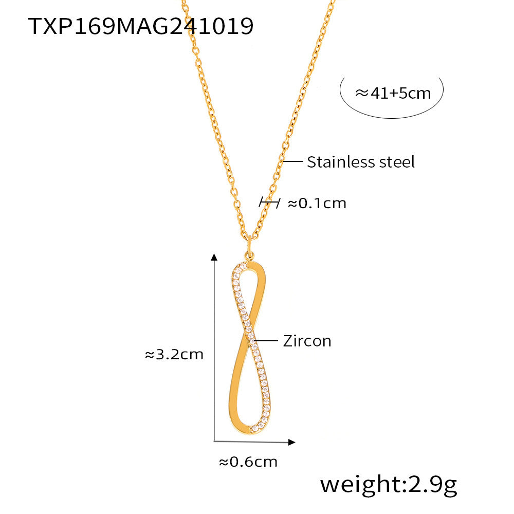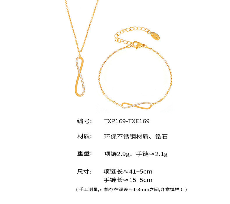 B廠【TXP169】歐美INS風8字CNC鋯石長條雙層項鍊小眾手鍊不鏽鋼首飾套裝 24.10-4