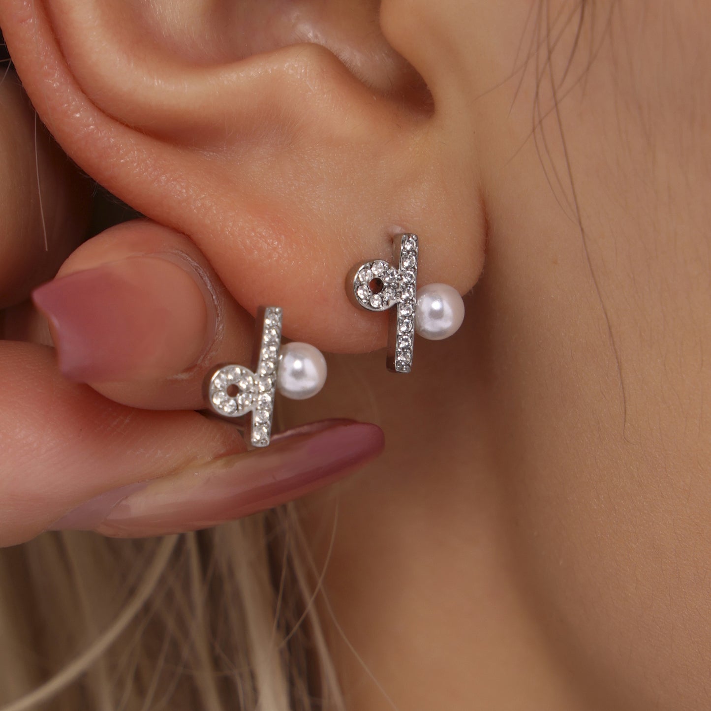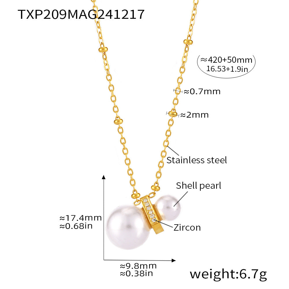B廠【TXP209】輕奢不銹鋼CNC鑲鋯石貝珠項鍊星座符號耳環首飾套裝 25.01-1