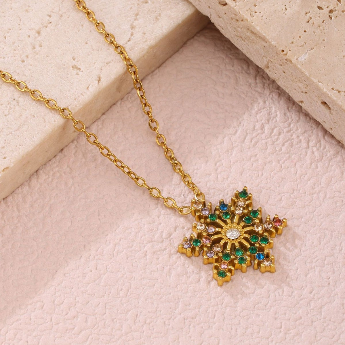 B廠【TXP219】 聖誕節CNC雪花超閃鋯石吊墜鎖骨項鍊批發鈦鋼不掉色飾品女 25.01-2