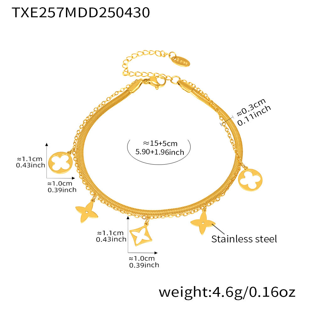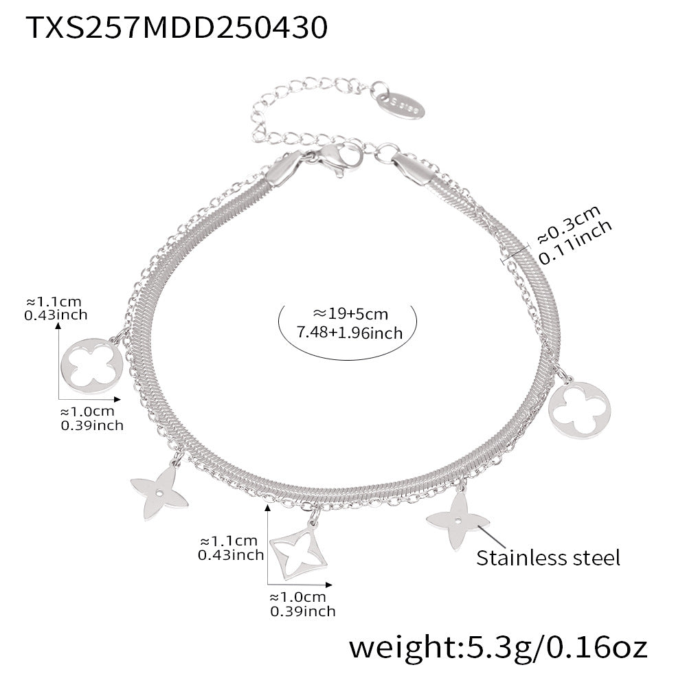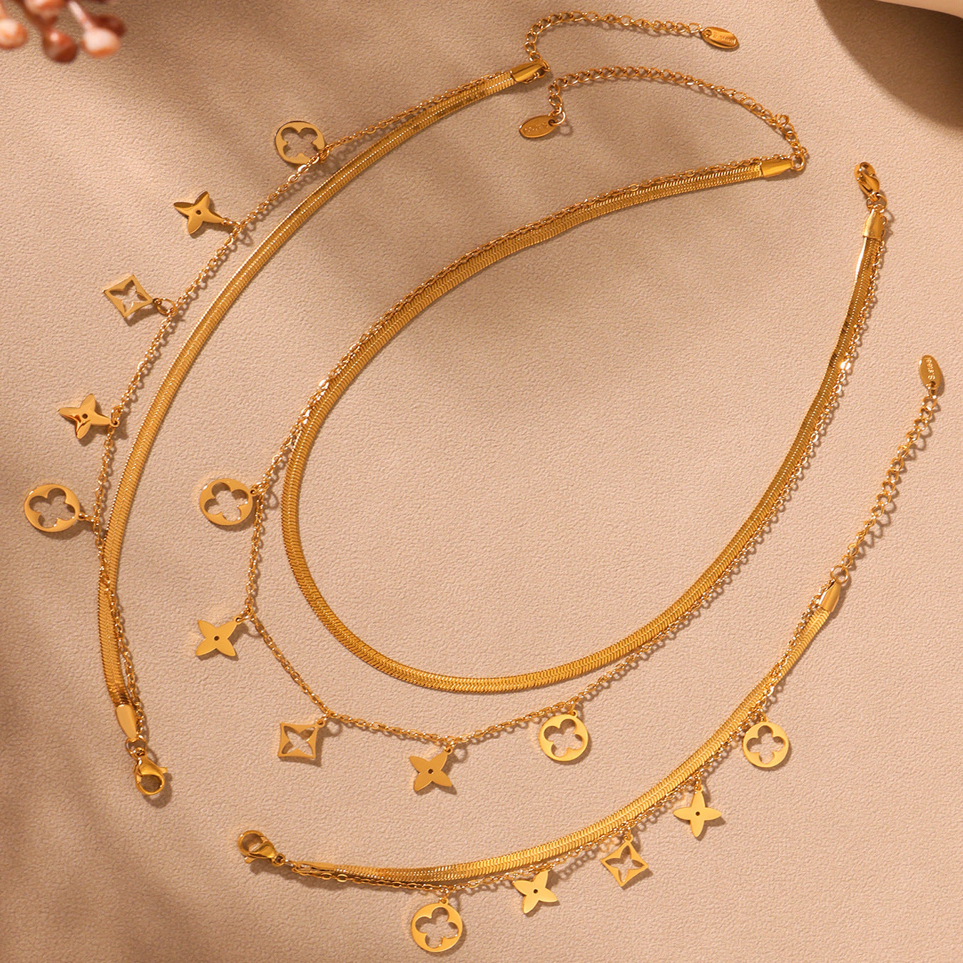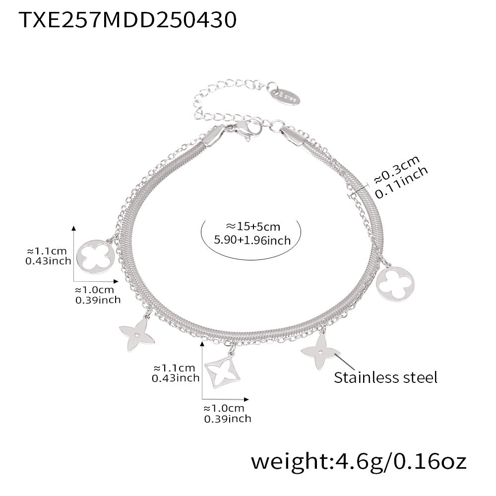 B廠【TXP257】不銹鋼刀片雙層疊戴項鍊鏤空老花設計多配件吊墜首飾套裝女 25.05-2