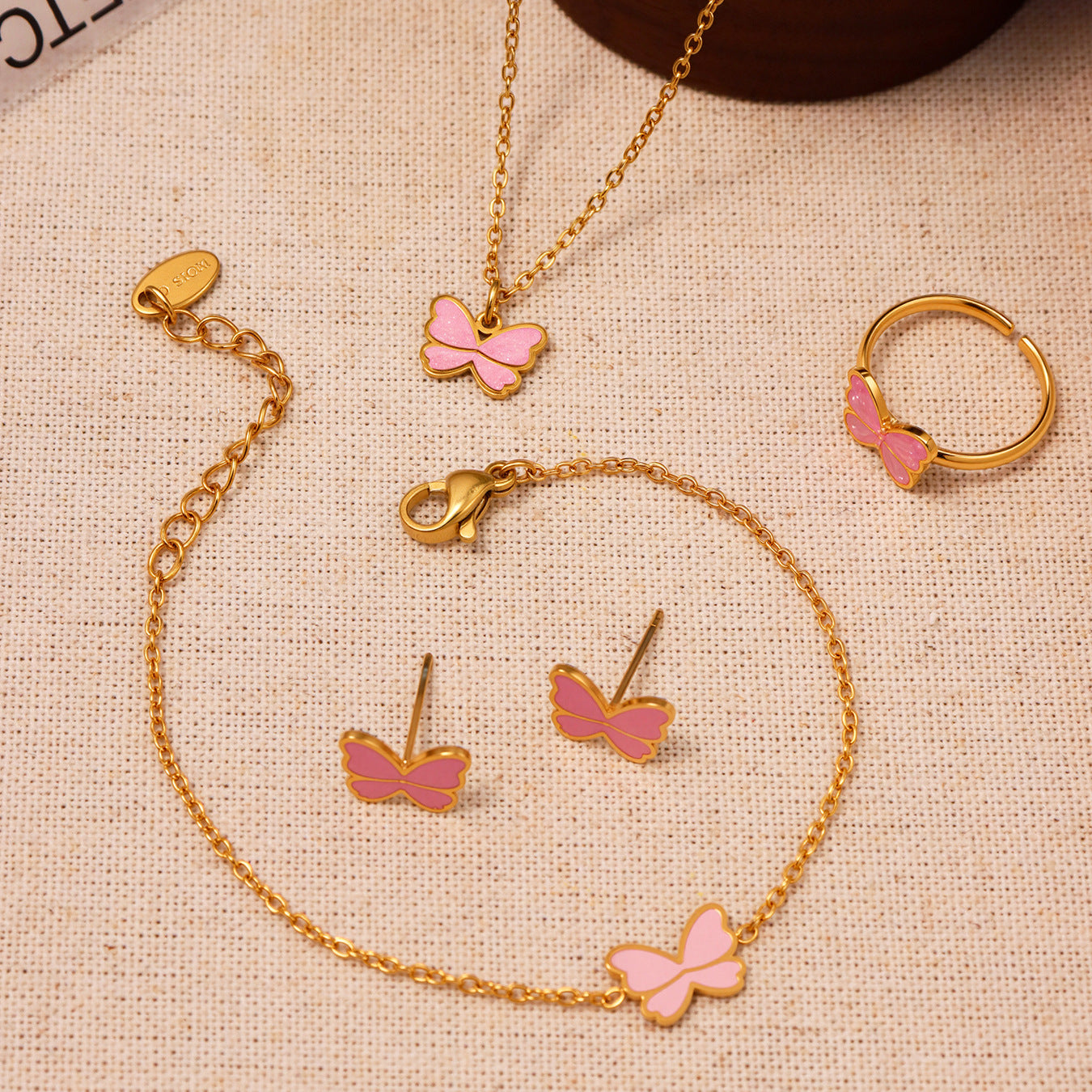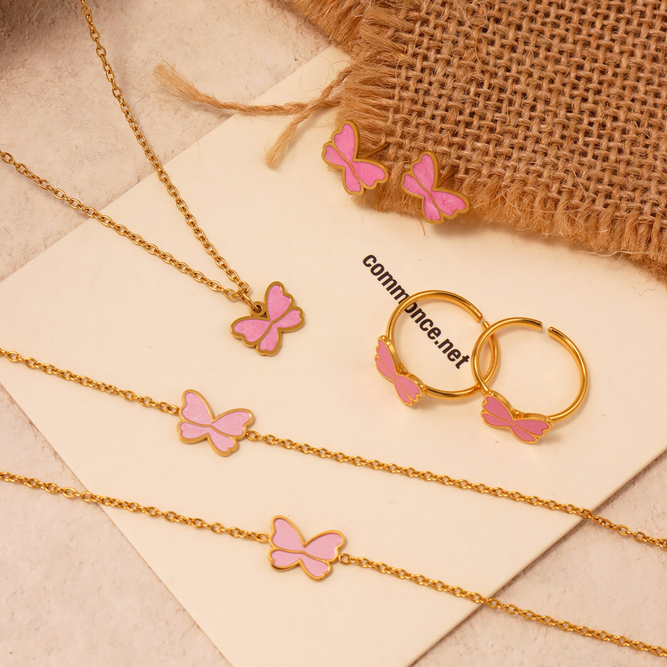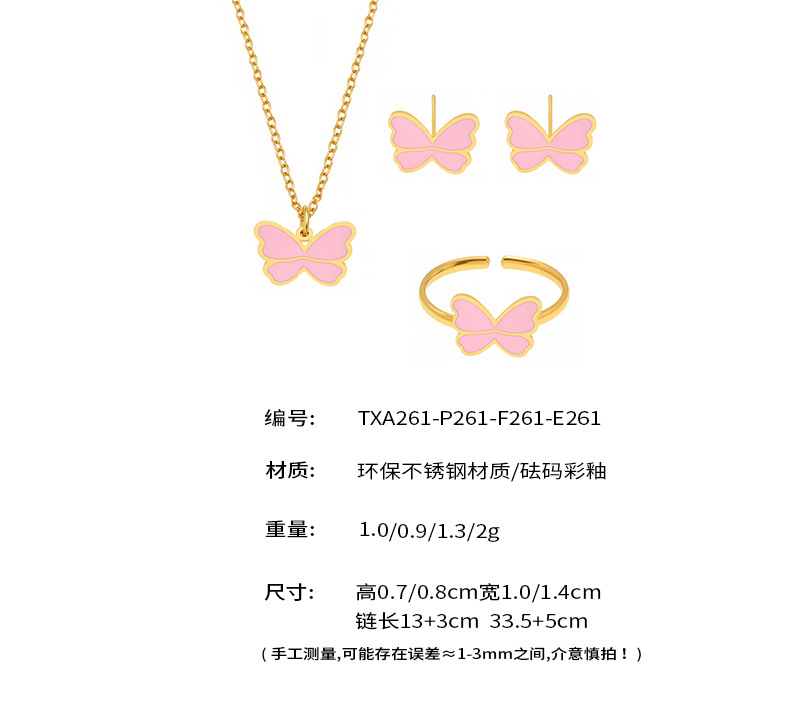 B廠【TXP261】ins小眾可愛蝴蝶滴油手鍊項鍊兒童飾品套裝不銹鋼鍍18k真金 25.05-5
