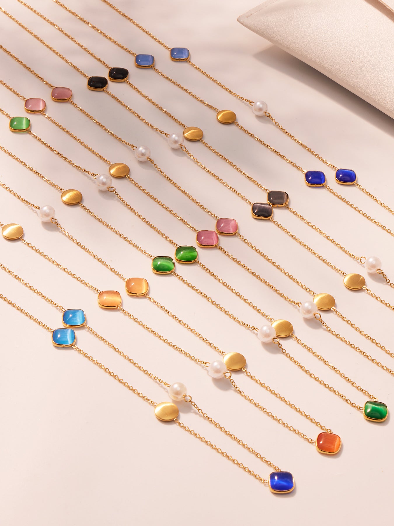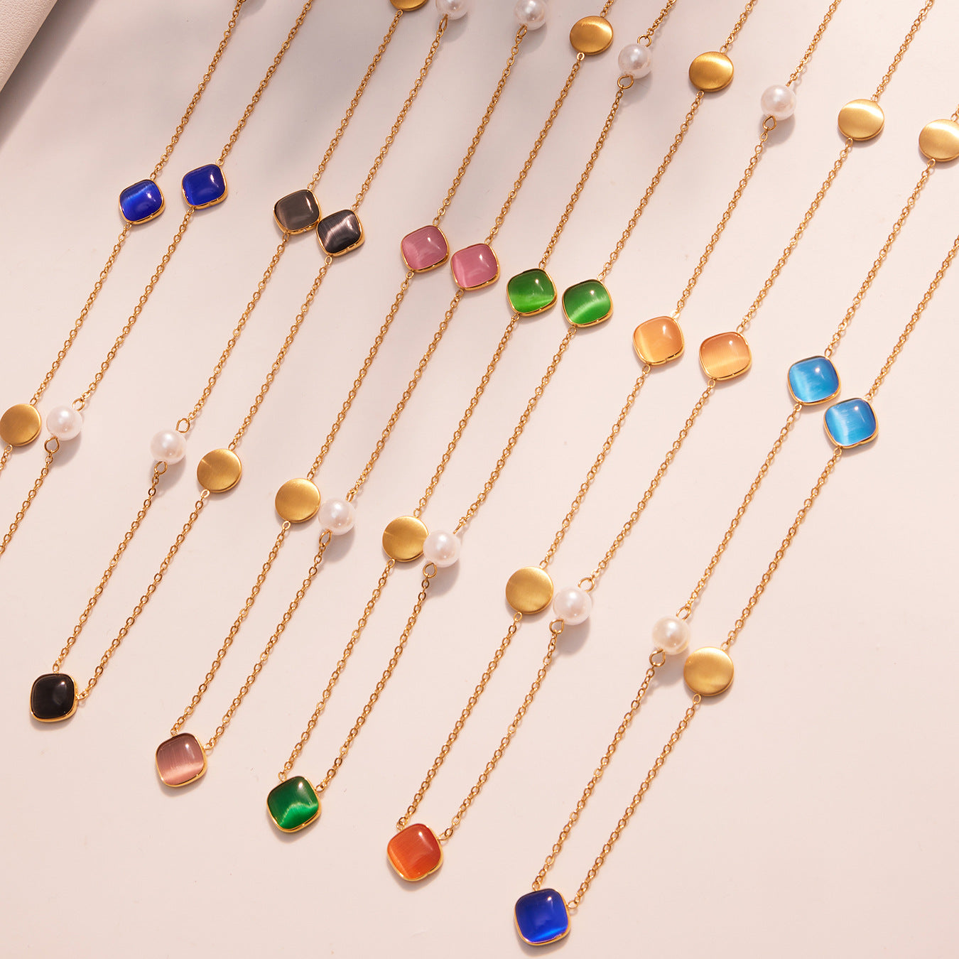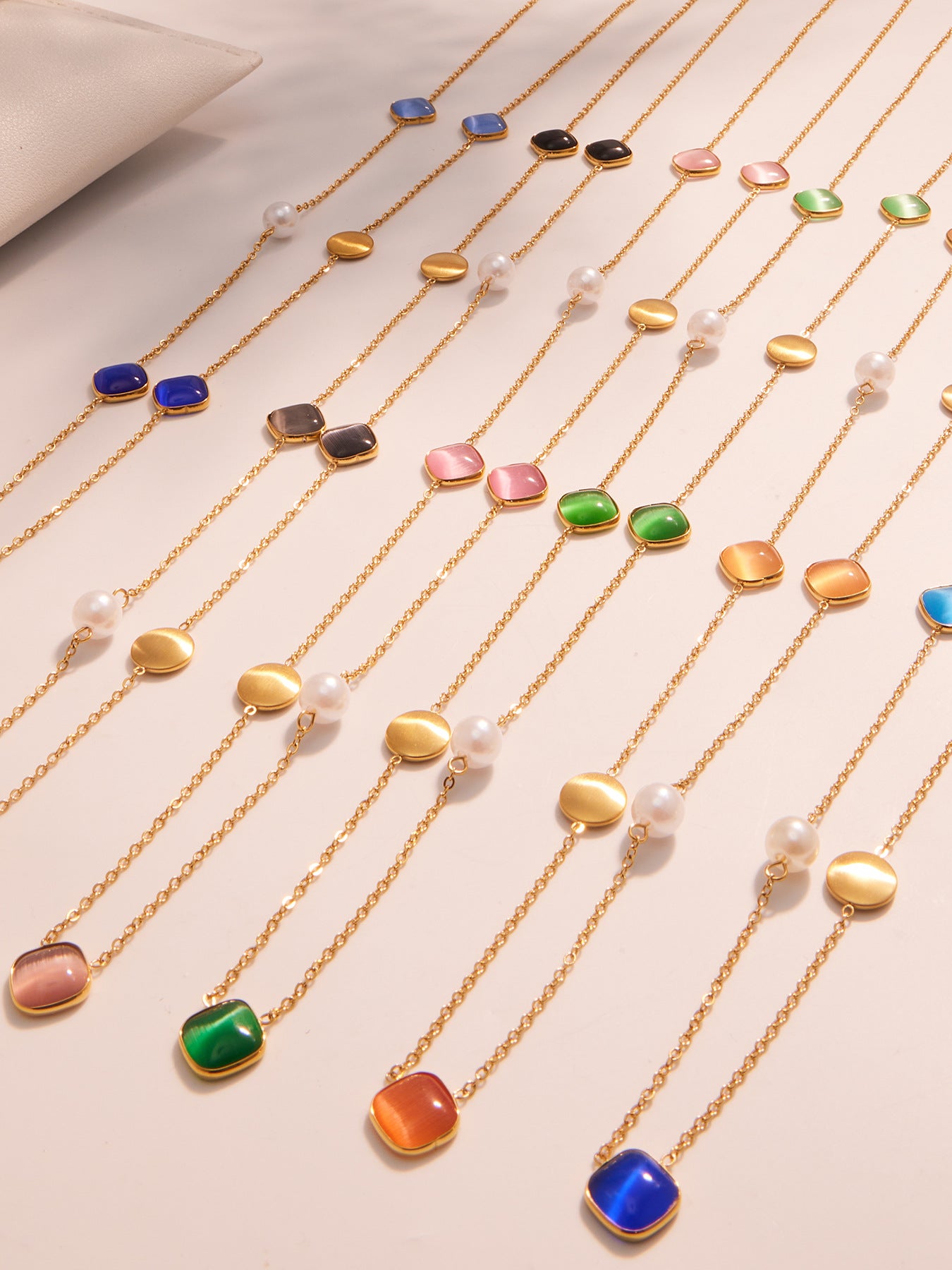 B廠【TXP274】新款七彩轉運珠彩虹糖水晶項鍊不鏽鋼鏈條ins小眾設計首飾 25.08-3