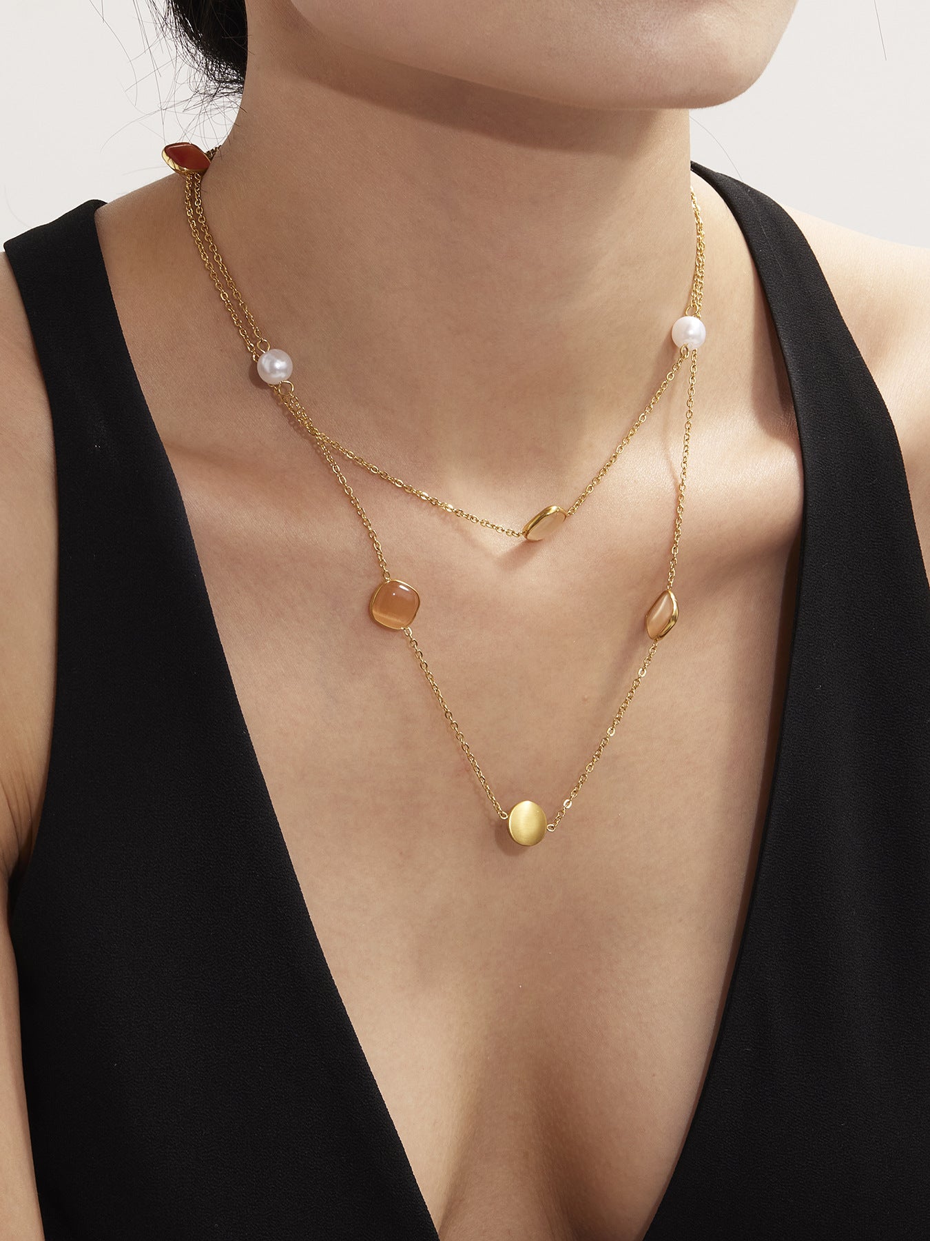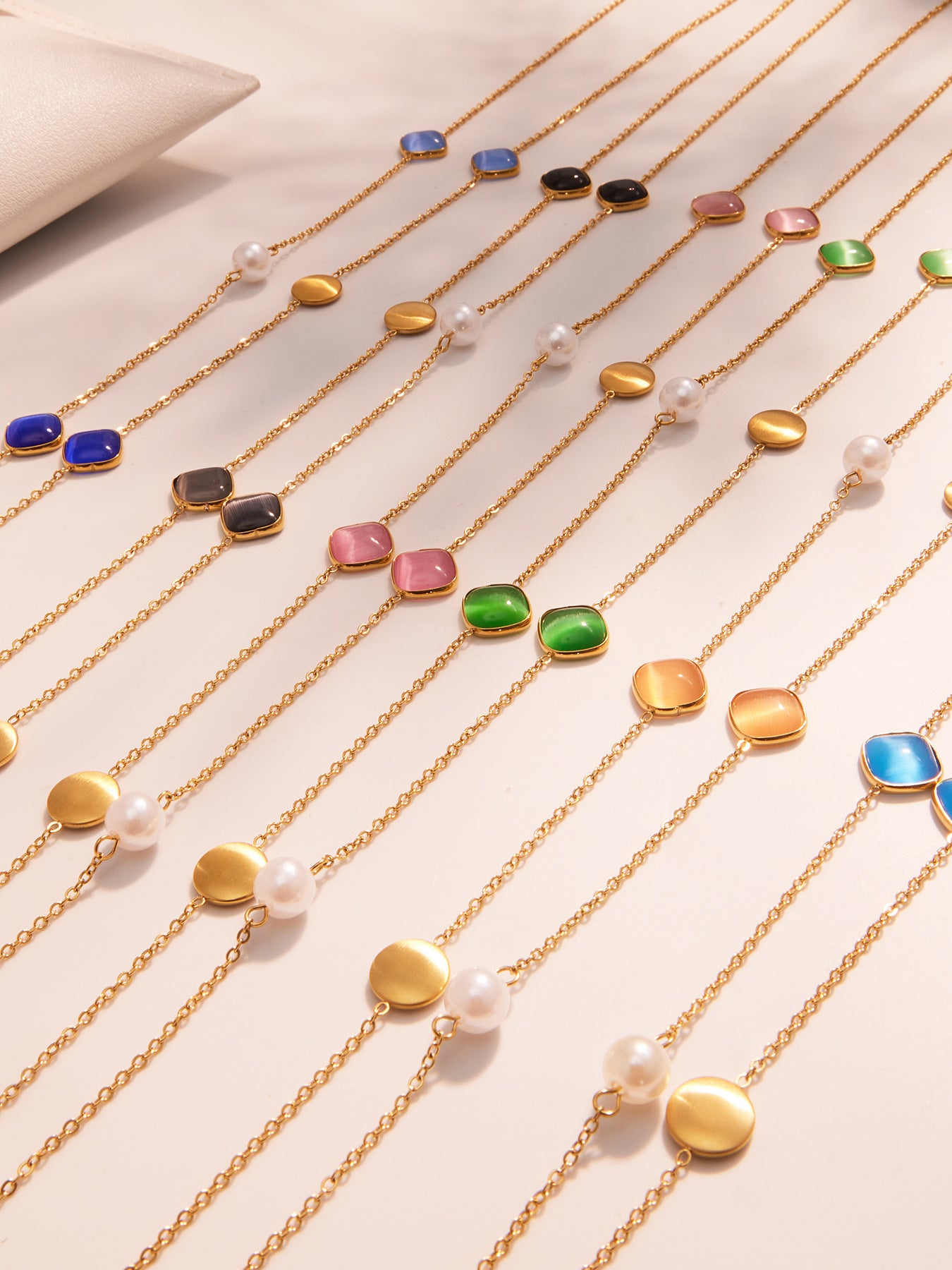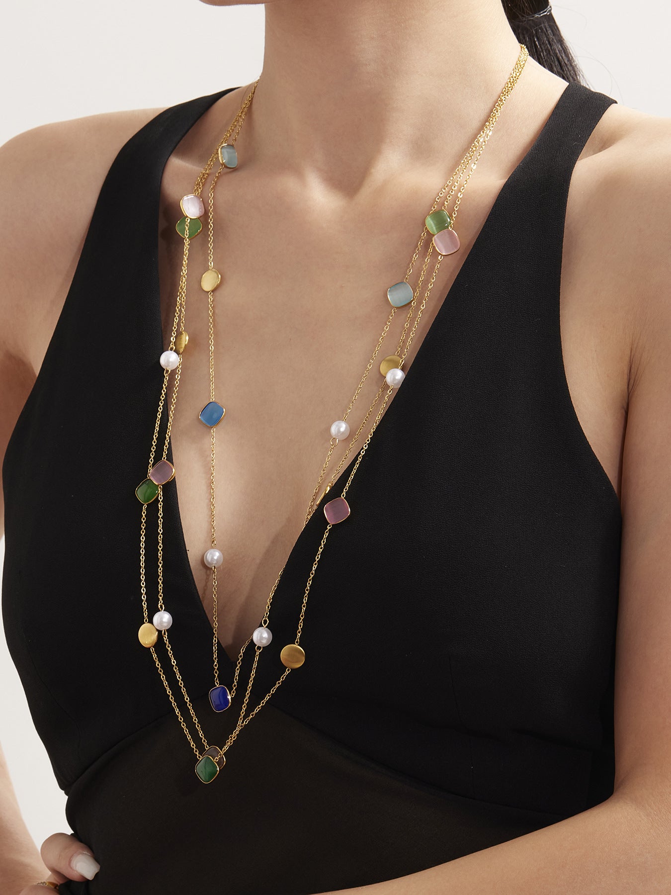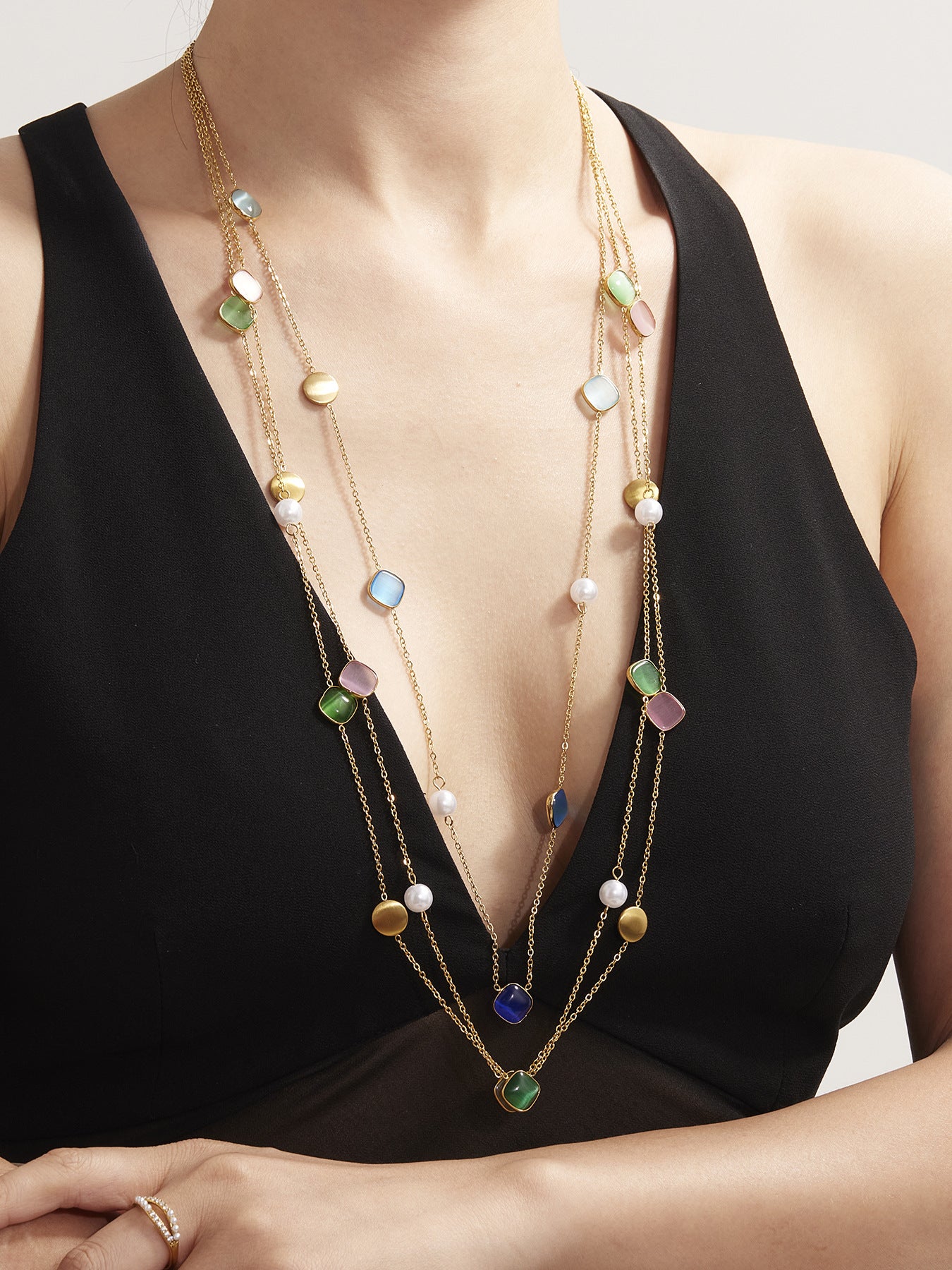 B廠【TXP274】新款七彩轉運珠彩虹糖水晶項鍊不鏽鋼鏈條ins小眾設計首飾 25.08-3