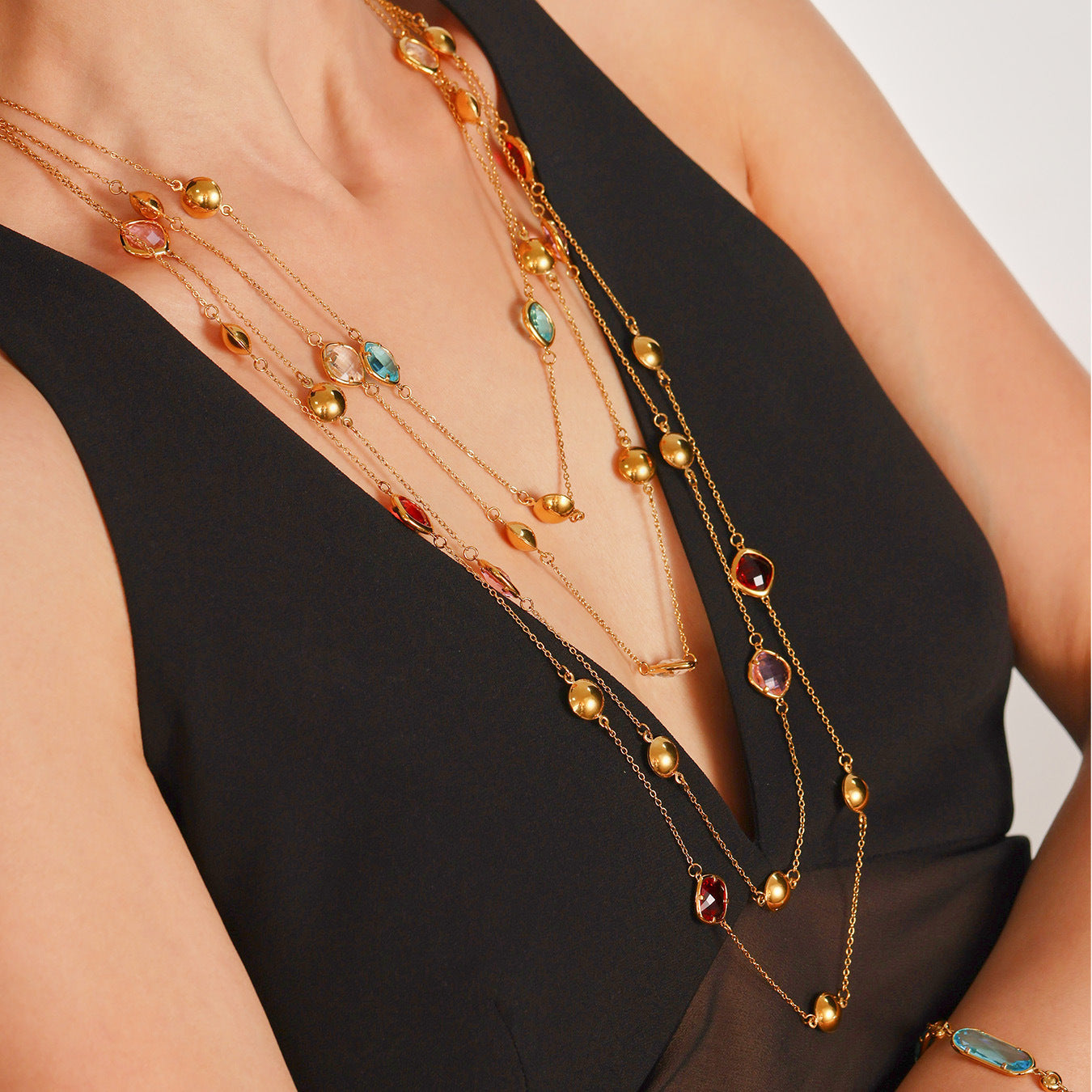 B廠【TXP279】進口切面玻璃石項鍊雙戴項鍊小眾輕奢風不銹鋼18k鍍金 25.06-3
